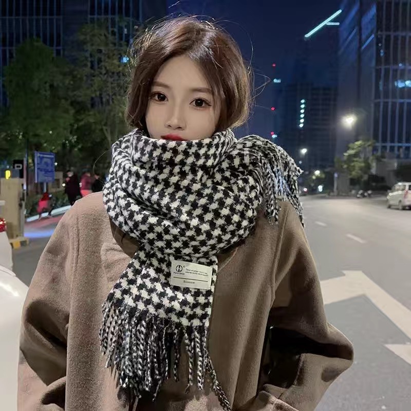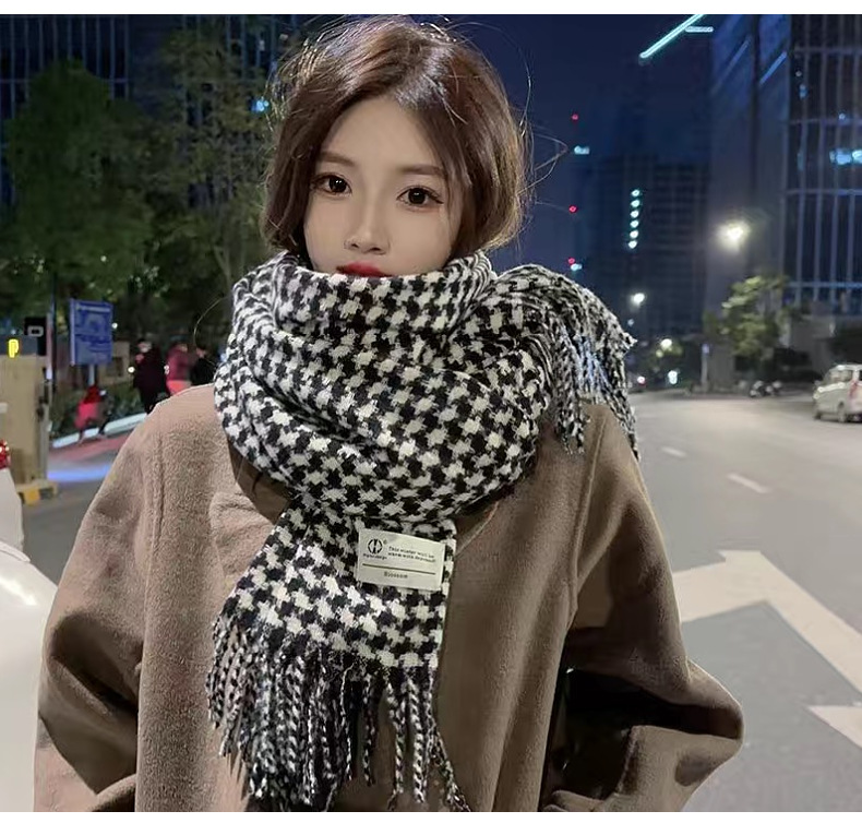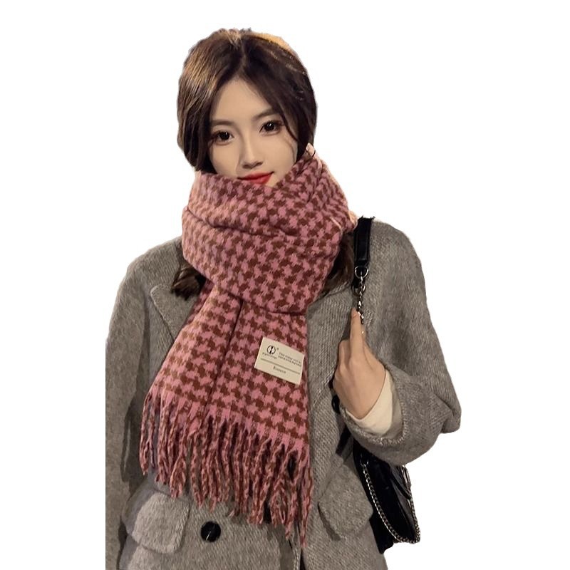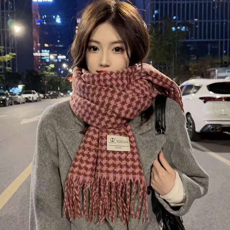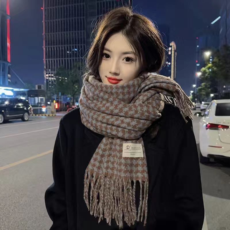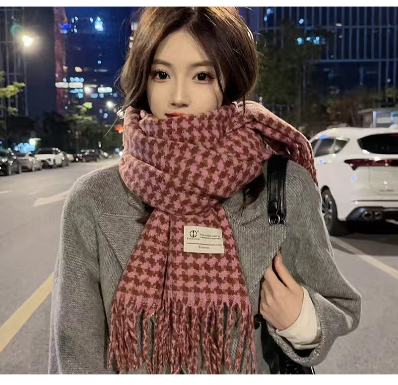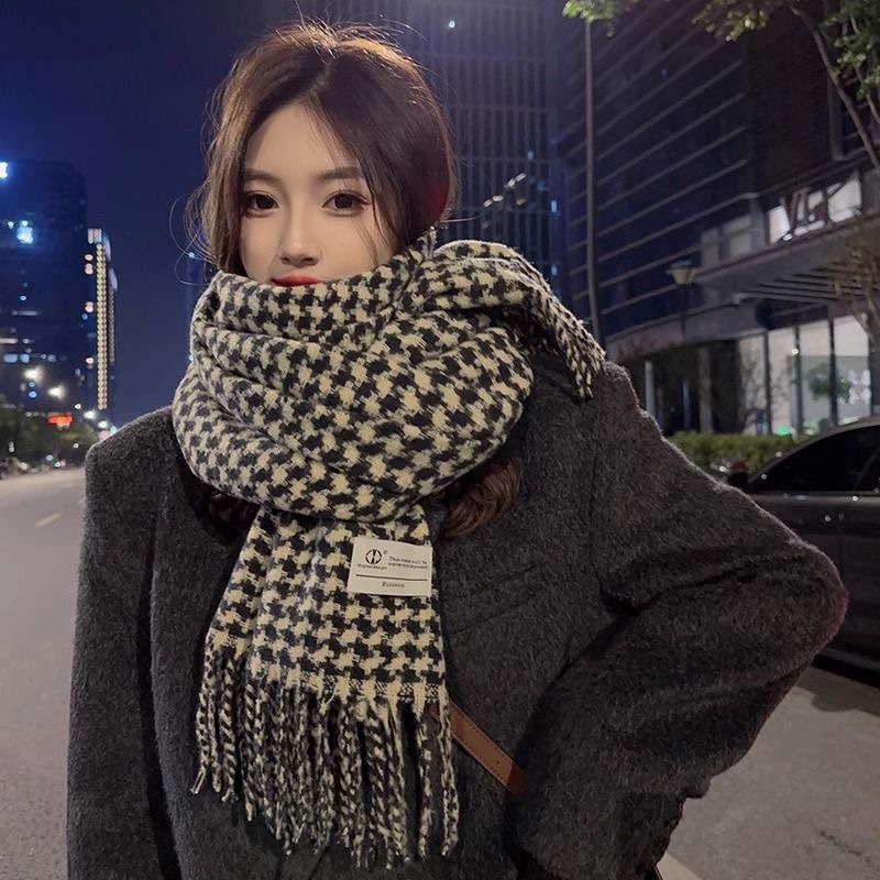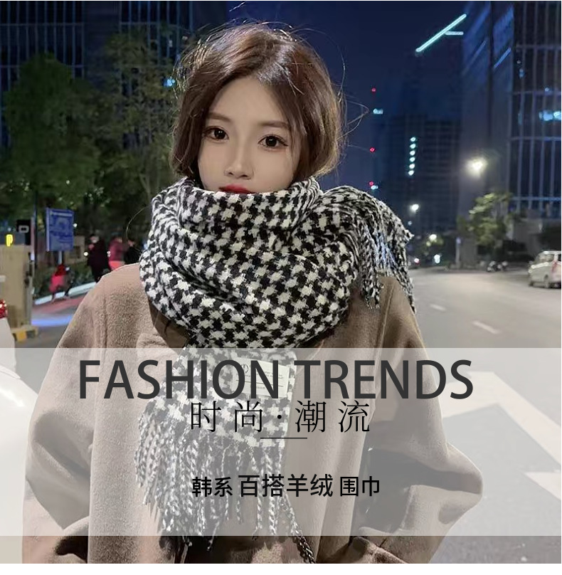新款千鸟格围巾女秋冬氛围感韩系百搭仿羊绒保暖披肩学生加厚围脖
