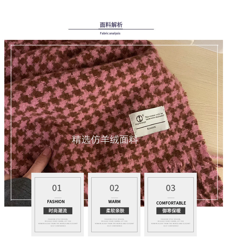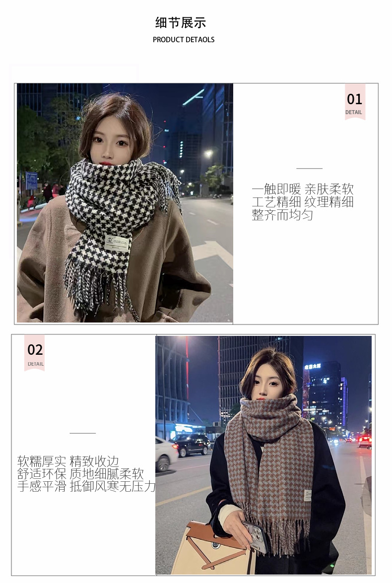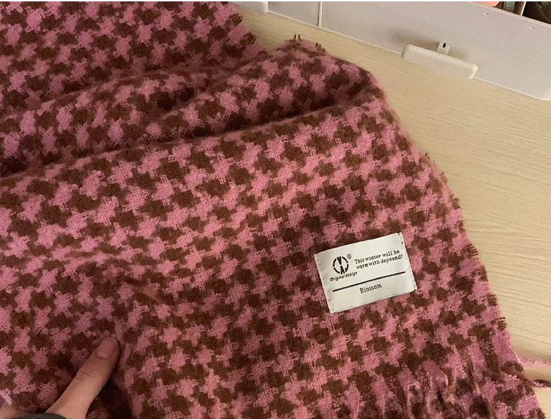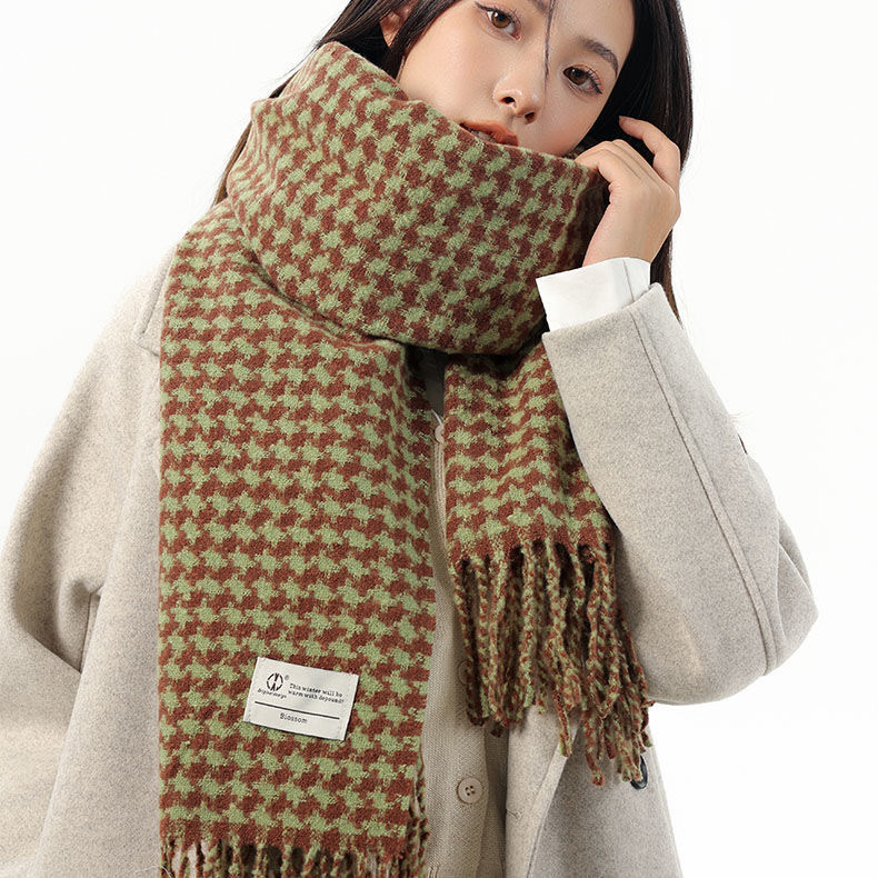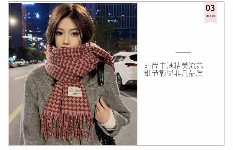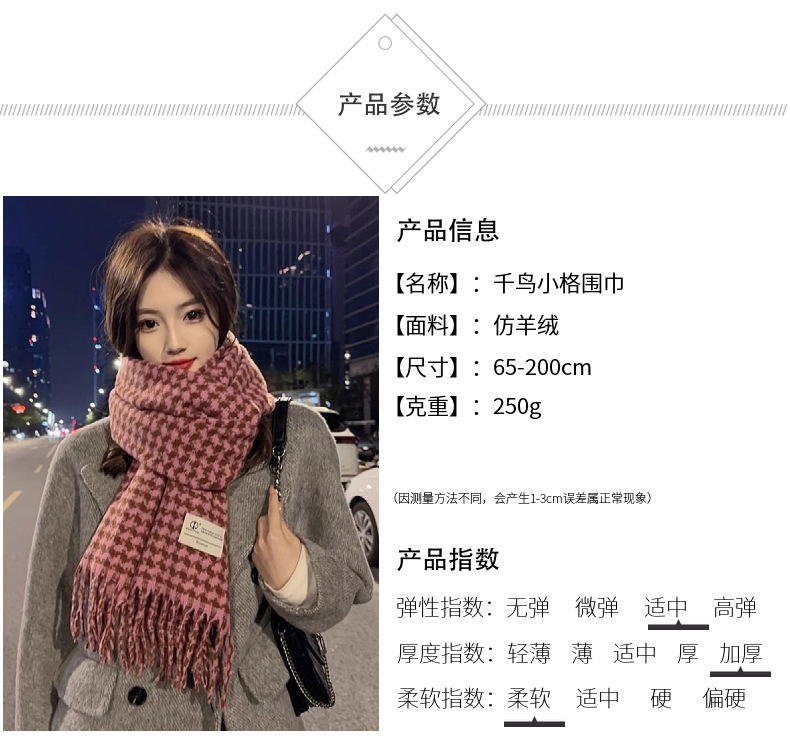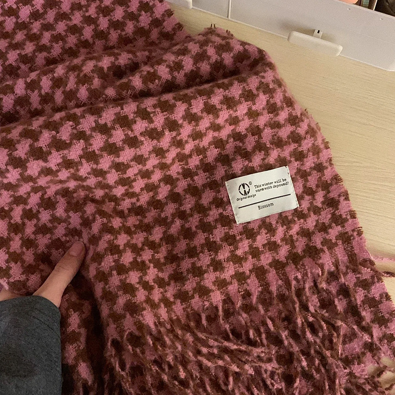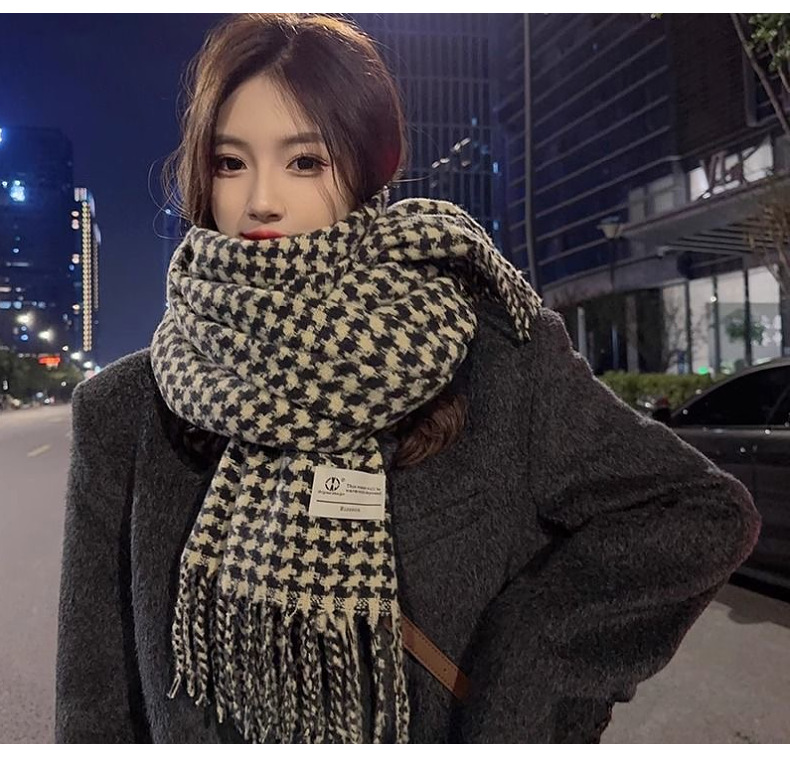 新款千鸟格围巾女秋冬氛围感韩系百搭仿羊绒保暖披肩学生加厚围脖