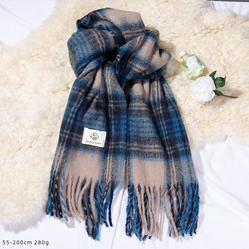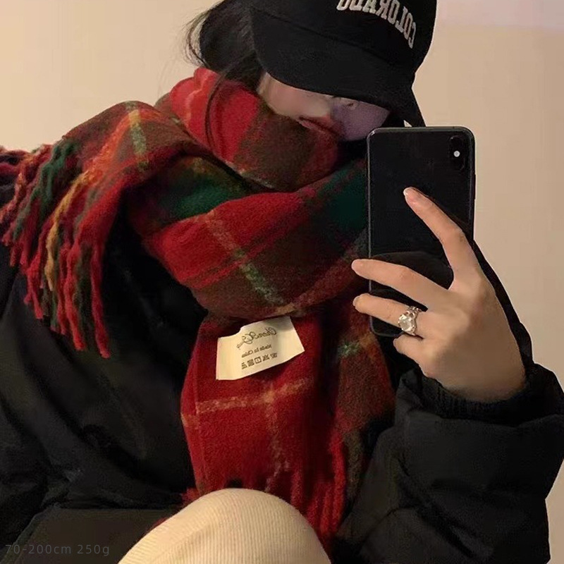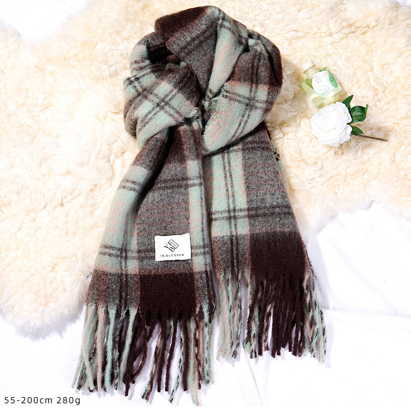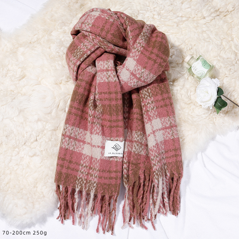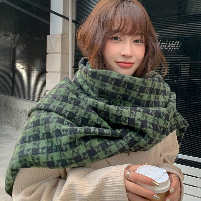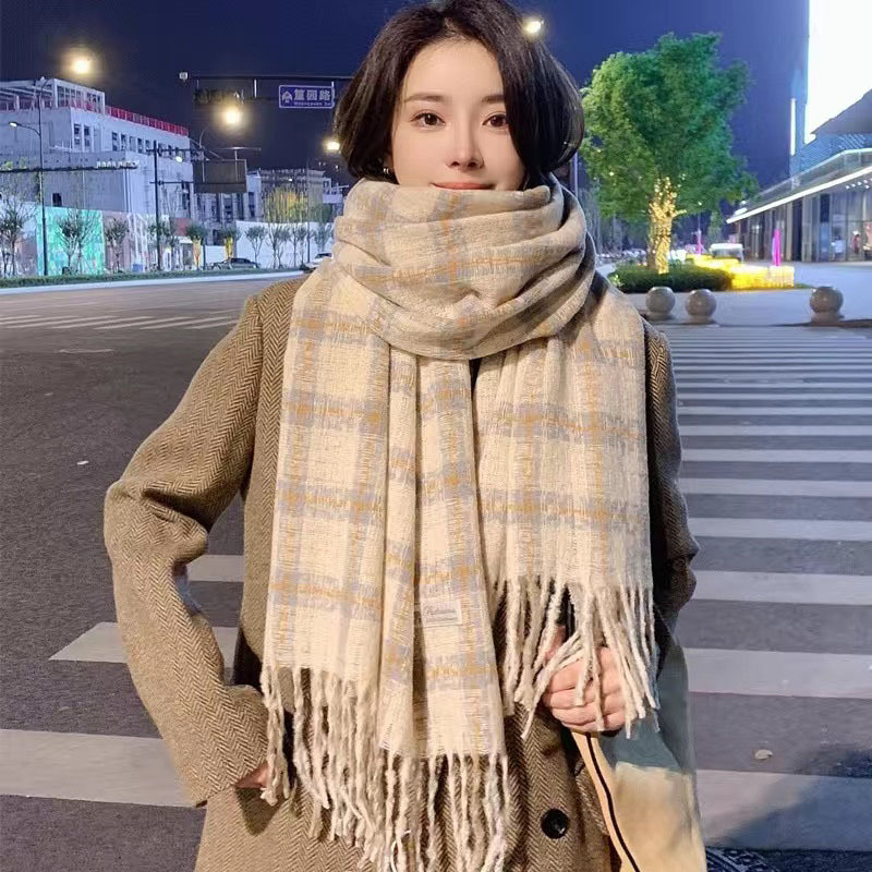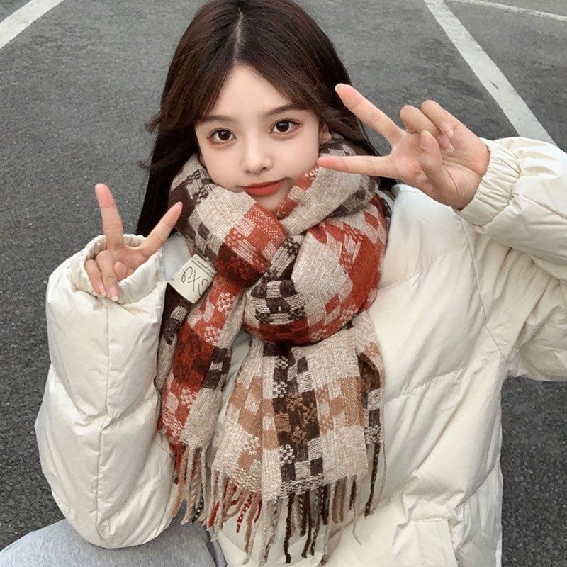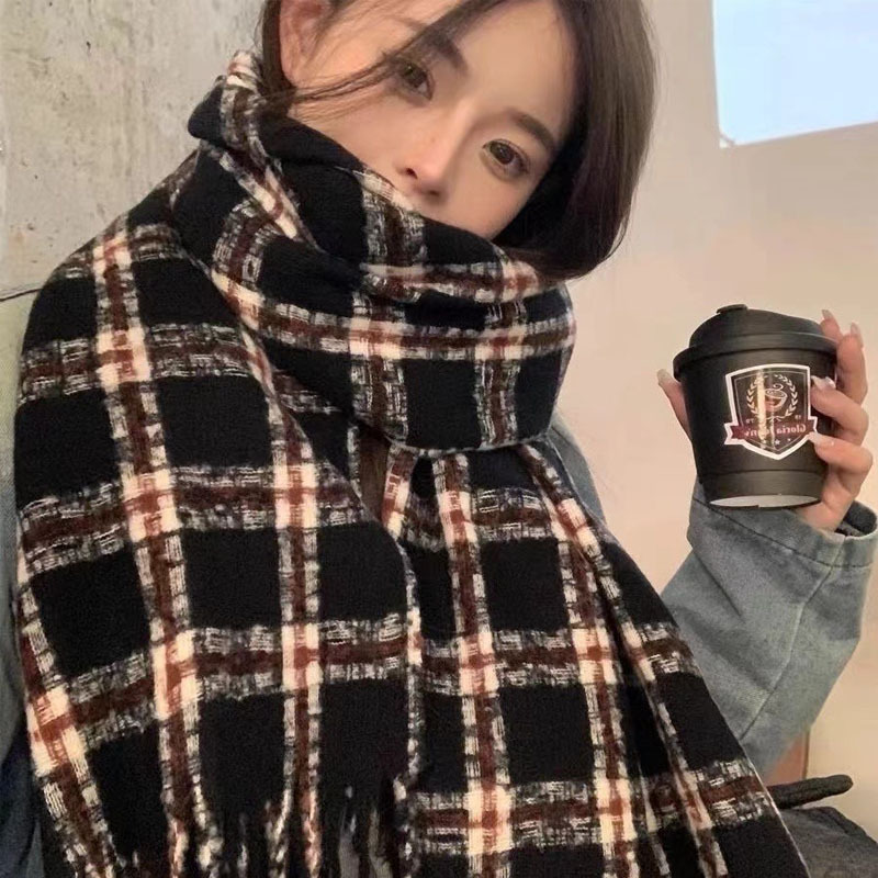 新款格子围巾女冬季高级感马海毛仿羊绒围巾学生百搭保暖披肩围脖