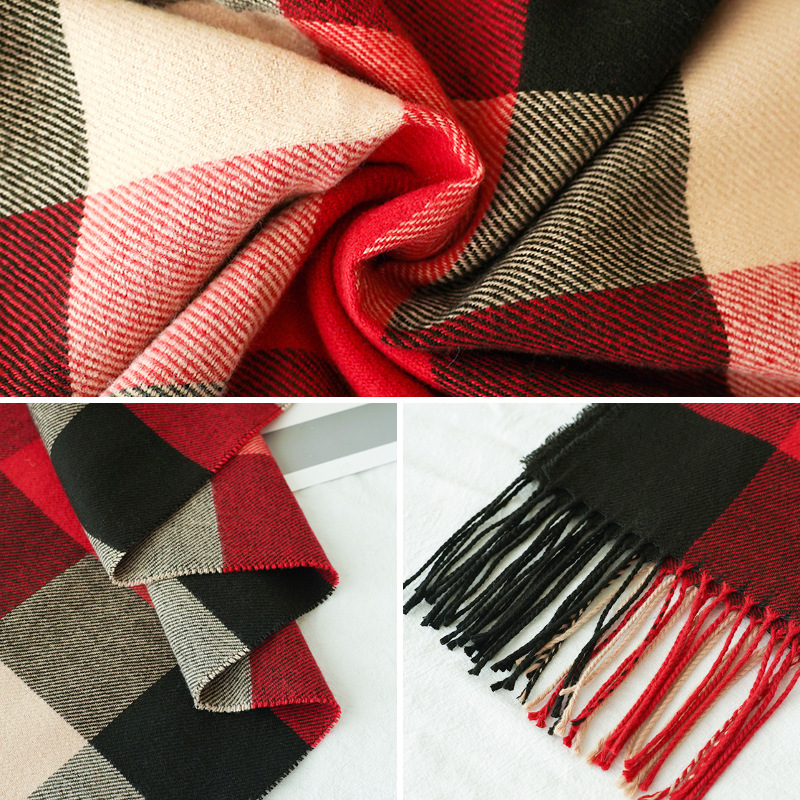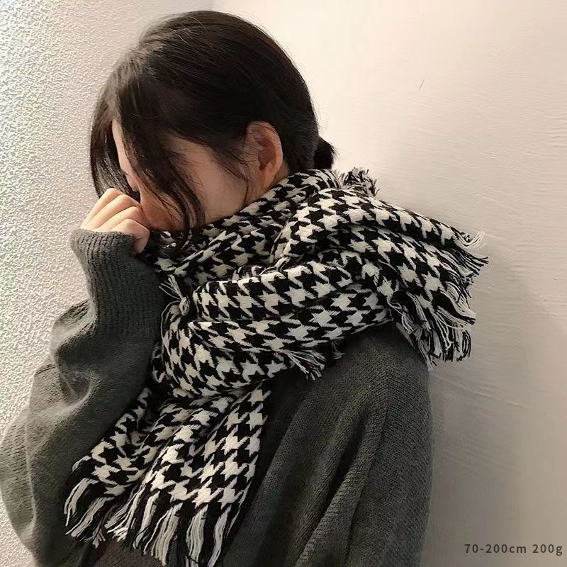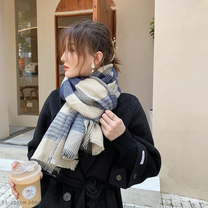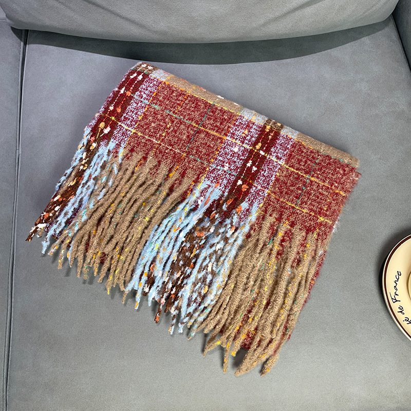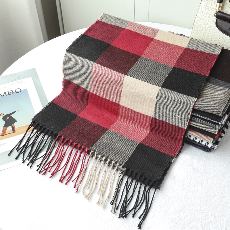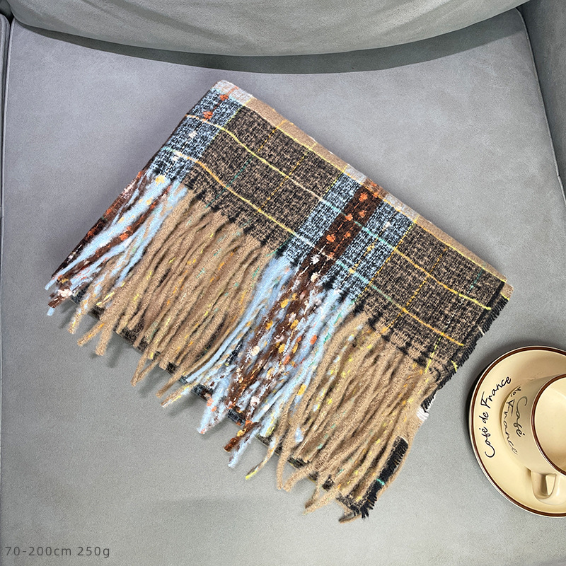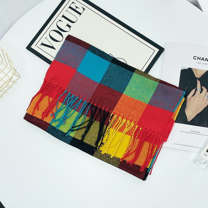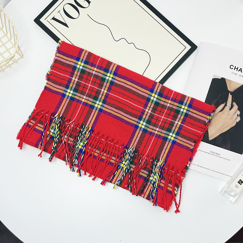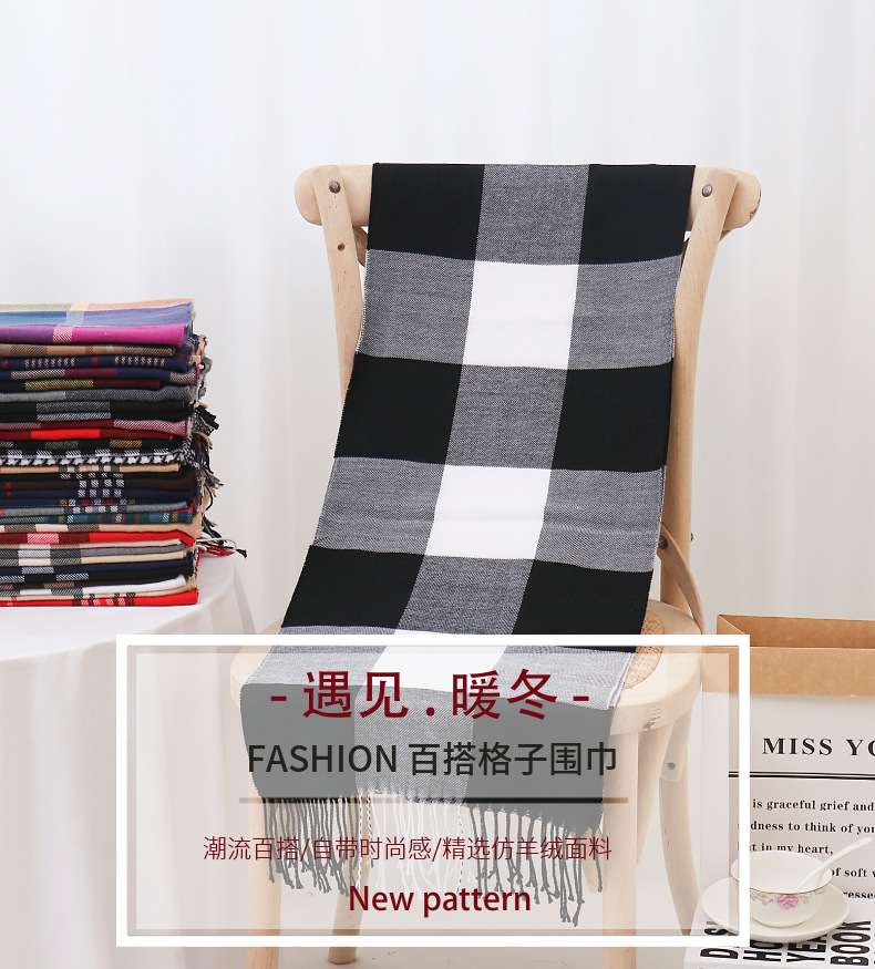 新款格子围巾女冬季高级感马海毛仿羊绒围巾学生百搭保暖披肩围脖