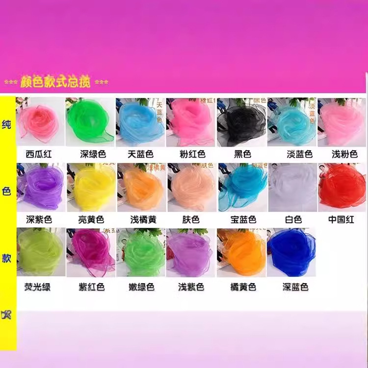 厂价奥尔夫幼儿园演出舞蹈表演小丝巾 小方巾糖果色纯色纱巾批发