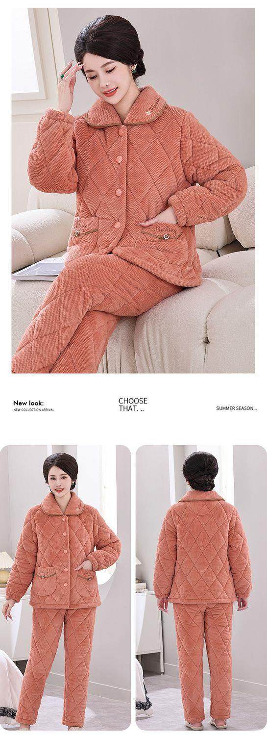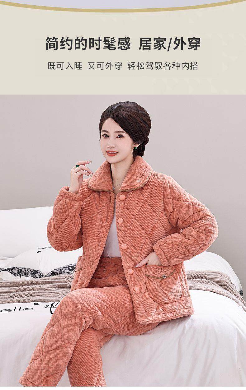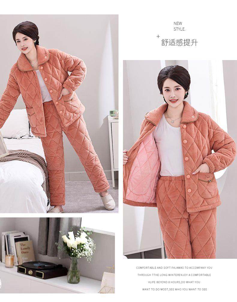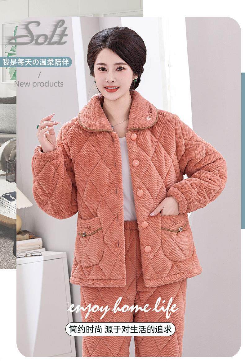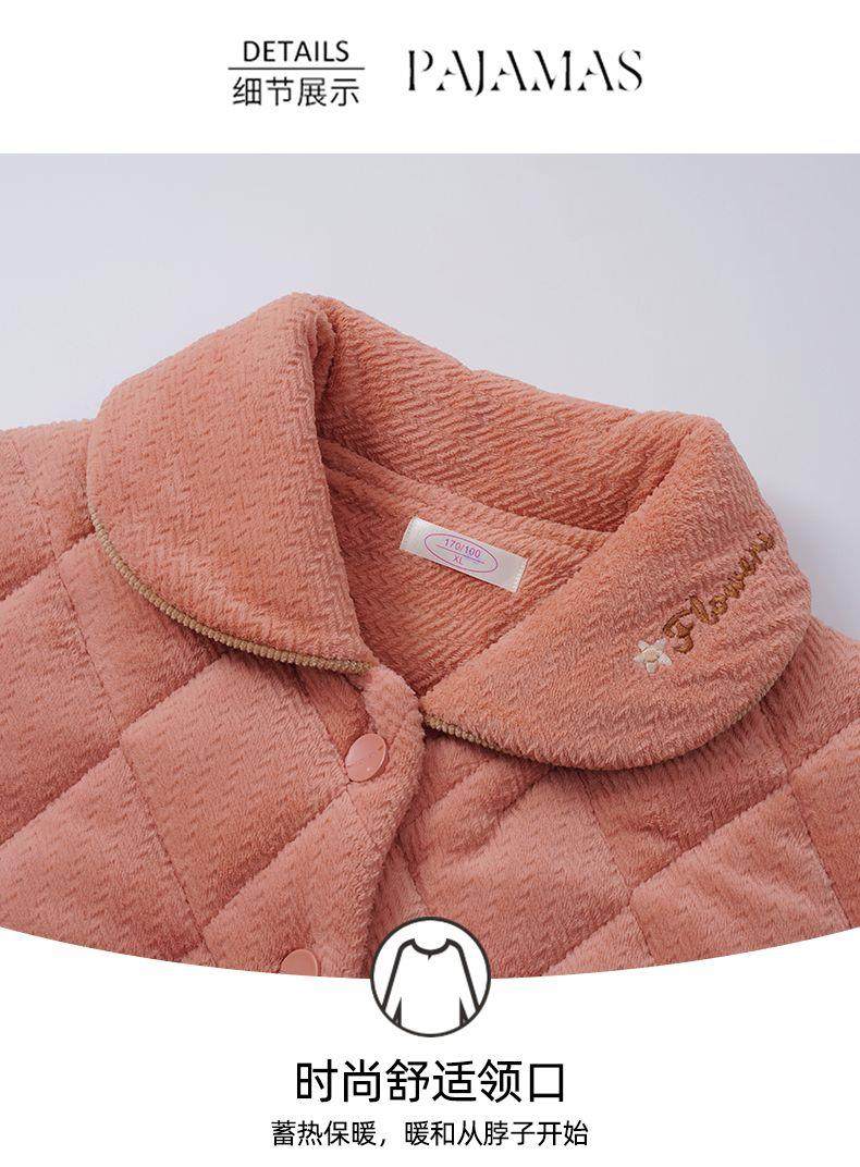 跨境老年珊瑚棉冬季妈妈秋冬夹法兰保暖家居服家居法兰绒女中老年