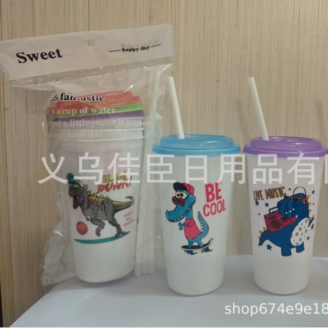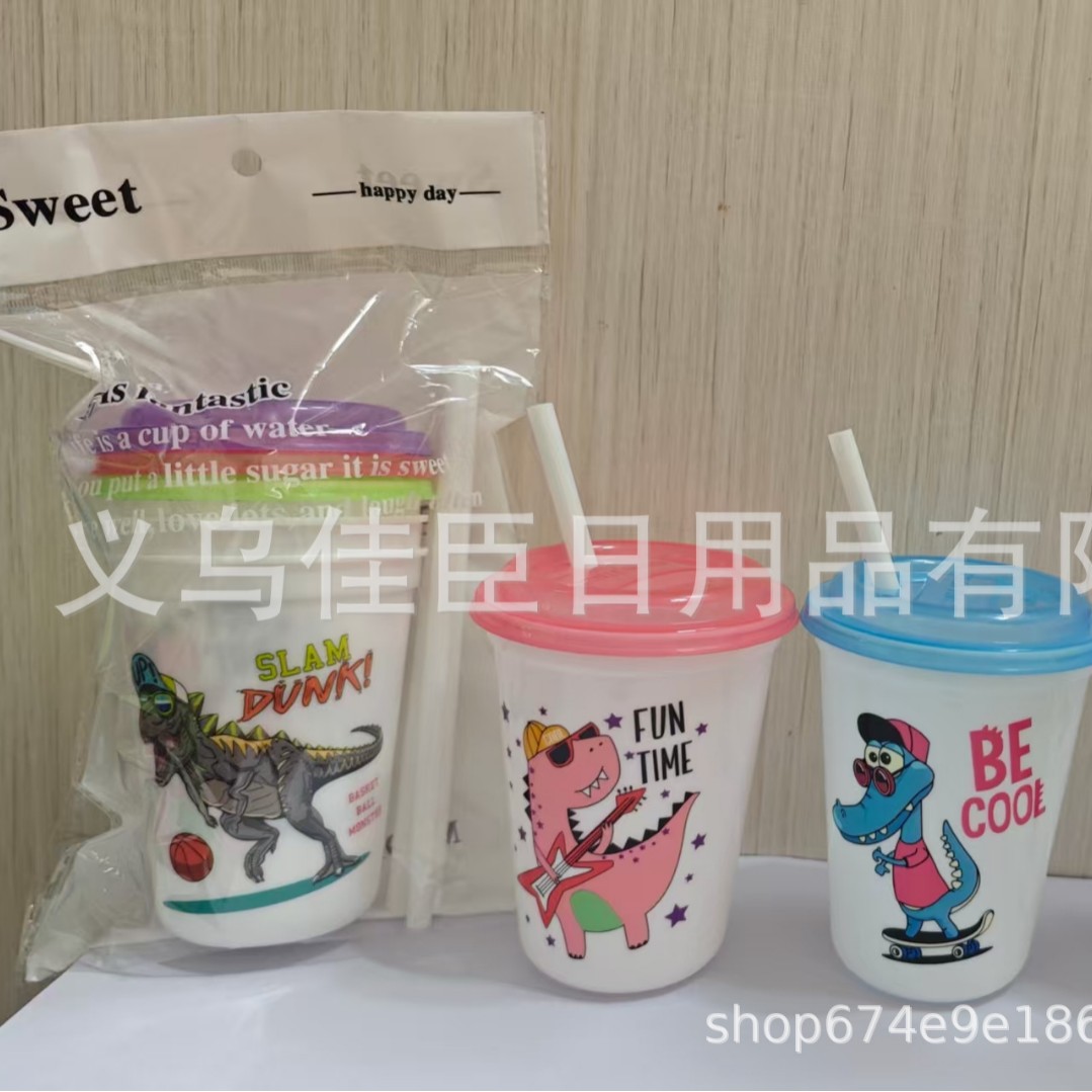 带盖果汁杯pp塑料杯吸管杯塑料杯创意儿童水杯吸管杯可爱跨境热卖