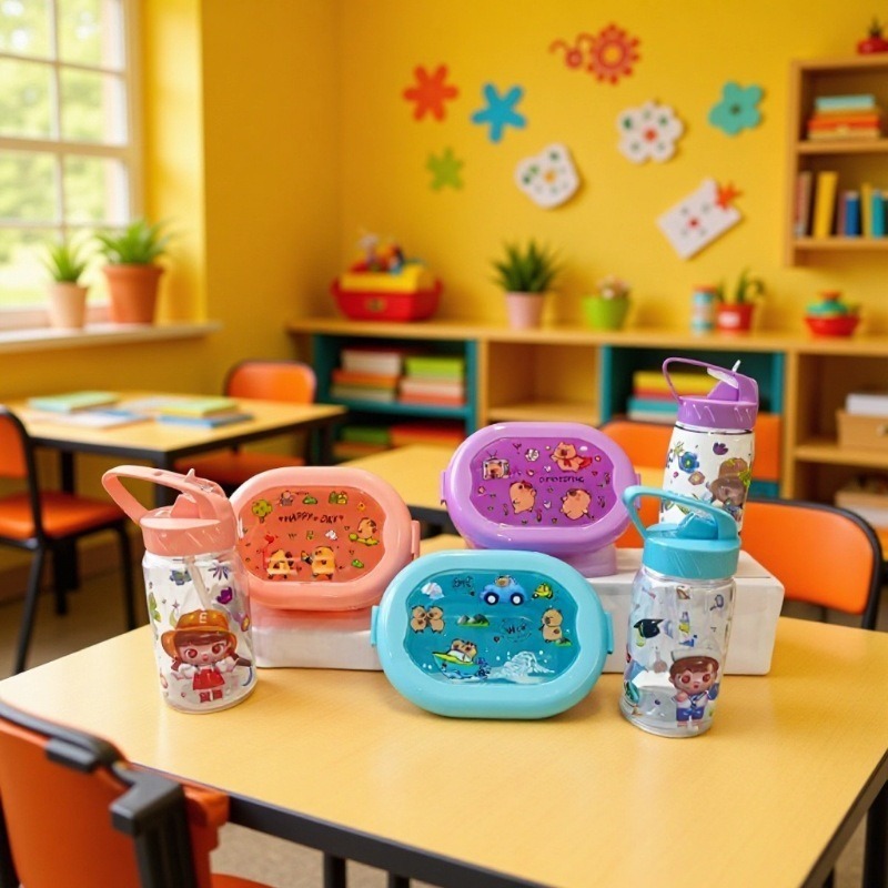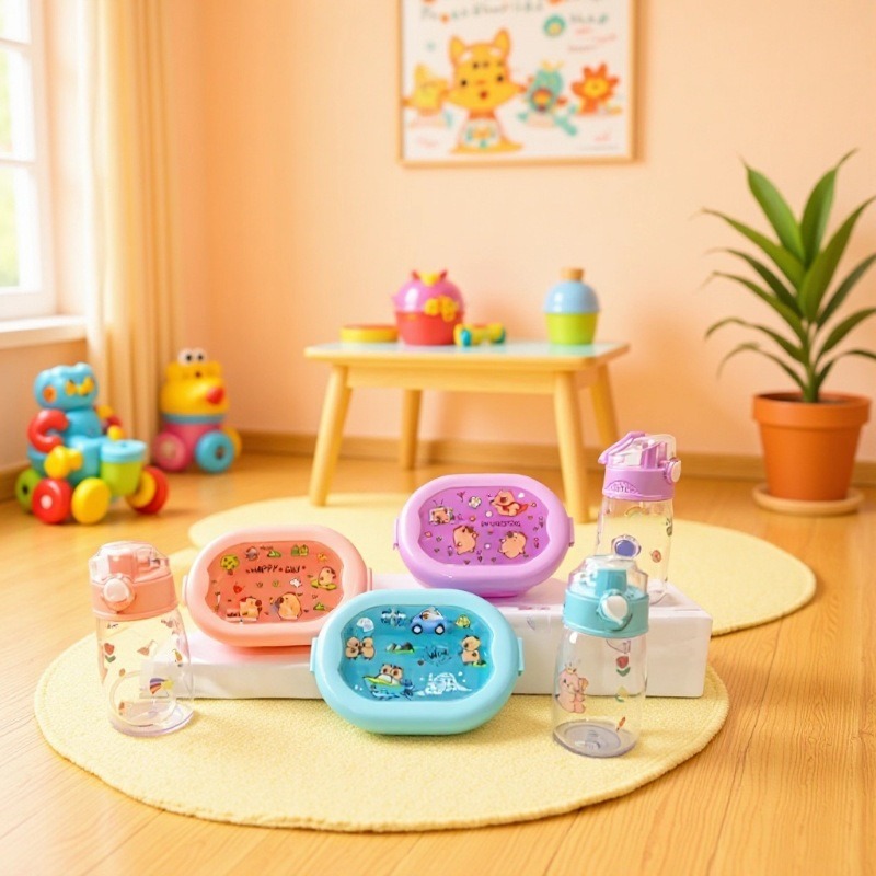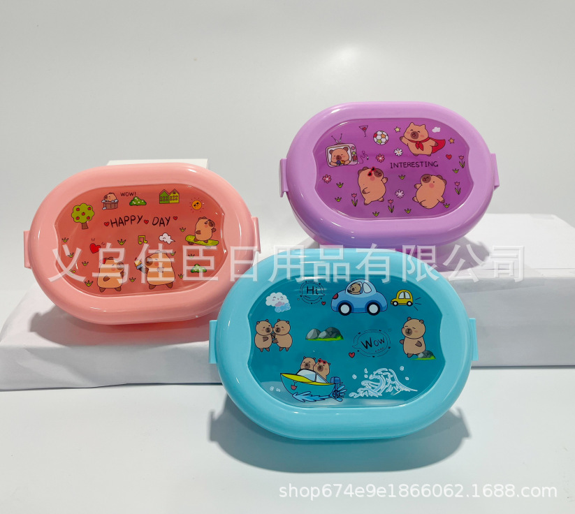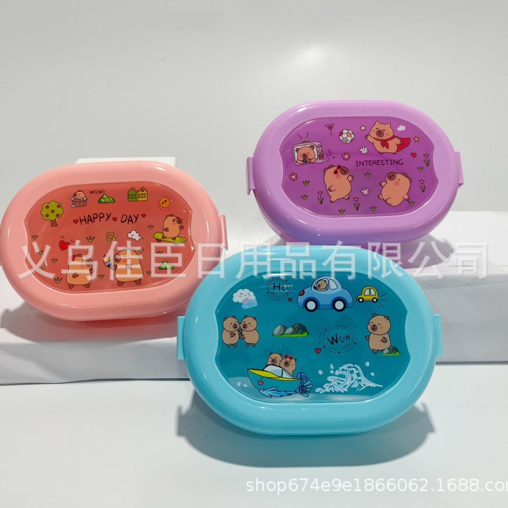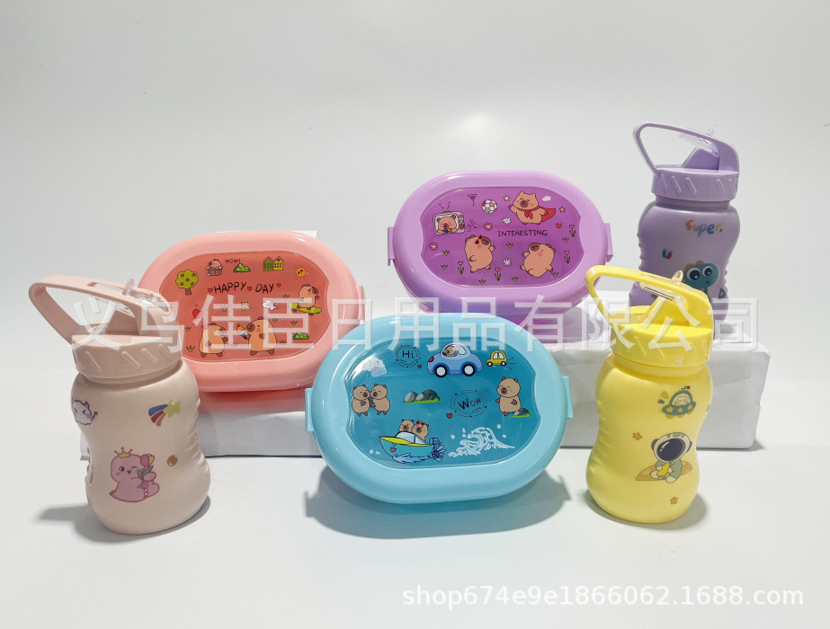 热销款学生卡通便当盒水壶饭盒套装卡皮巴拉分格款带餐具饭盒野餐