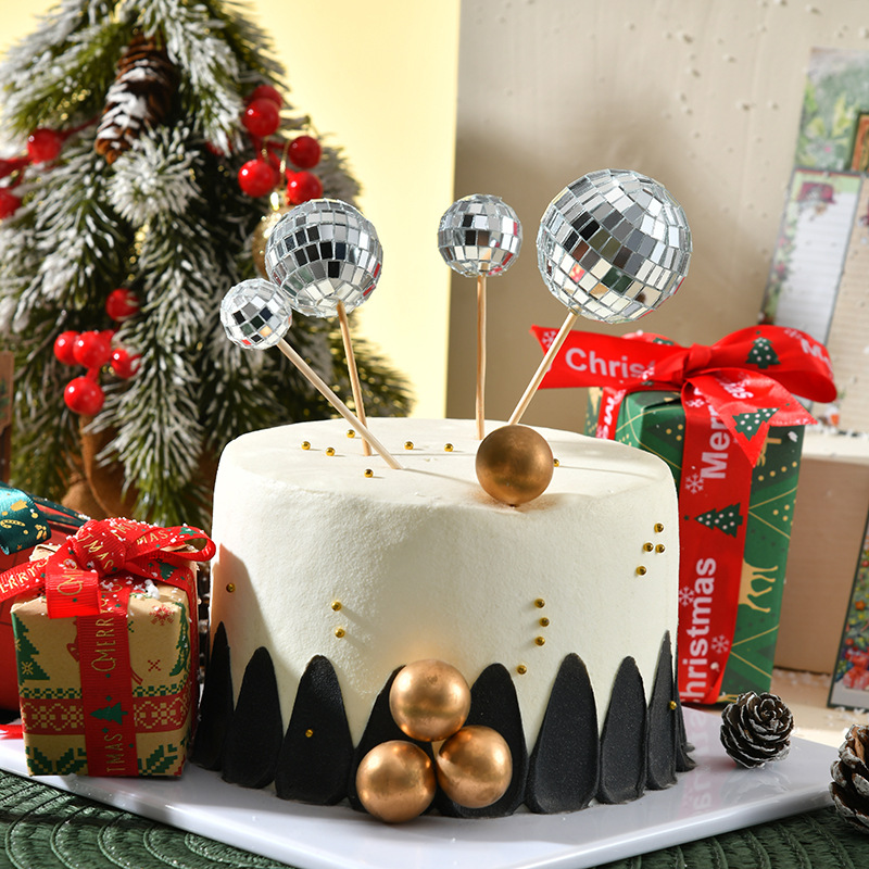 亚马逊热卖 带木棒迪斯科球 婚庆橱窗派对蛋糕装饰插件镜面球装饰