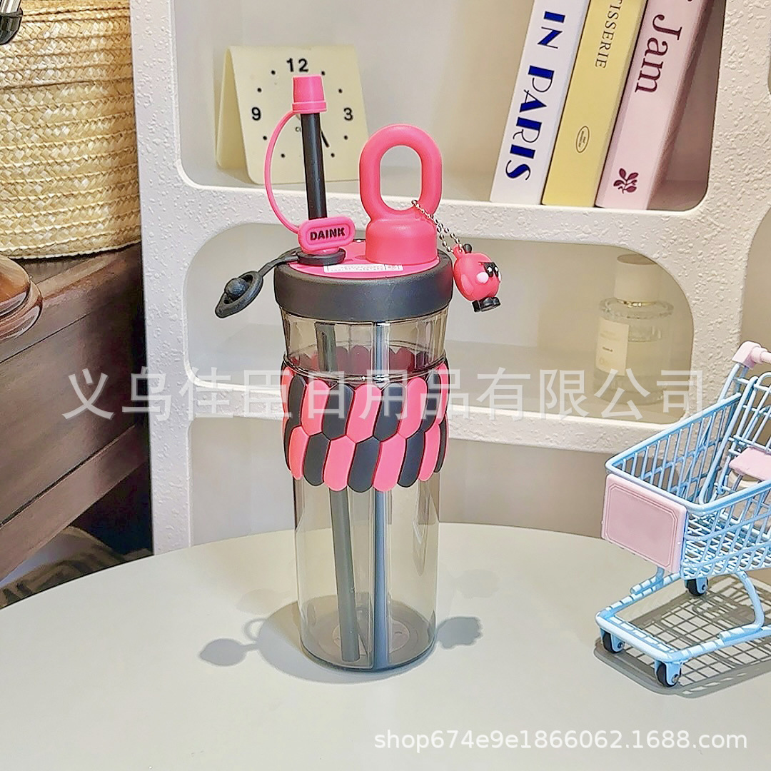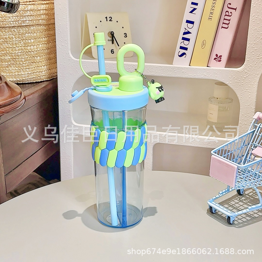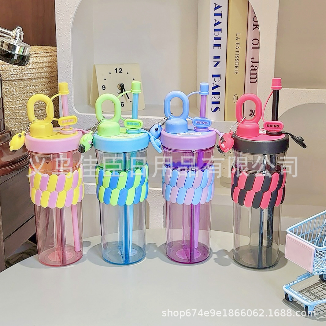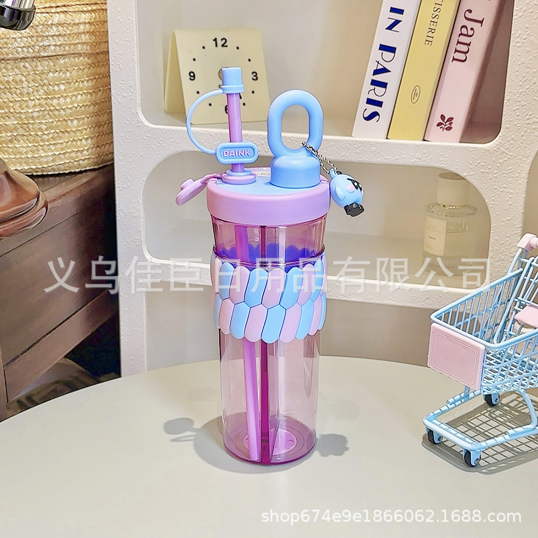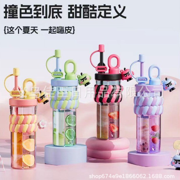 多巴胺双饮双仓杯卡通学生可爱塑料杯创意女生高颜值吸管水杯批发
