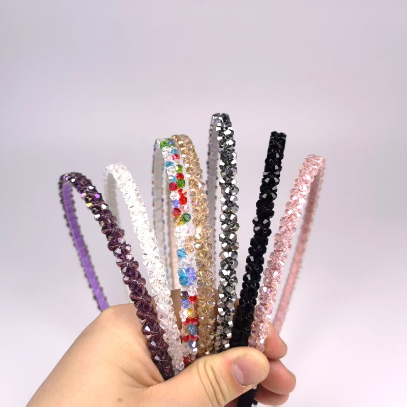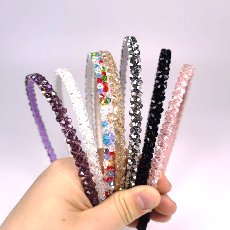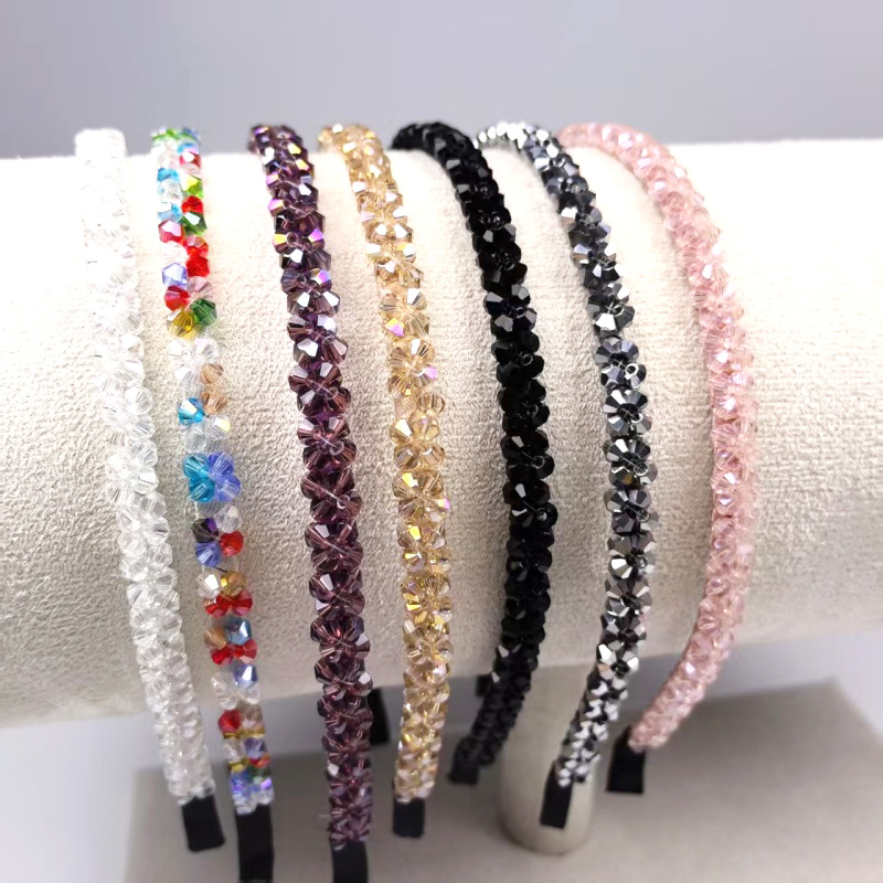 高档韩版头箍彩色镶水晶发箍手工编制串珠发饰造型时尚超亮饰品女