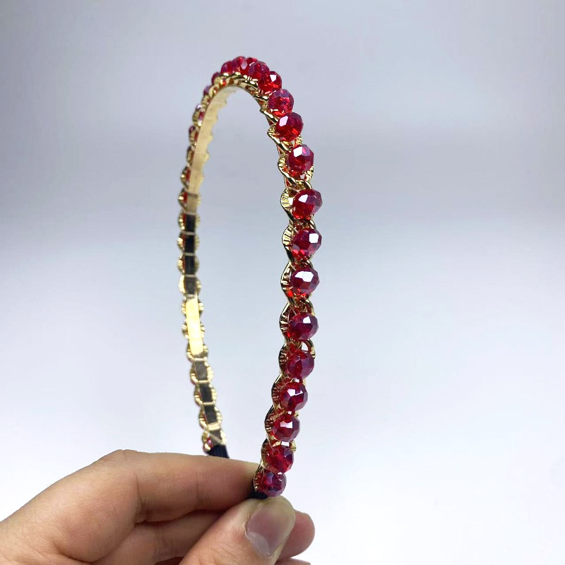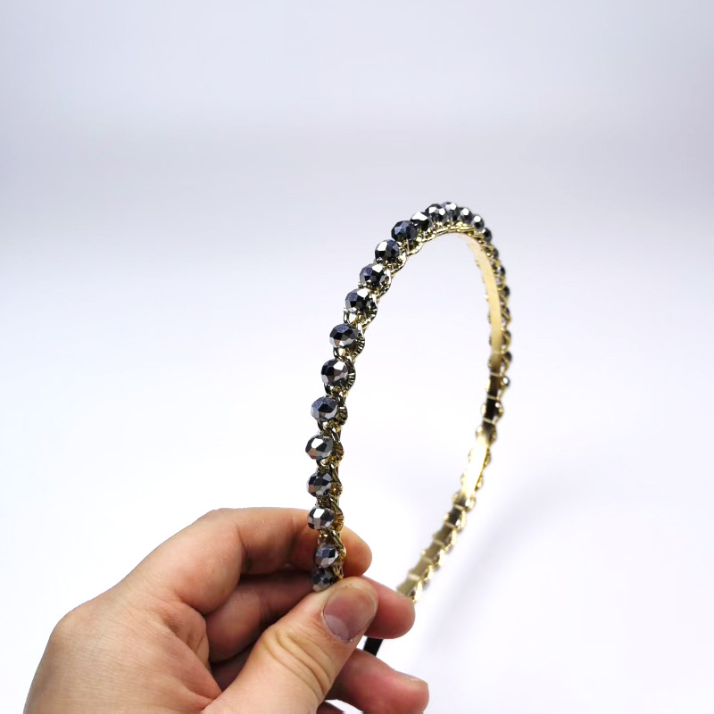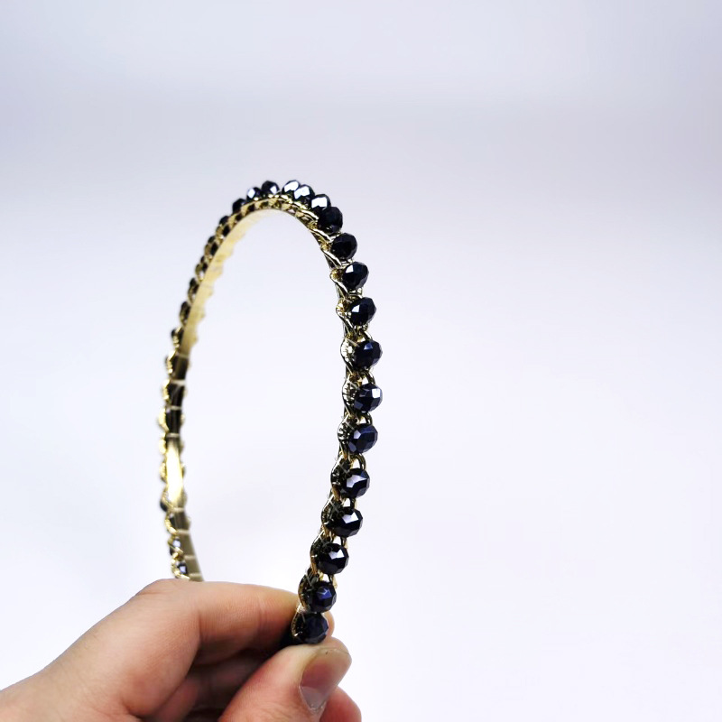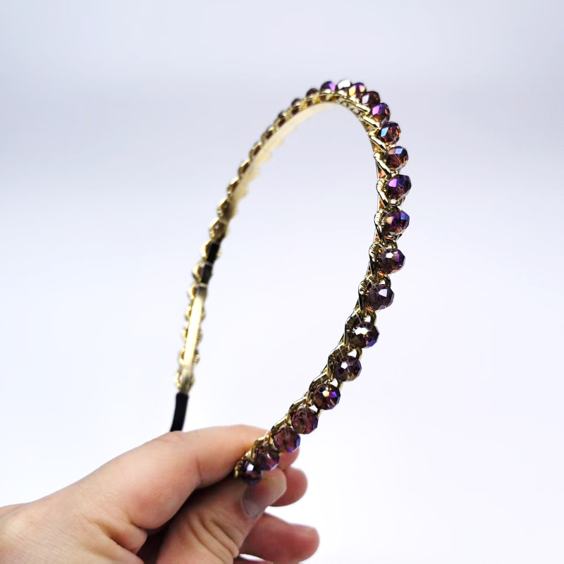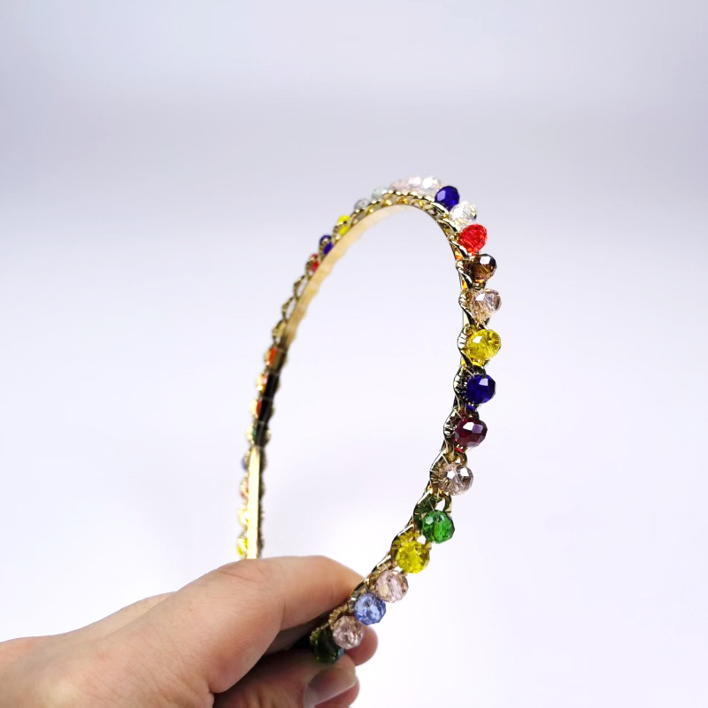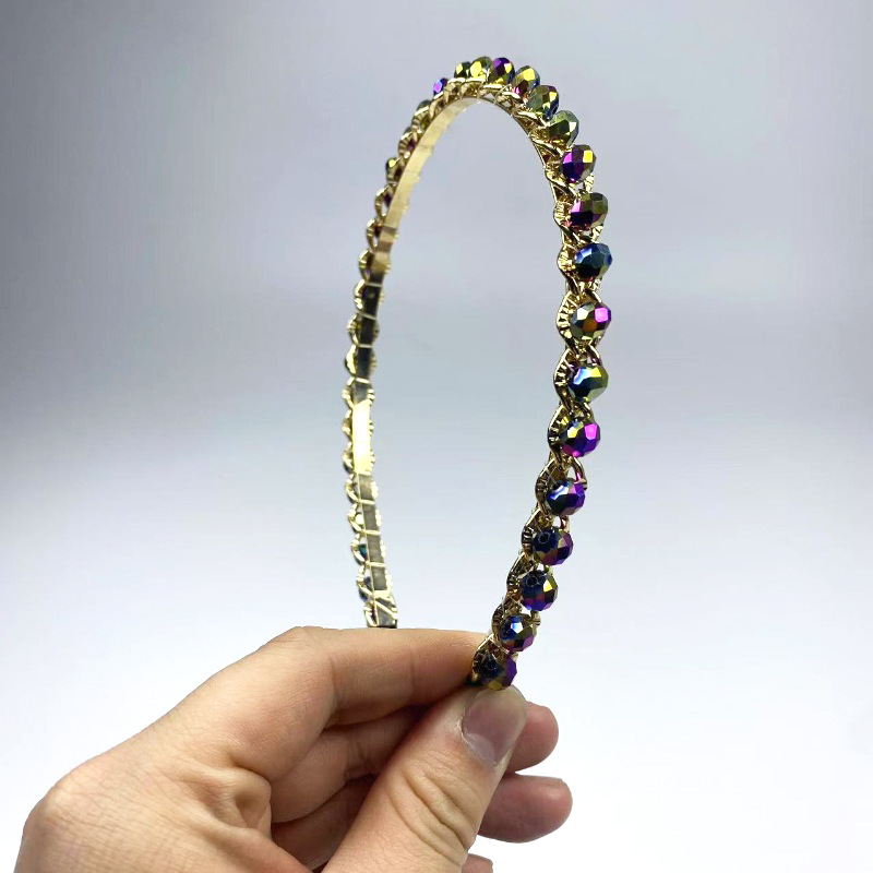多彩不规则水晶发箍2025新款复古合金链条头箍造型手工编织头饰女