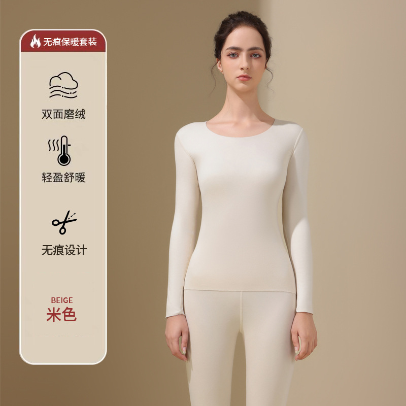 德绒无痕保暖内衣男女士秋衣秋裤套装双面磨毛打底衫厂家批发代发