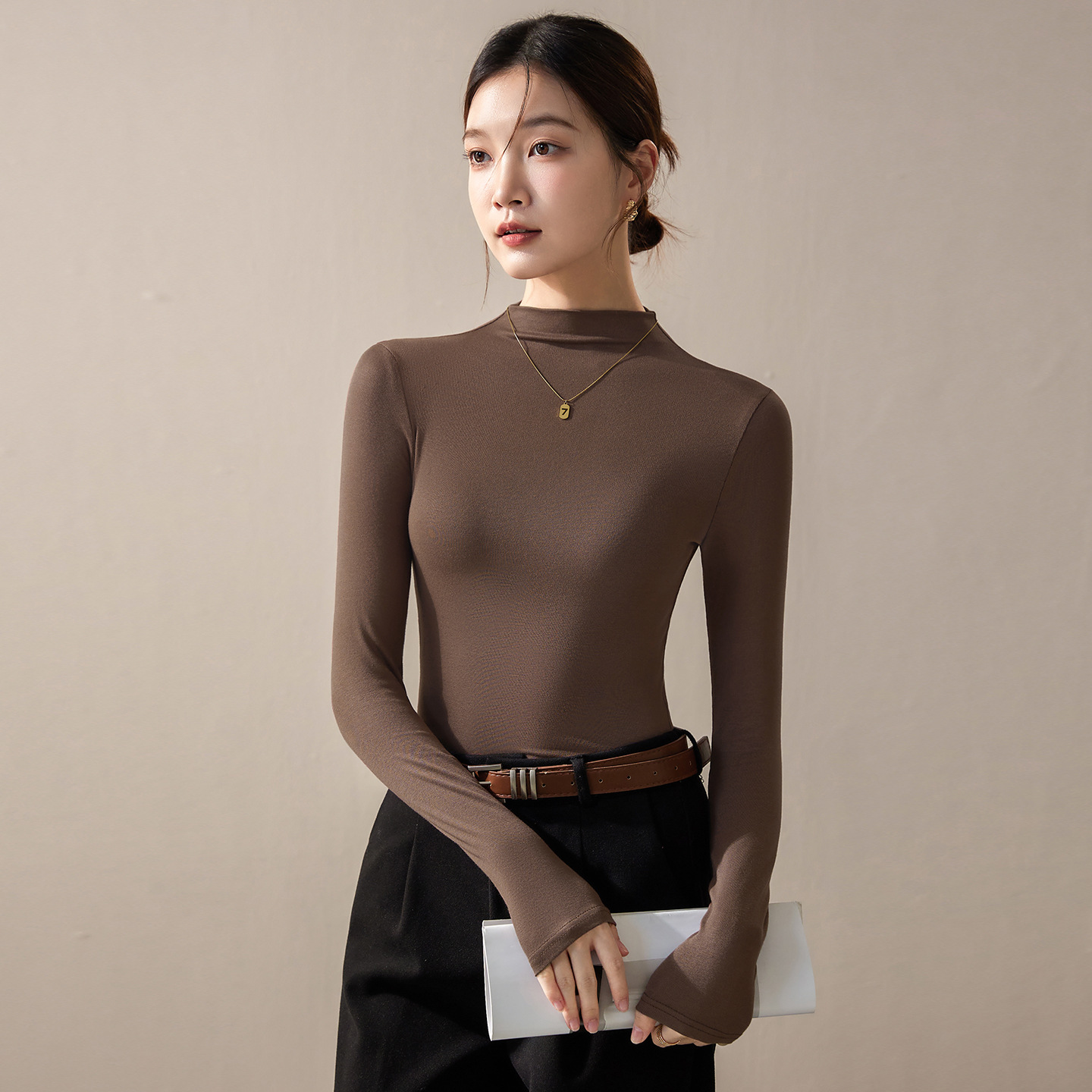 半高领t恤内搭打底衫秋季2025新款爆款莫代尔修身显瘦早秋上衣t恤