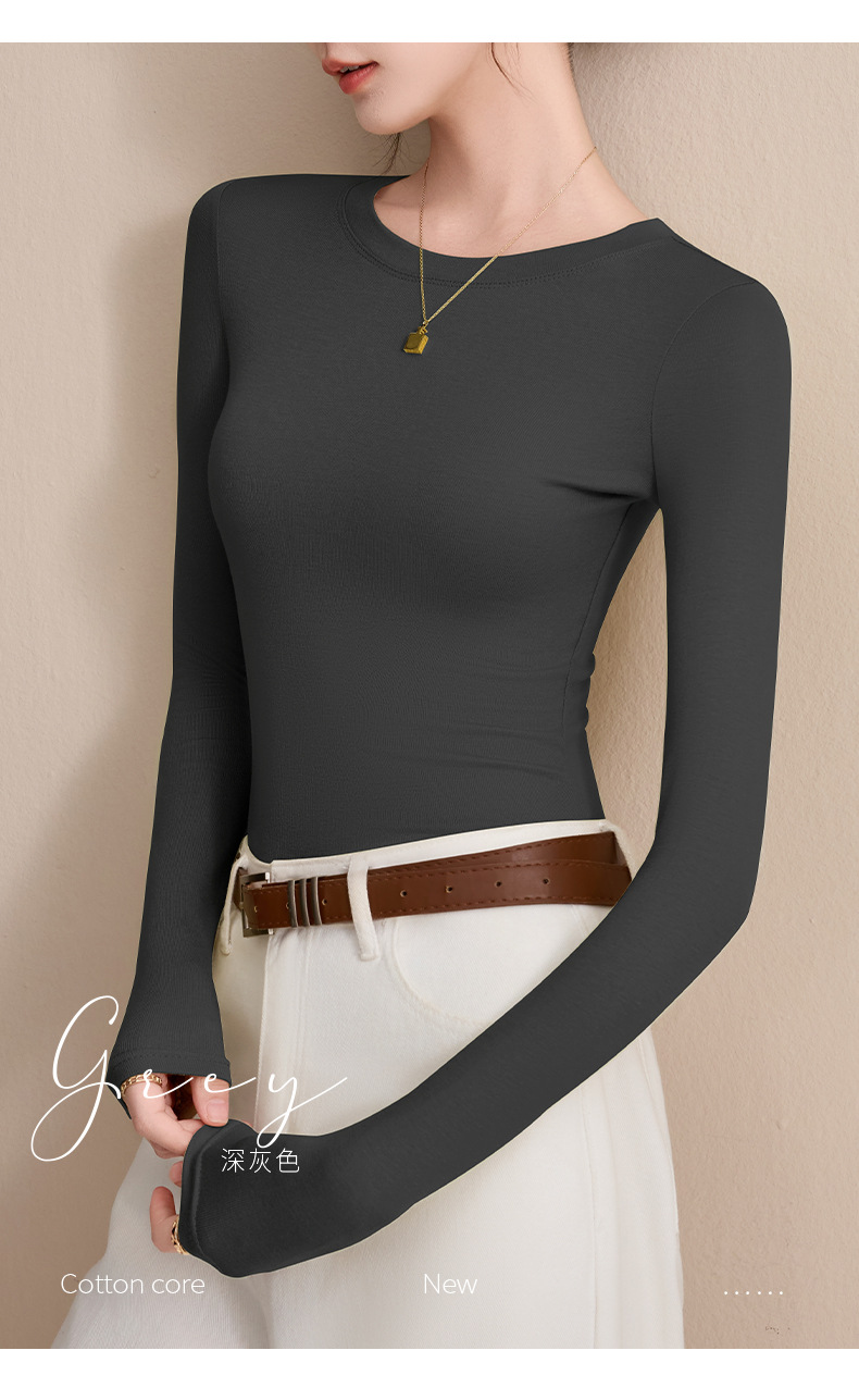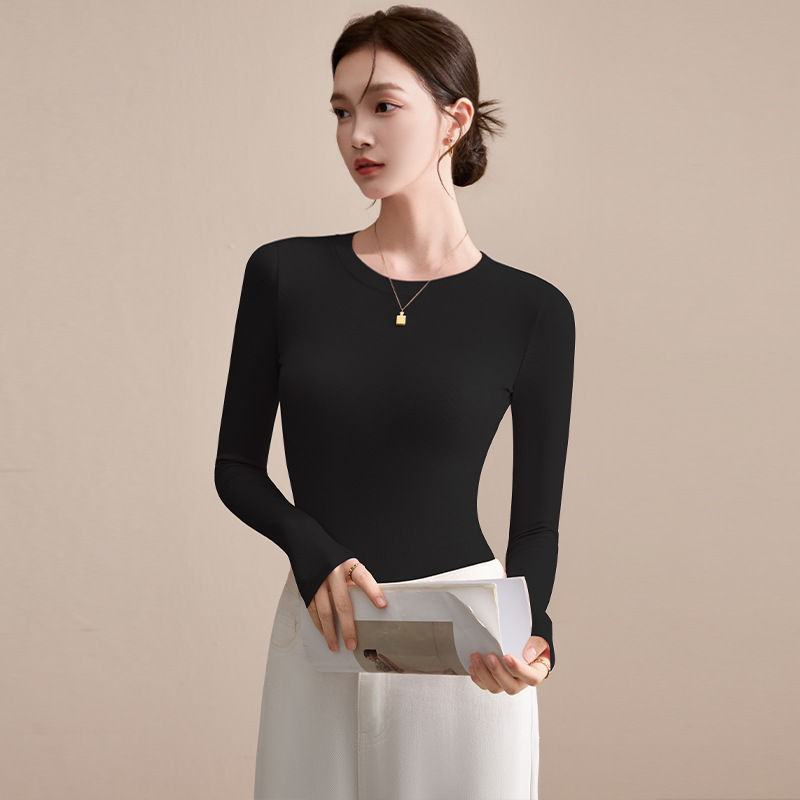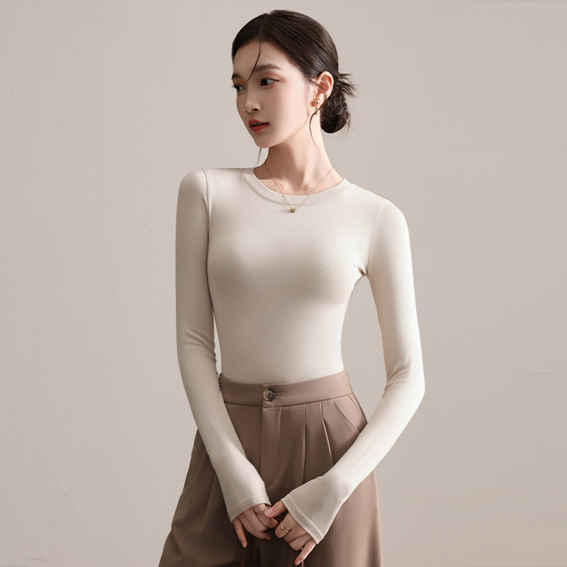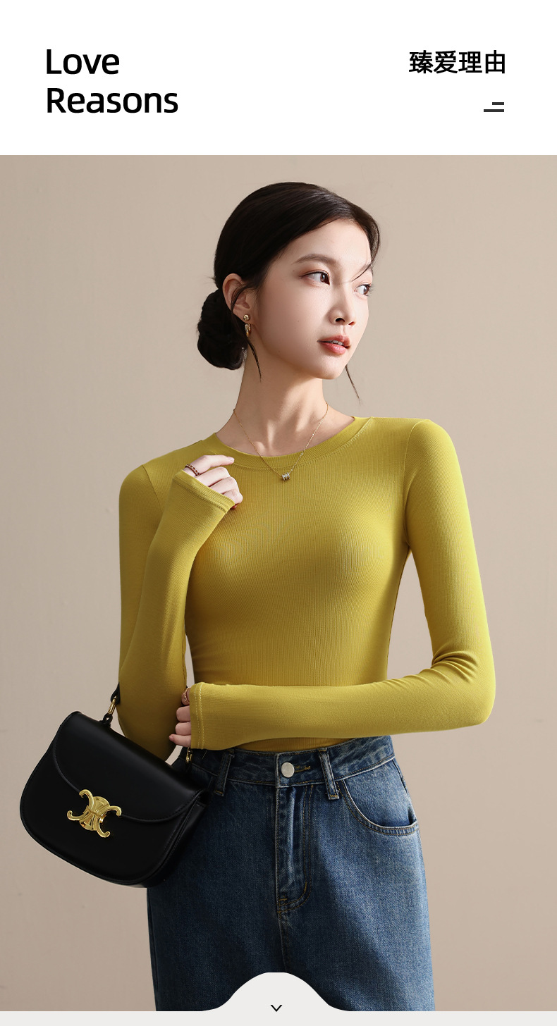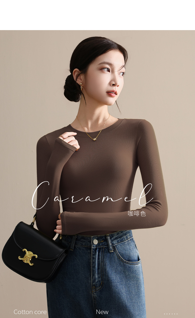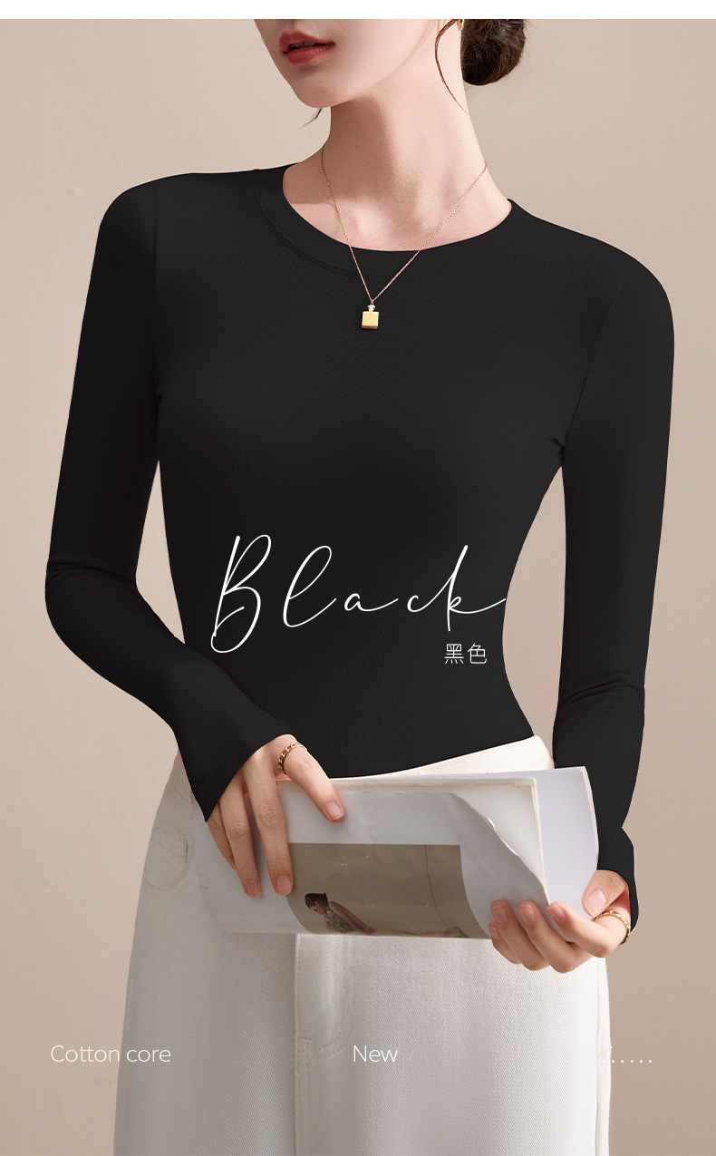 圆领打底衫女秋冬季2025新款早秋穿搭上衣内搭紧身针织长袖t恤衫