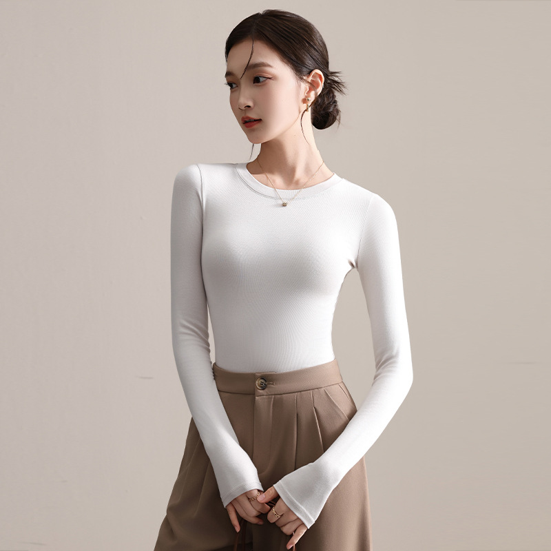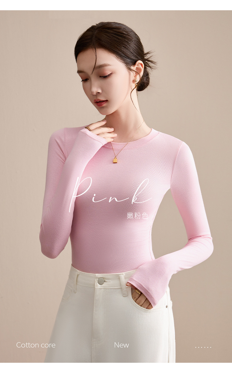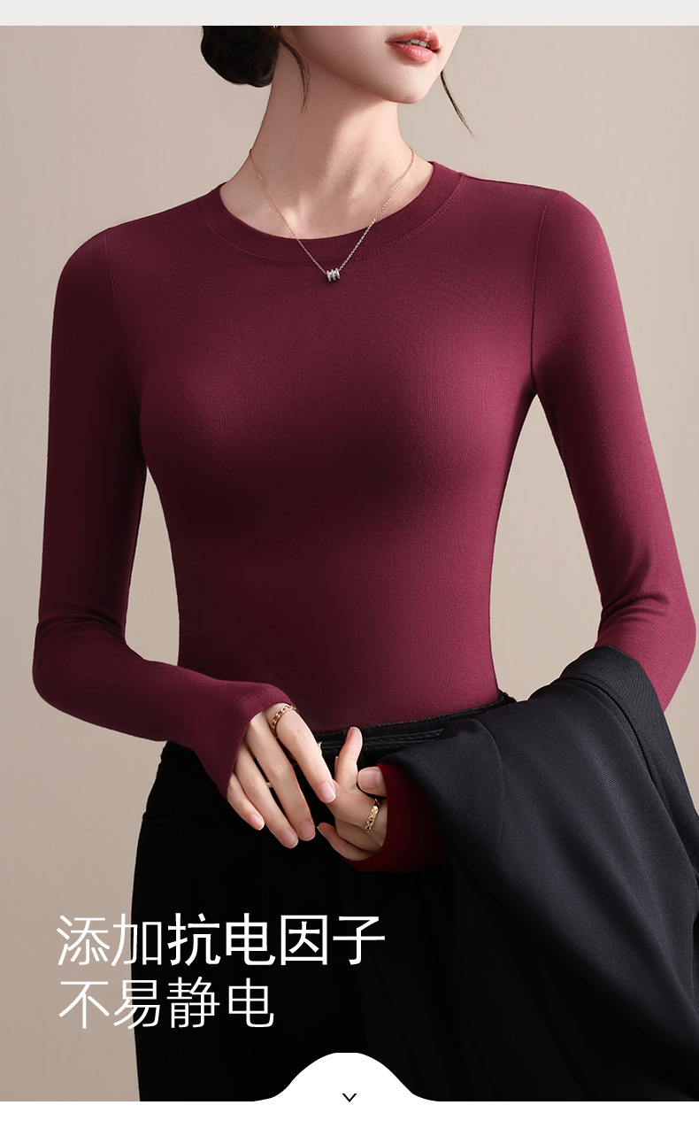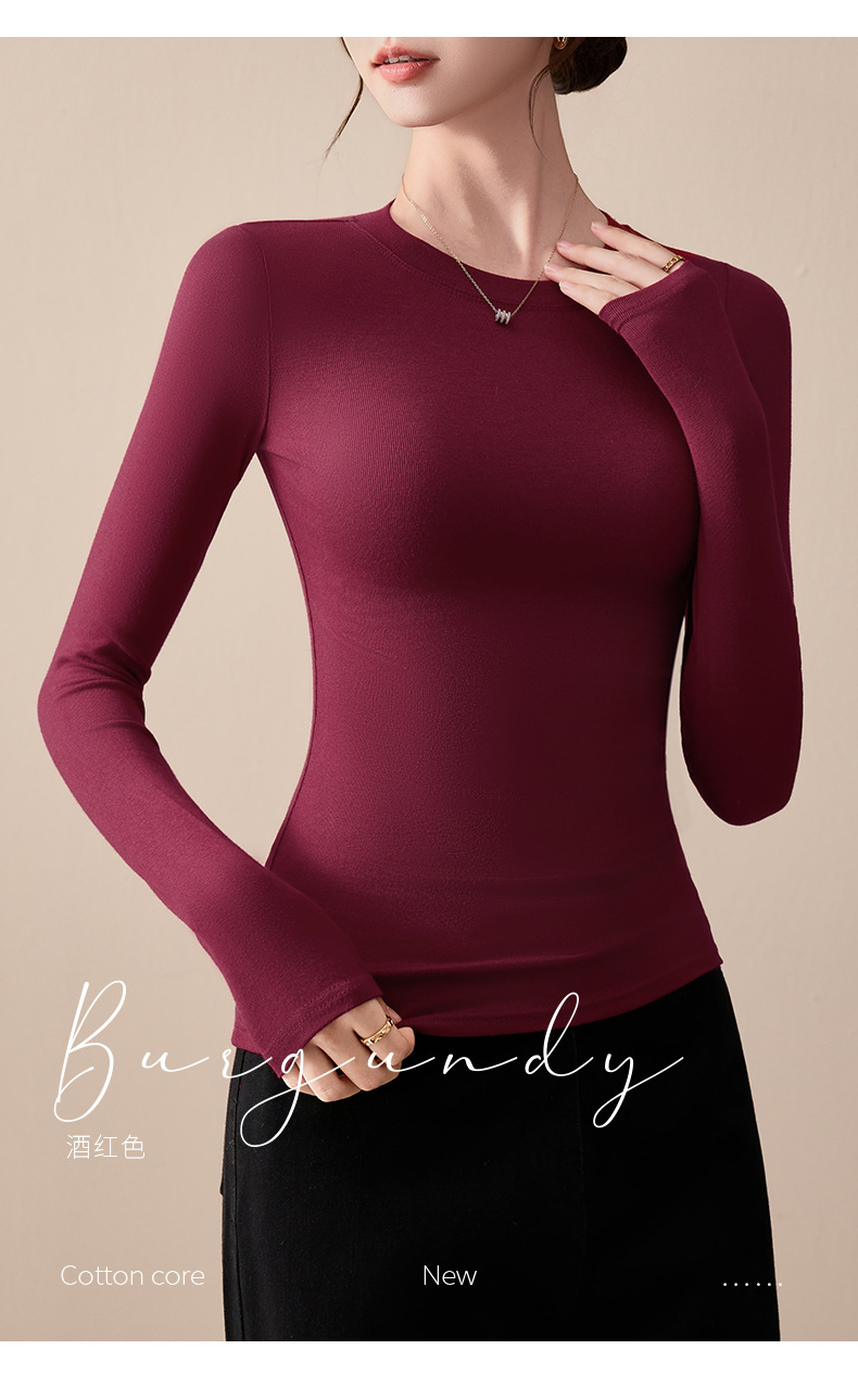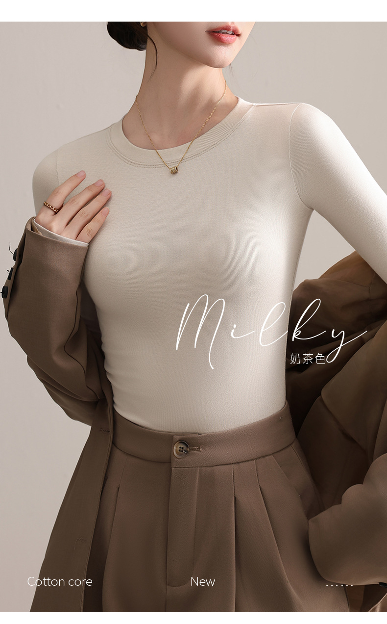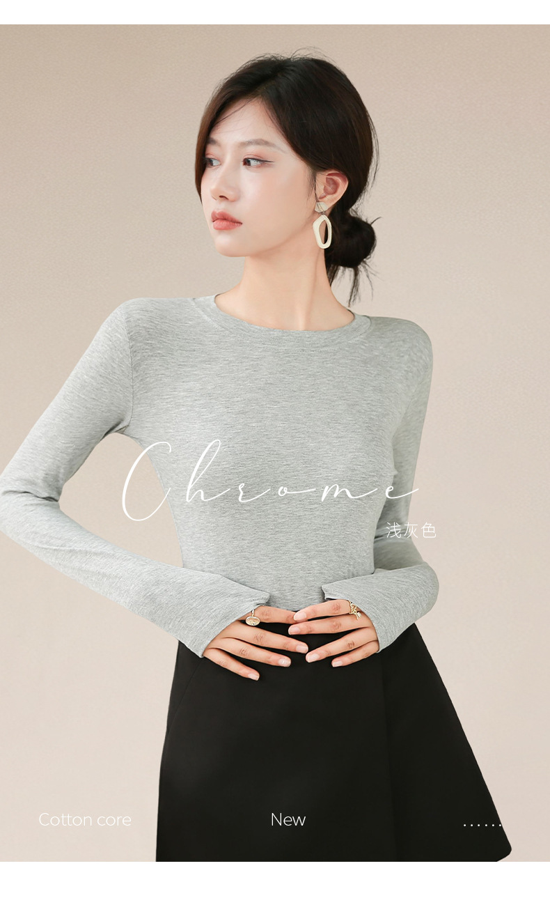 圆领打底衫女秋冬季2025新款早秋穿搭上衣内搭紧身针织长袖t恤衫