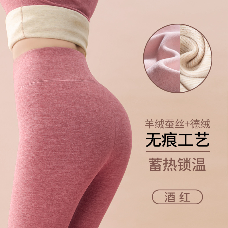 羊绒蚕丝保暖套装女士加绒加厚无痕发热德绒内衣打底秋衣秋裤冬季