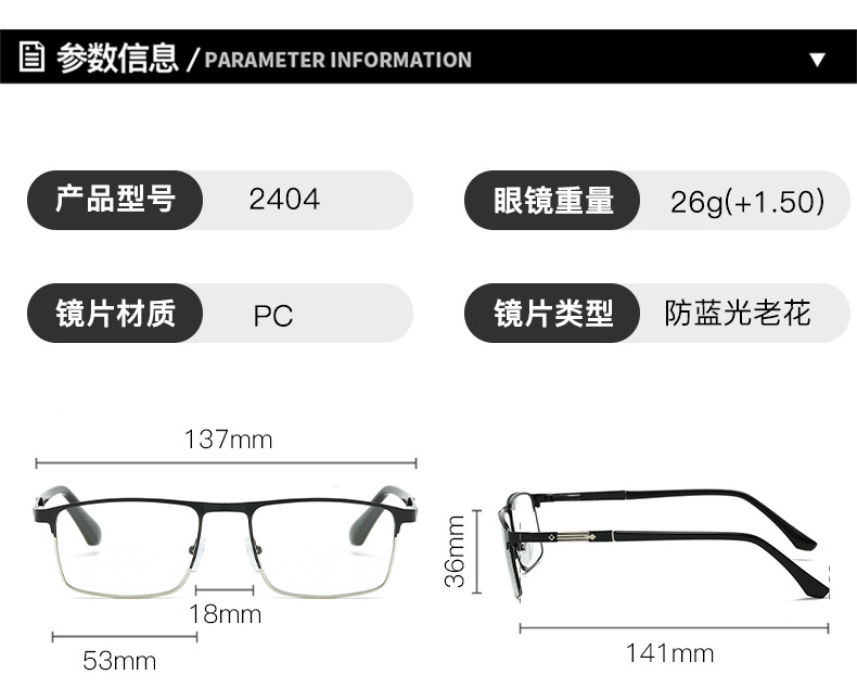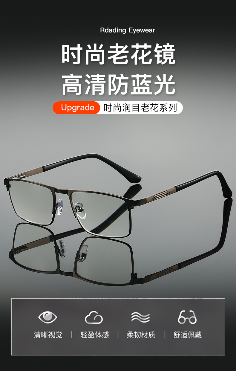 金属 方形弹簧腿老人阅读镜 厂家批发 跨境 老花镜 2404高清眼镜