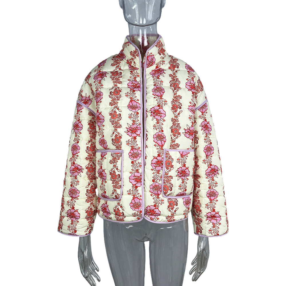 11色齐码长期大量现货秋冬新款亚马逊速卖通印花女棉衣外套HY073