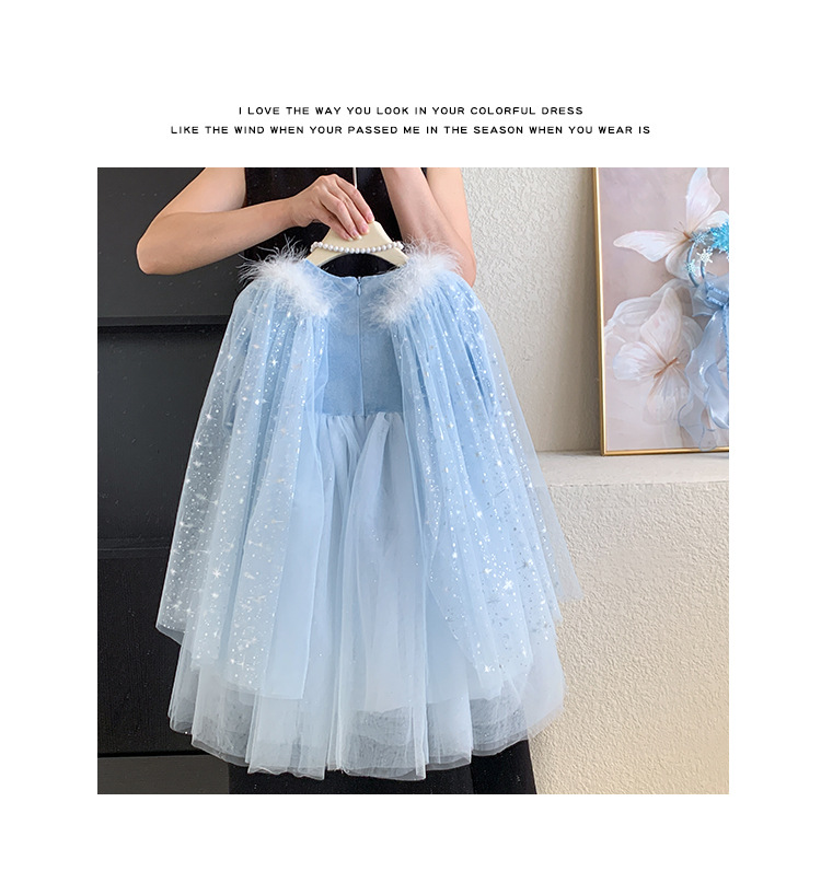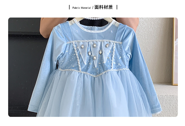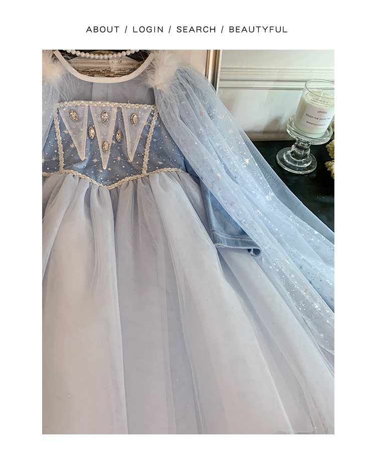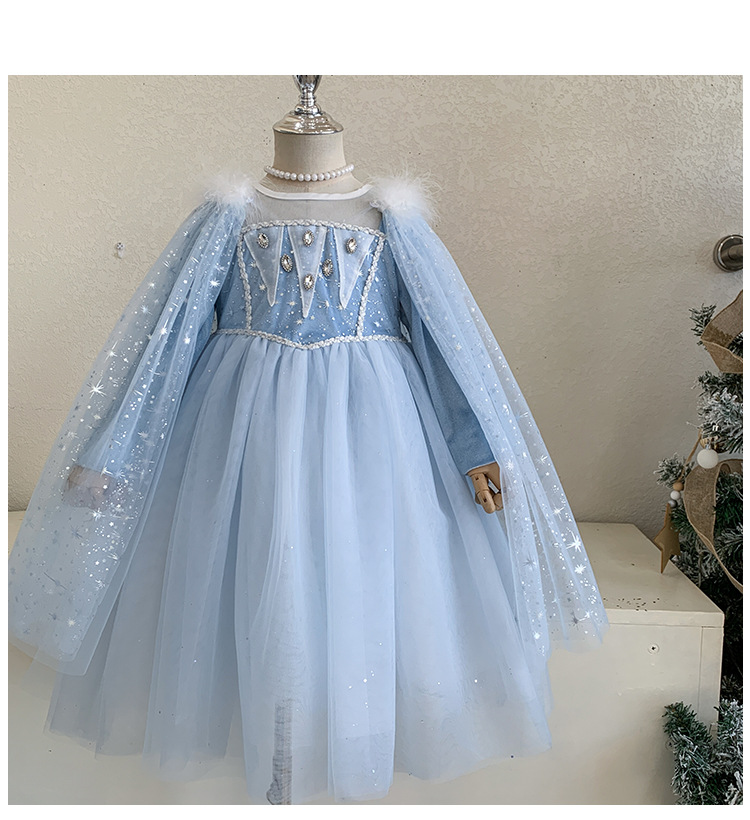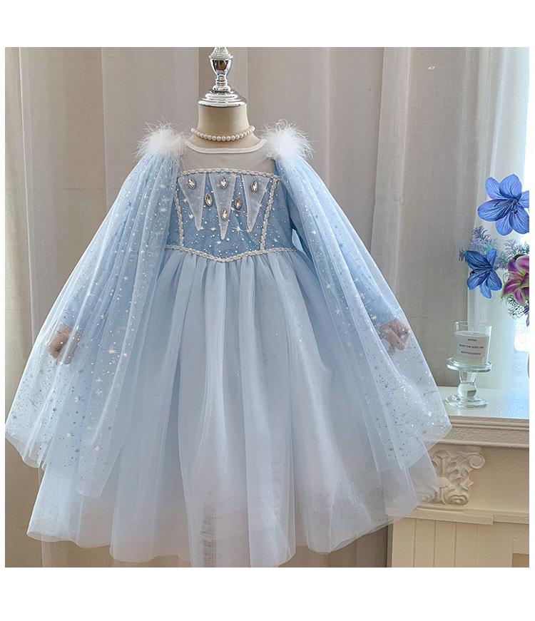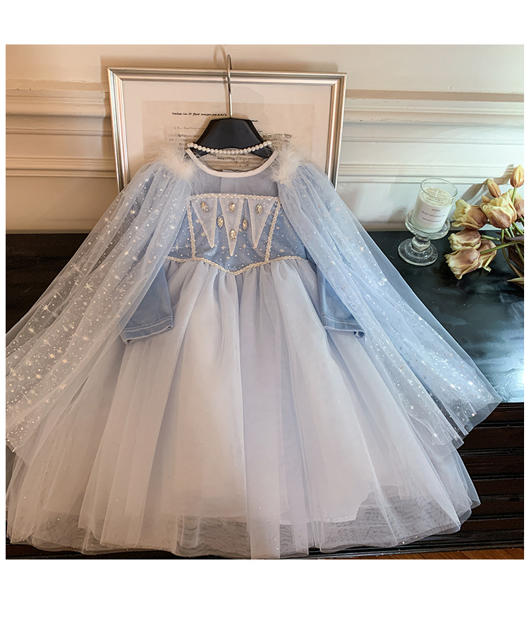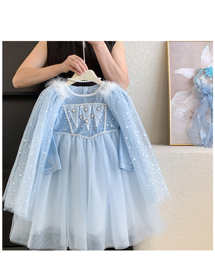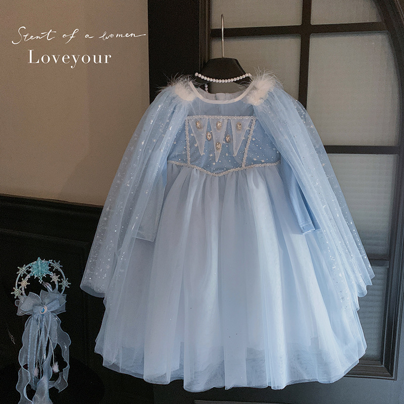 女童艾莎公主裙秋装2025女宝蓬蓬纱裙带披肩可拆卸冰雪奇缘连衣裙