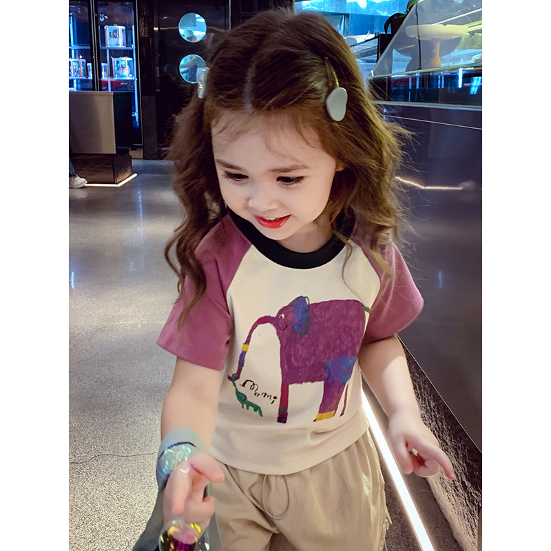 女童短袖T恤夏装2025新款宽松韩版卡通上衣小女孩洋气儿童打底衫