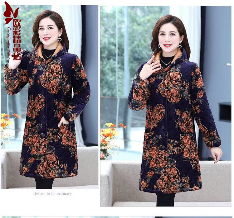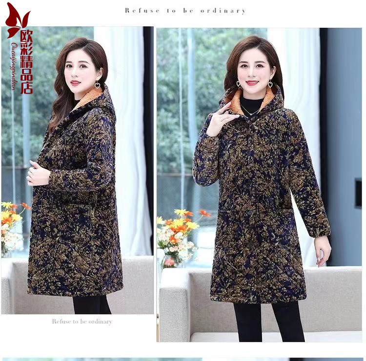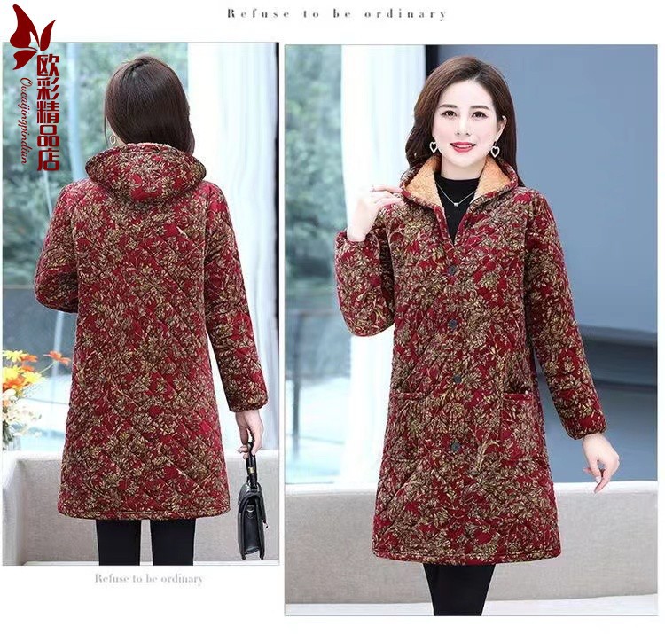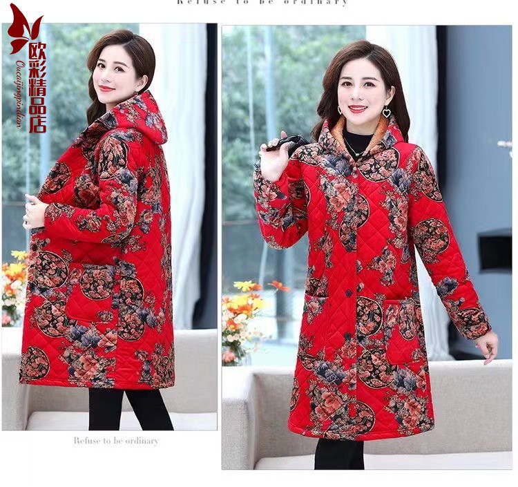 妈妈冬装加绒连帽外套新款中老年加厚棉衣女秋冬奶奶棉袄大码棉服