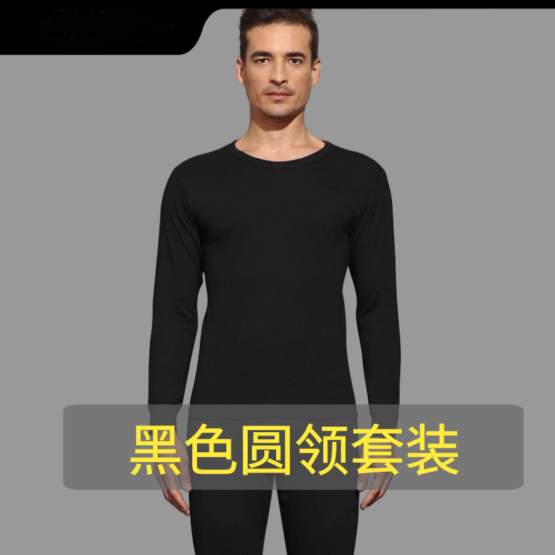 新款男士中圆领棉秋衣套装保暖内衣打底棉毛衫薄款中领男厂家直销