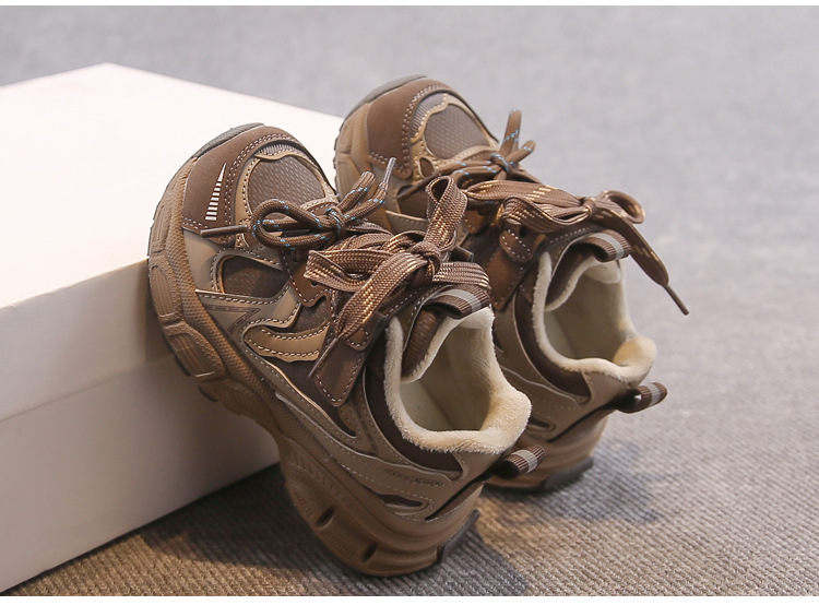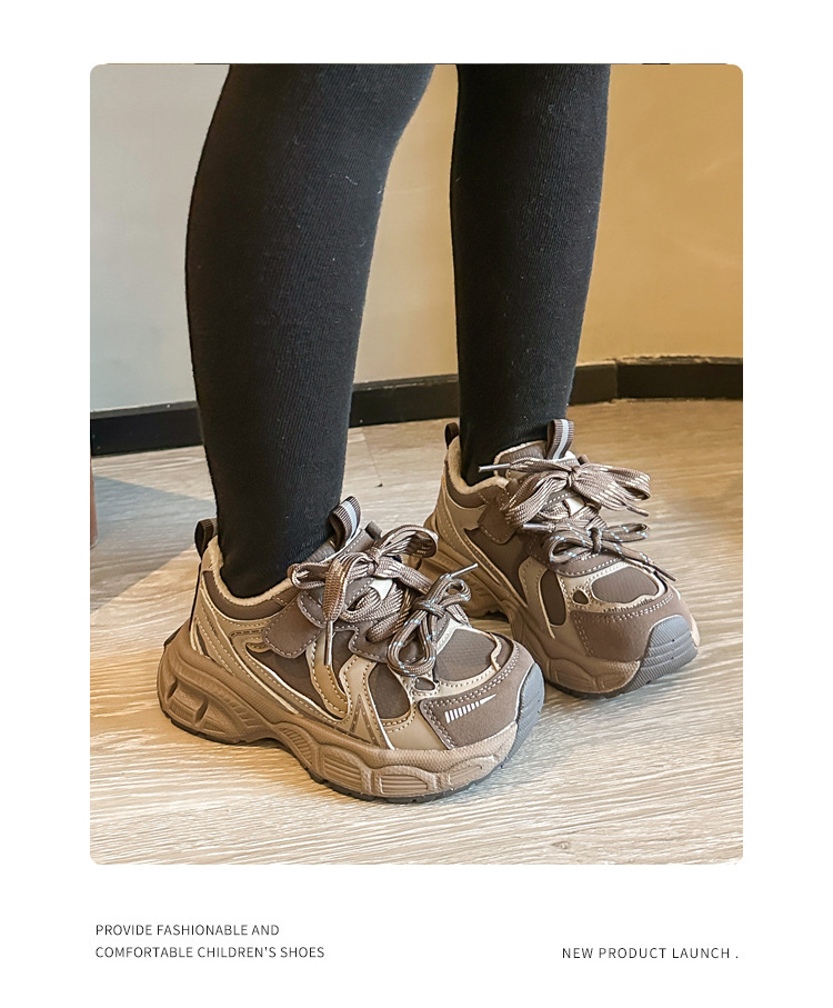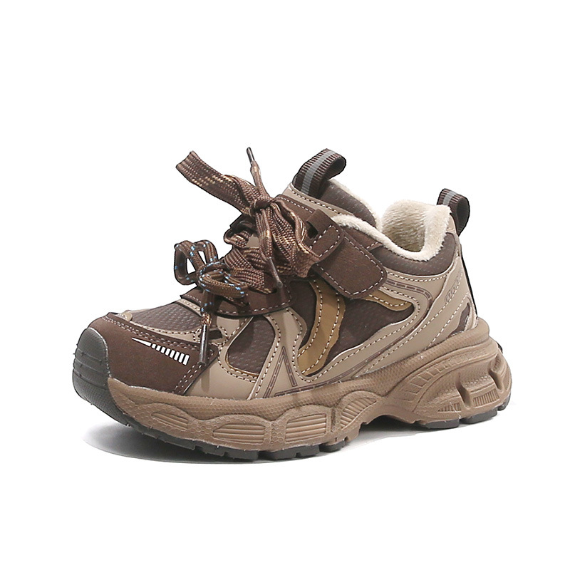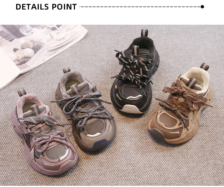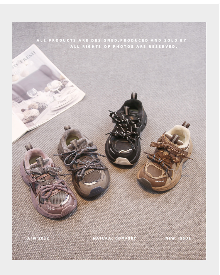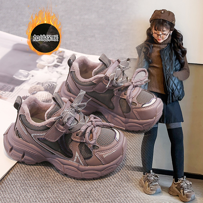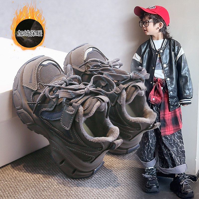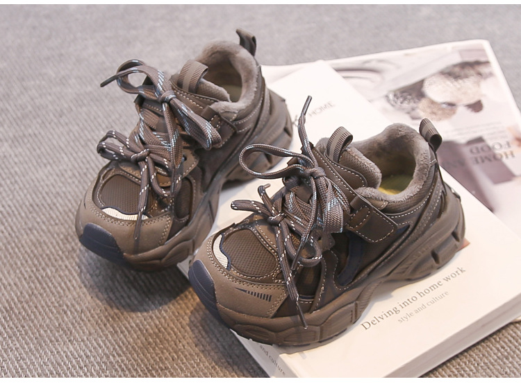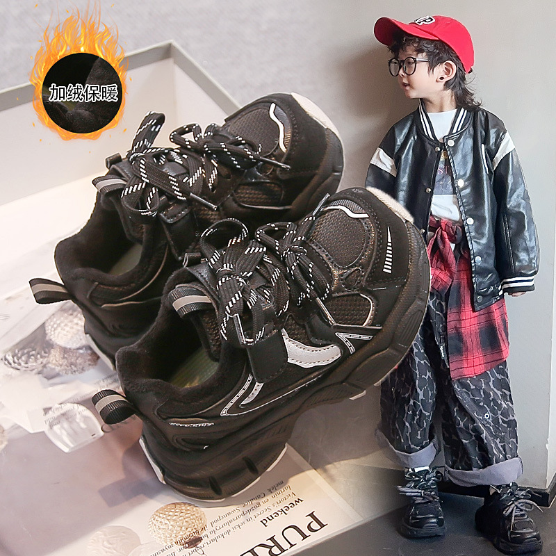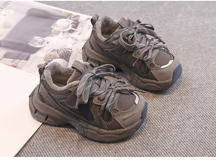 双鞋带老爹鞋2025冬款儿童鞋男童女童加绒二棉百搭休闲鞋