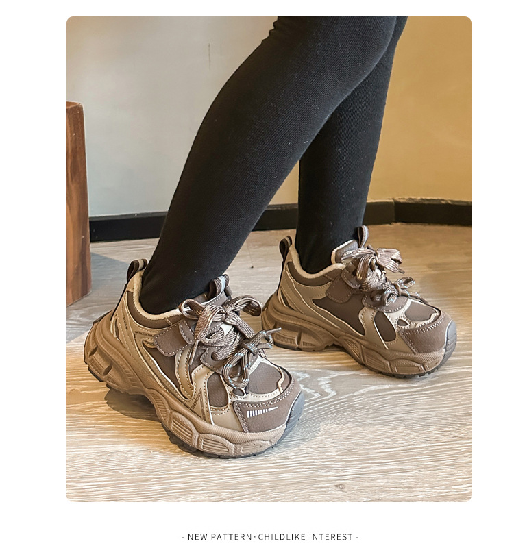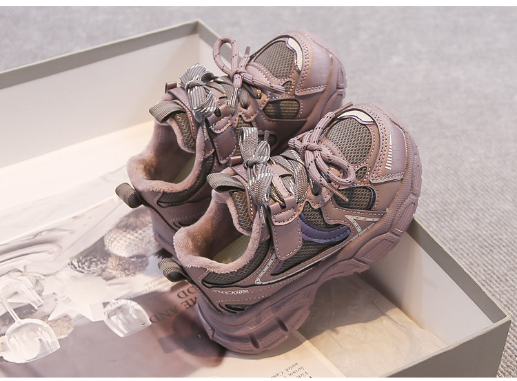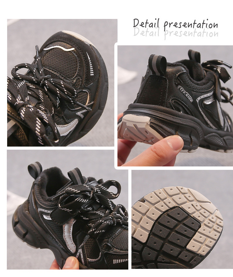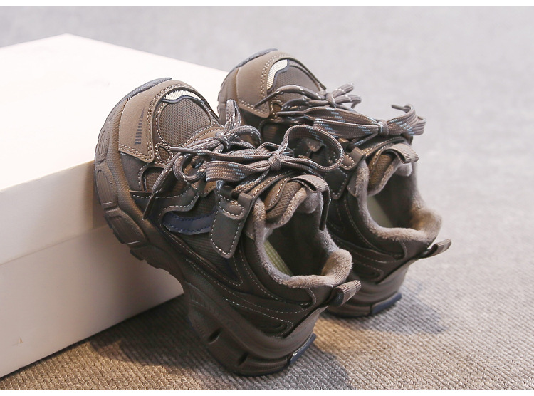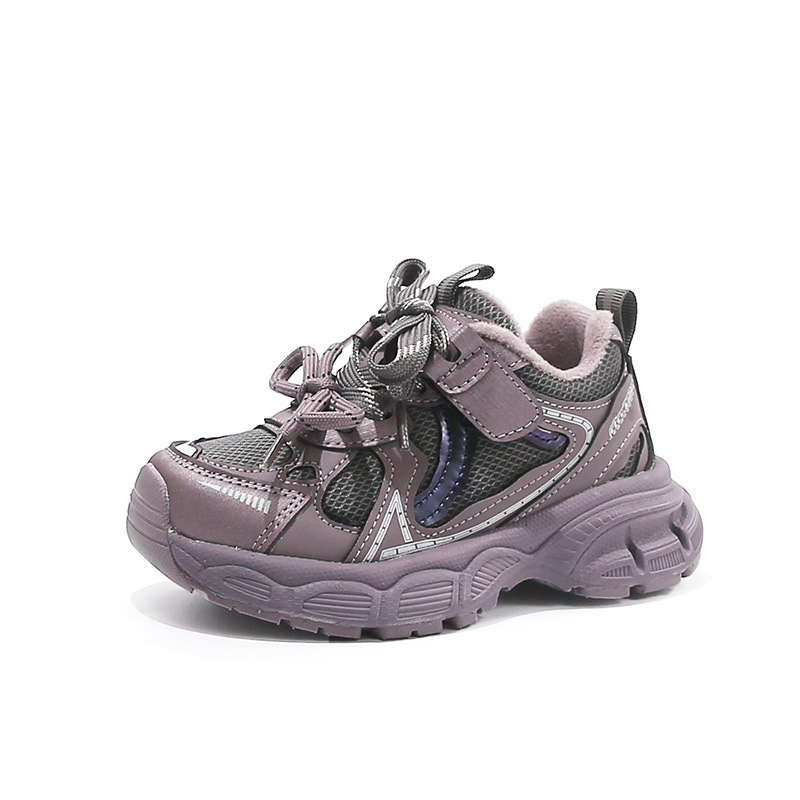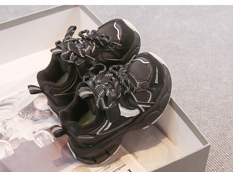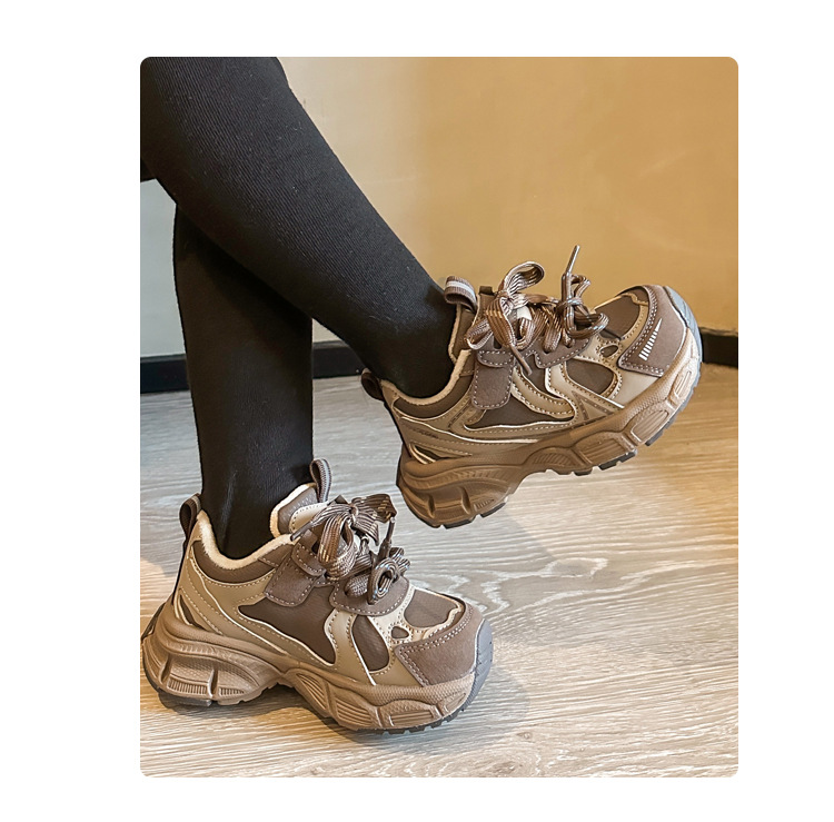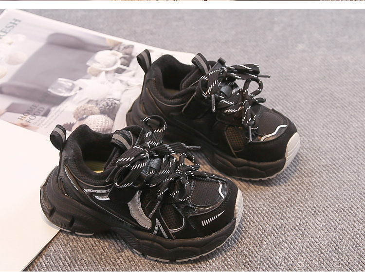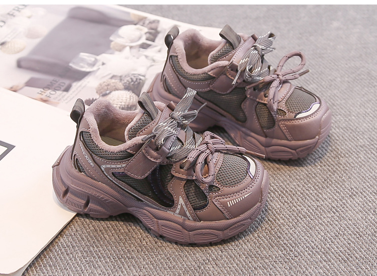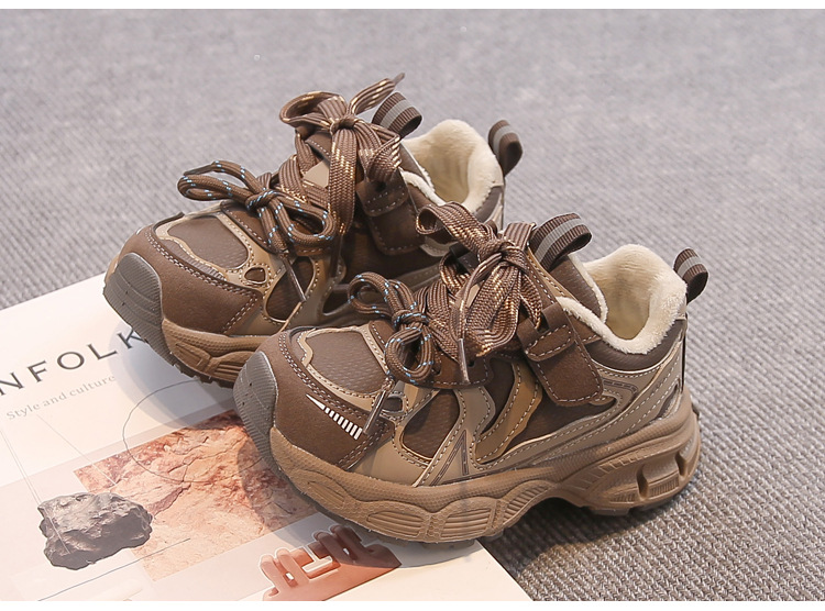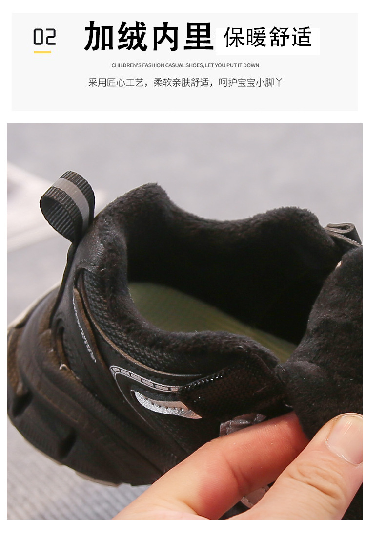 双鞋带老爹鞋2025冬款儿童鞋男童女童加绒二棉百搭休闲鞋