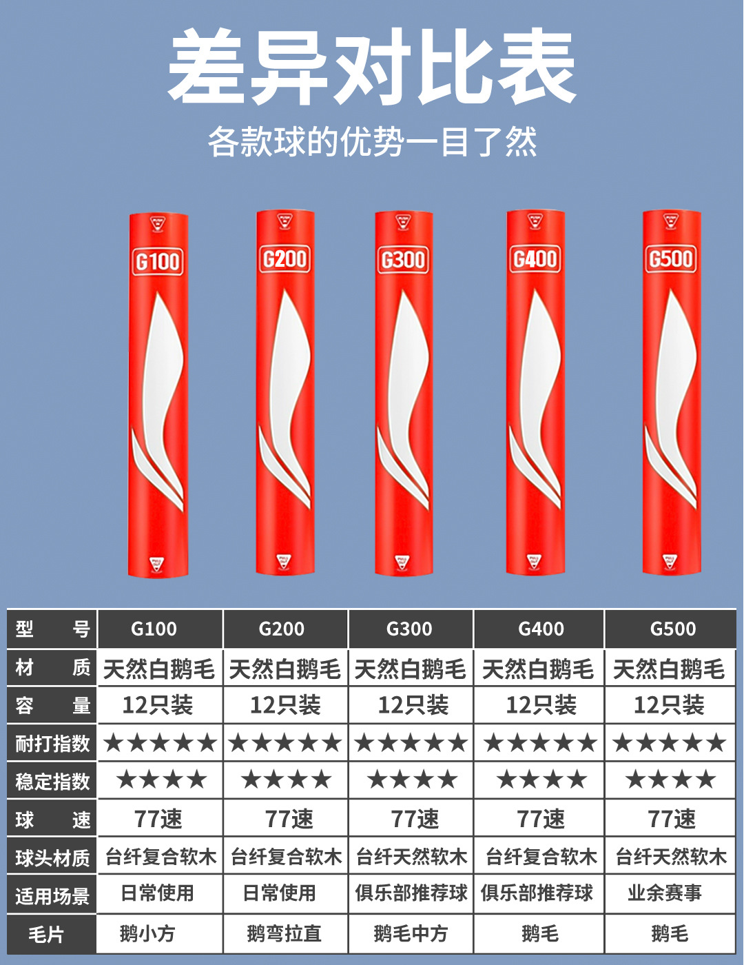 李宁羽毛球正品g100s耐打王鹅毛12只装室外防风g200d1d3sc10c20d8