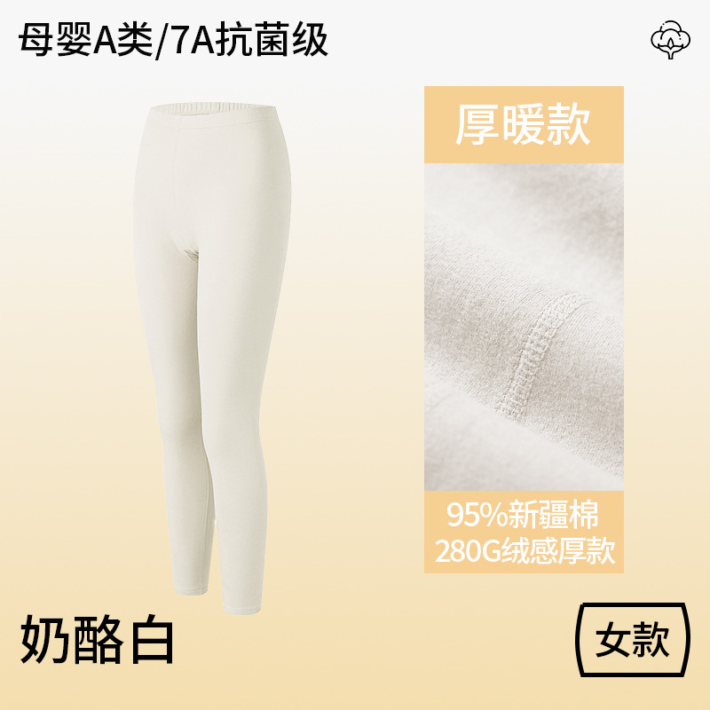 这是一款采用40S精梳新疆棉织造而成的秋裤,它能同时满足保暖和透气,温和不躁——这是入秋的刚需。