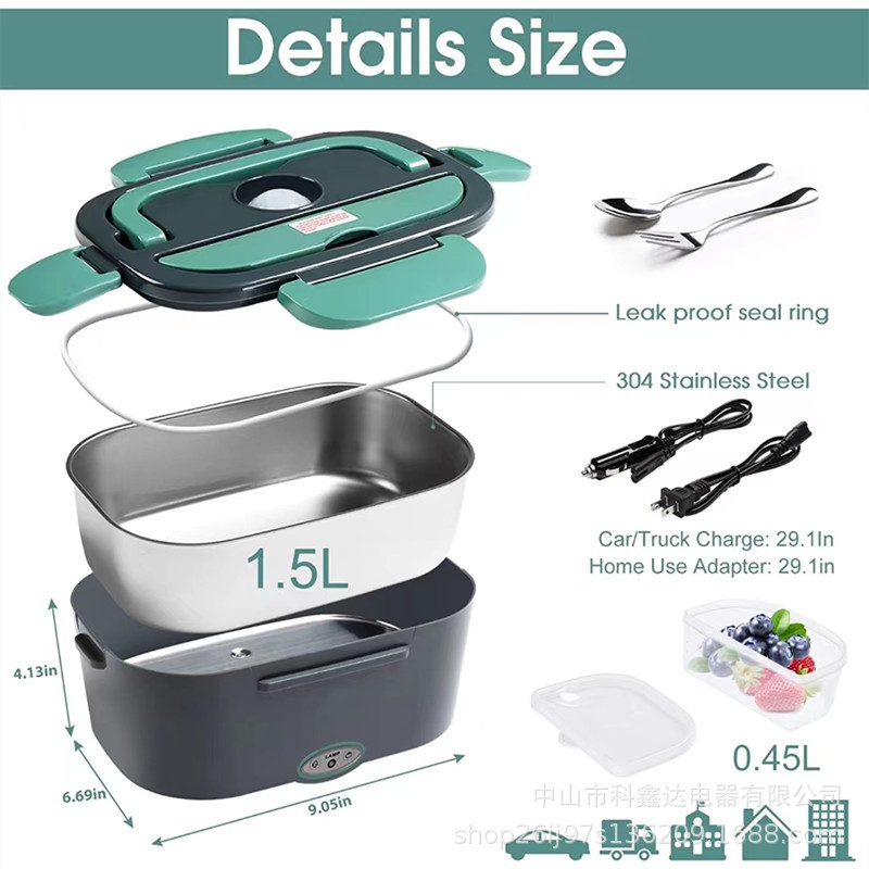 新款1.5L大功率电热保温加热饭盒 家车两用不锈钢午餐盒 跨境爆款