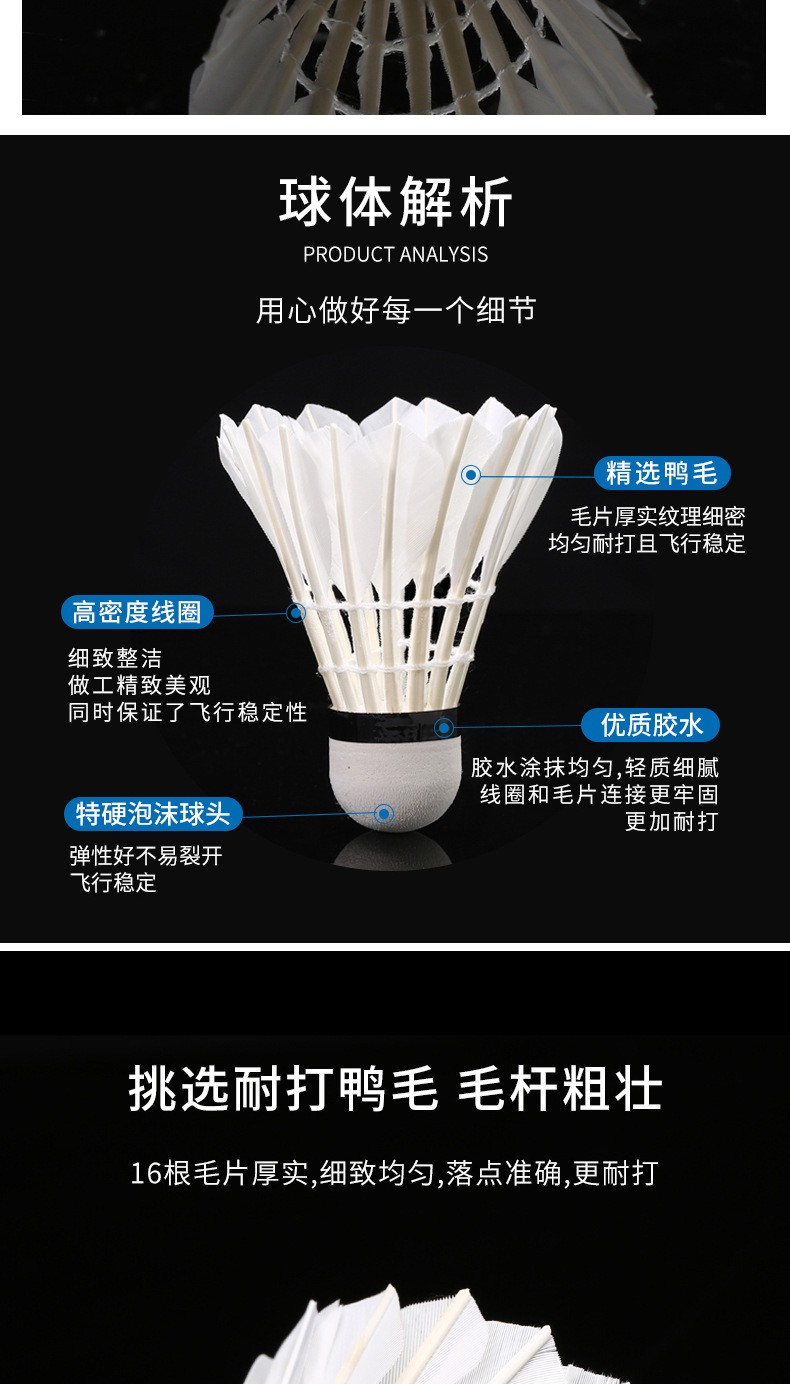 正品耐打王羽毛球12只装稳定耐打专业训练鹅毛无标比赛用球