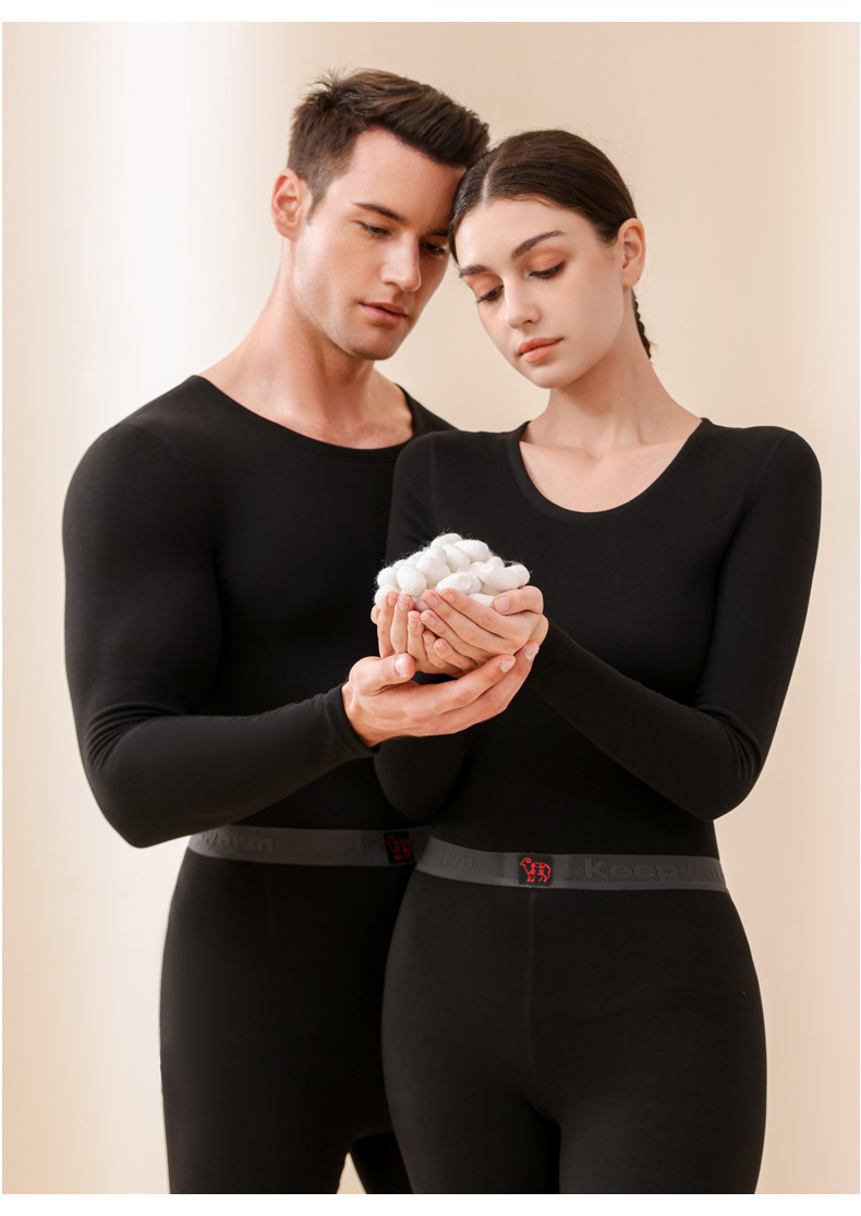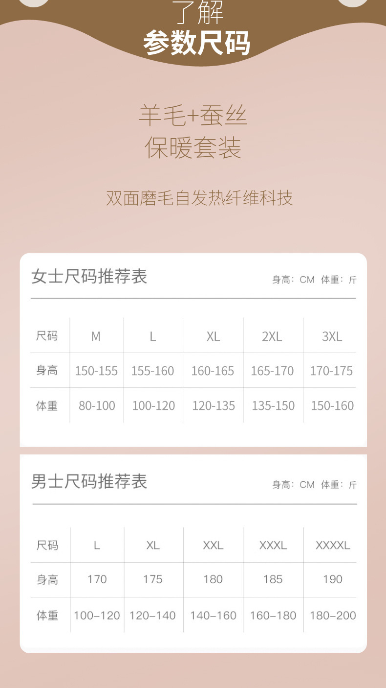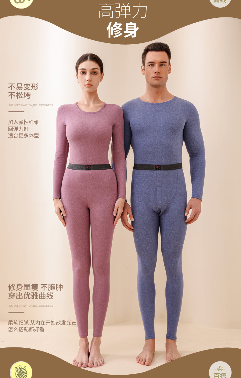 德绒保暖内衣套装女秋冬款男士蚕丝羊毛加绒加厚修身打底秋衣秋裤