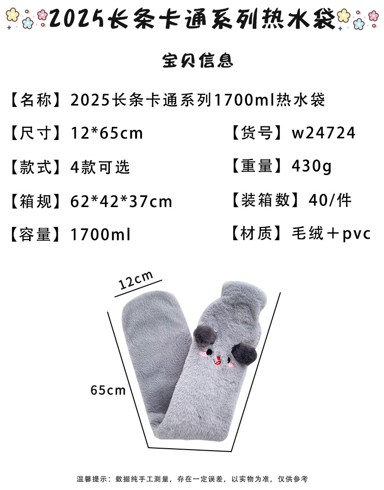 新款2025长条暖水袋注水暖手宝布套冬天暖被窝加厚PVC灌水热水袋