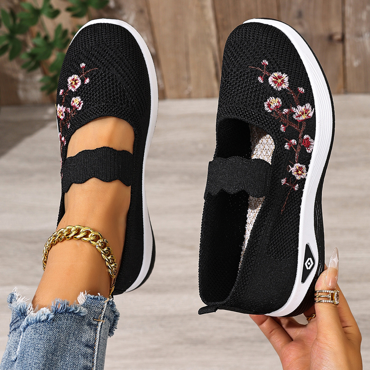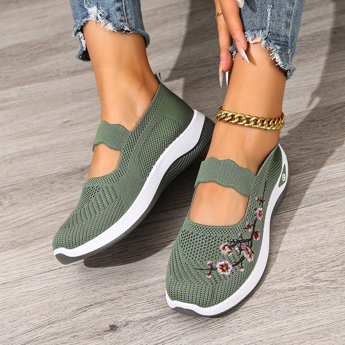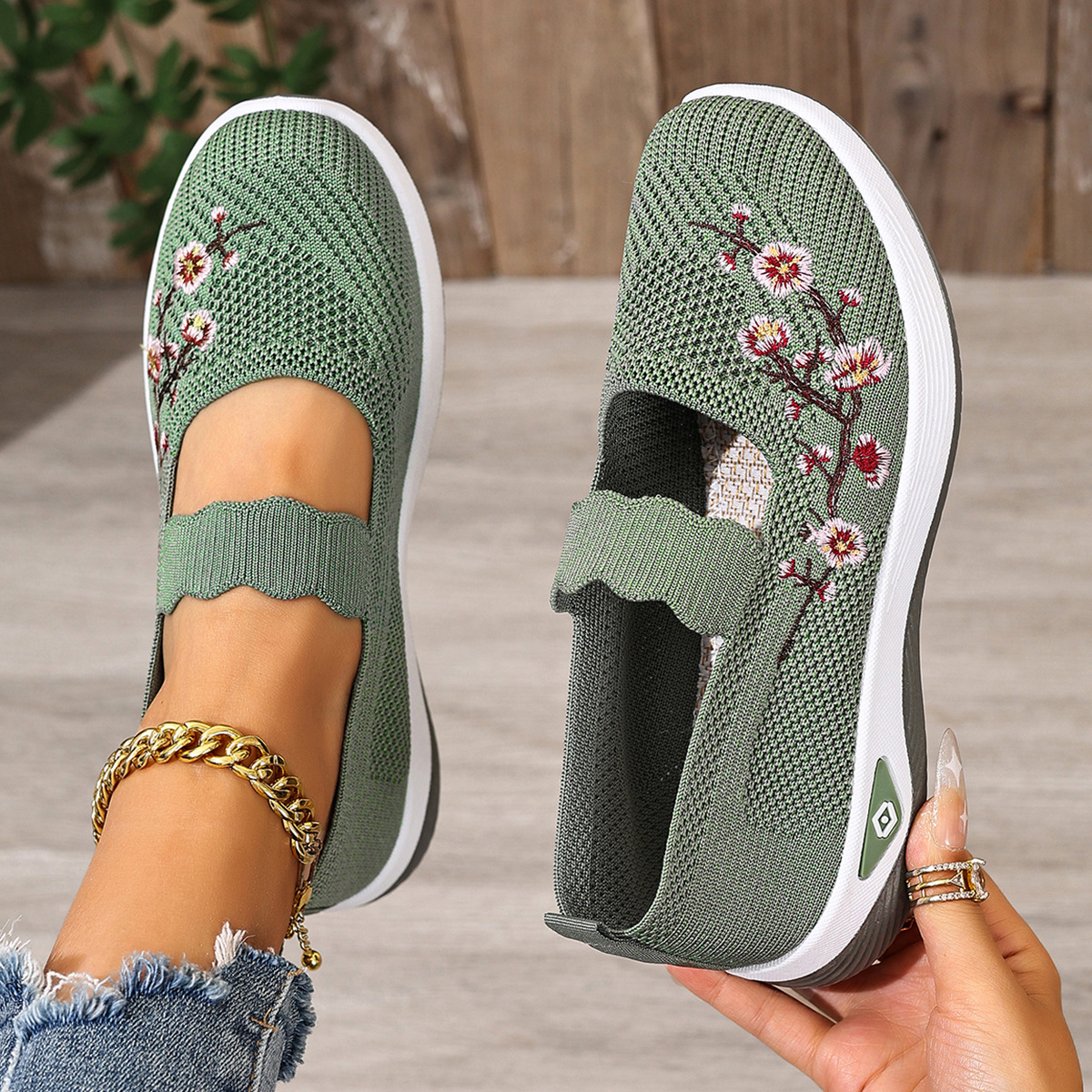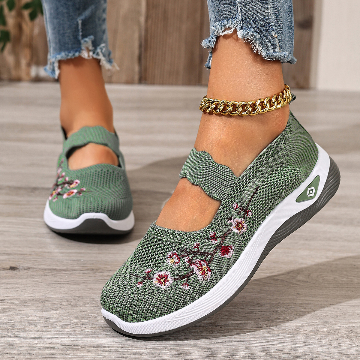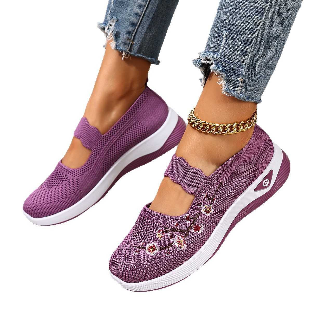 外贸大码单鞋女2025秋季新款跨境休闲鞋绣花鞋布鞋一脚蹬单鞋