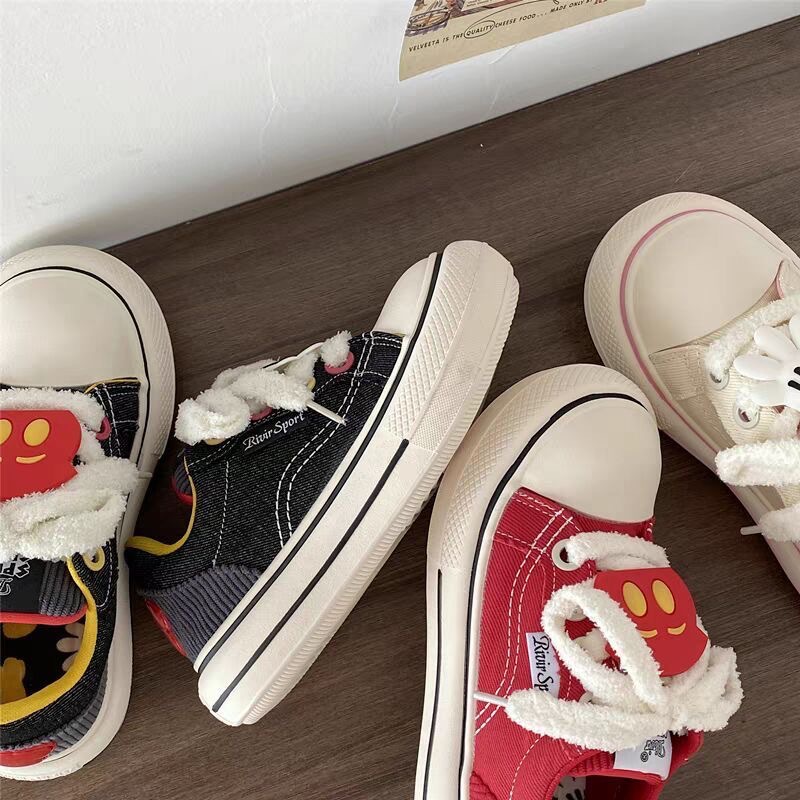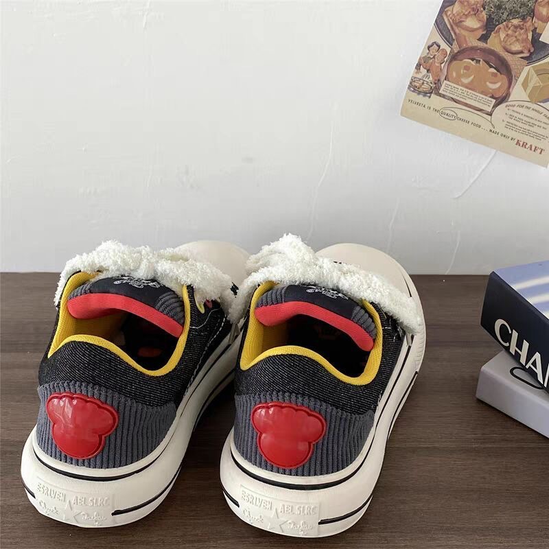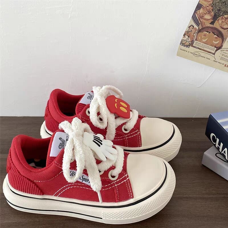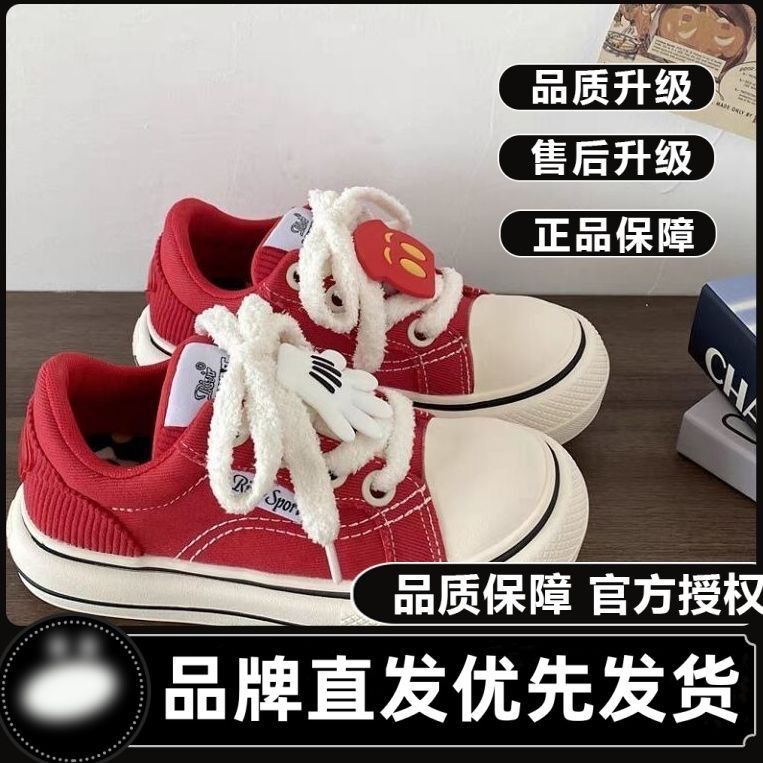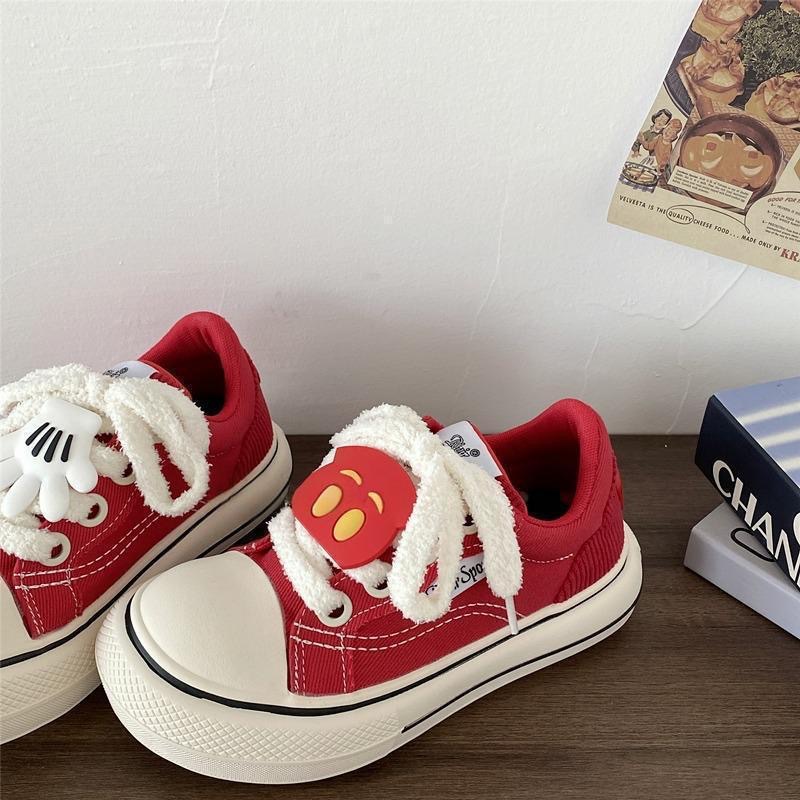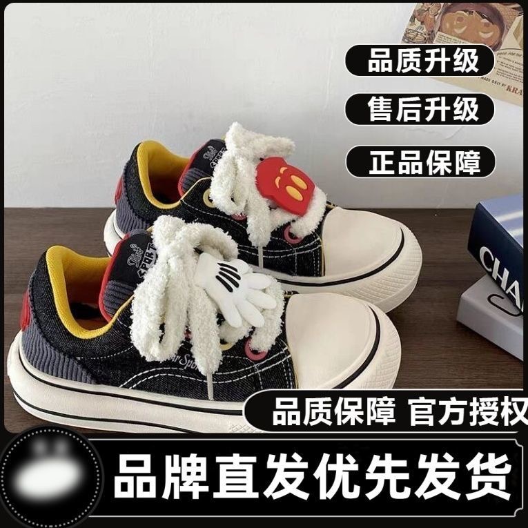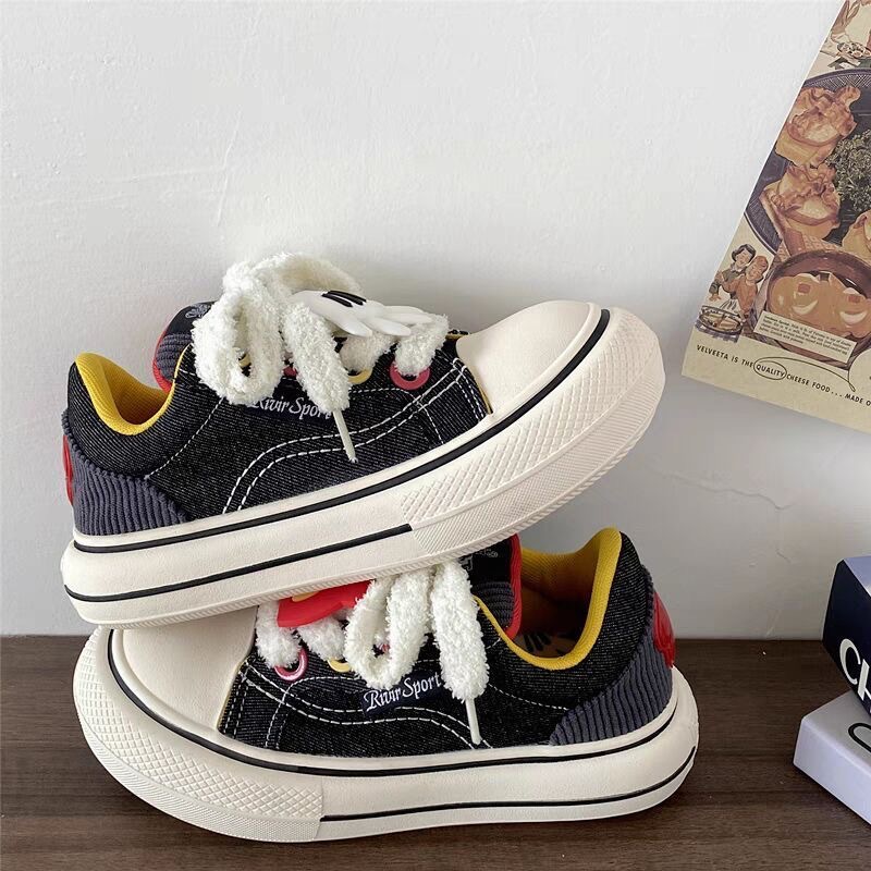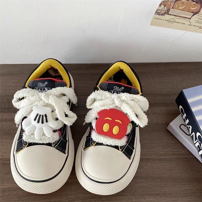 丑萌大头面包帆布鞋女米奇米妮2025秋季新款百搭厚底鞋休闲运动鞋