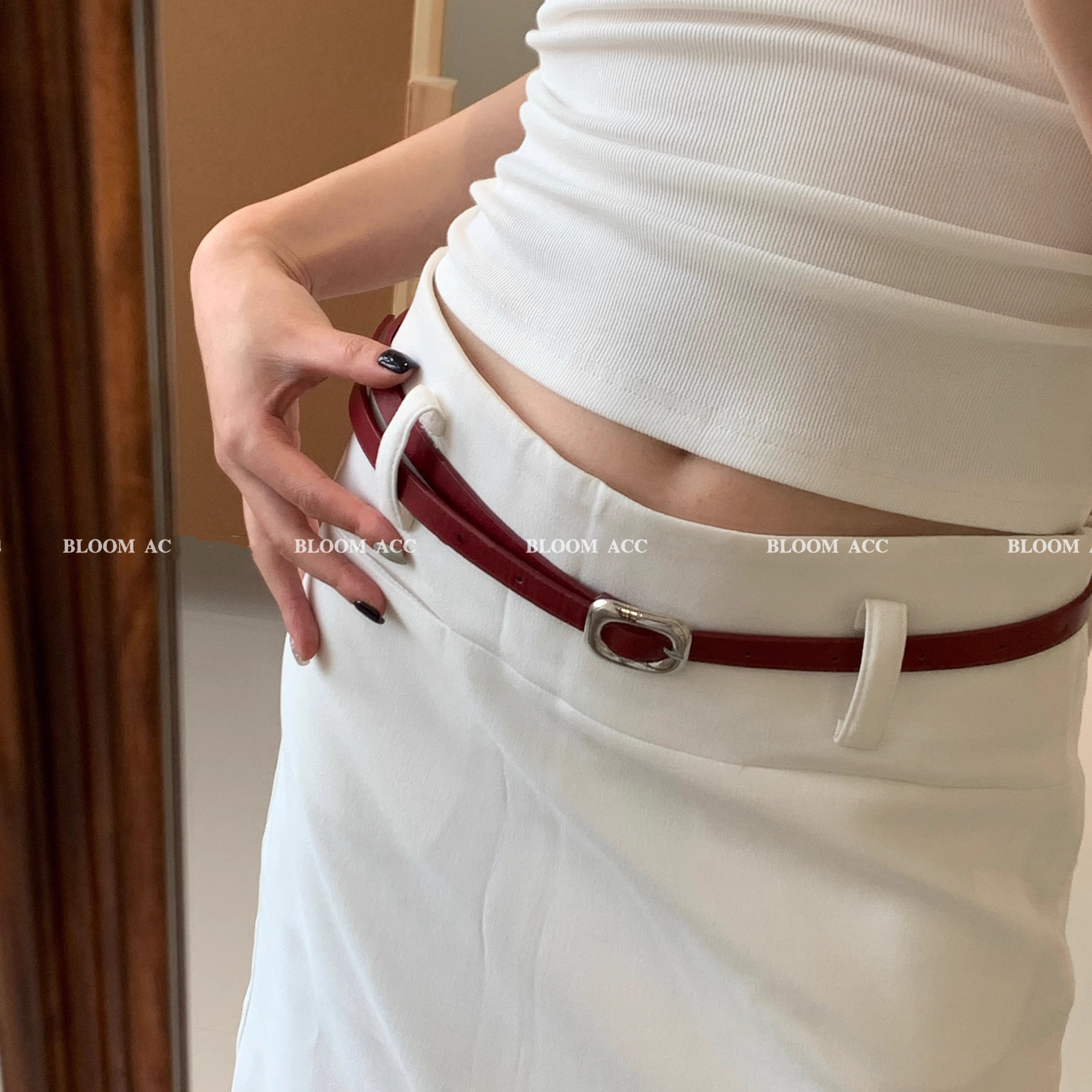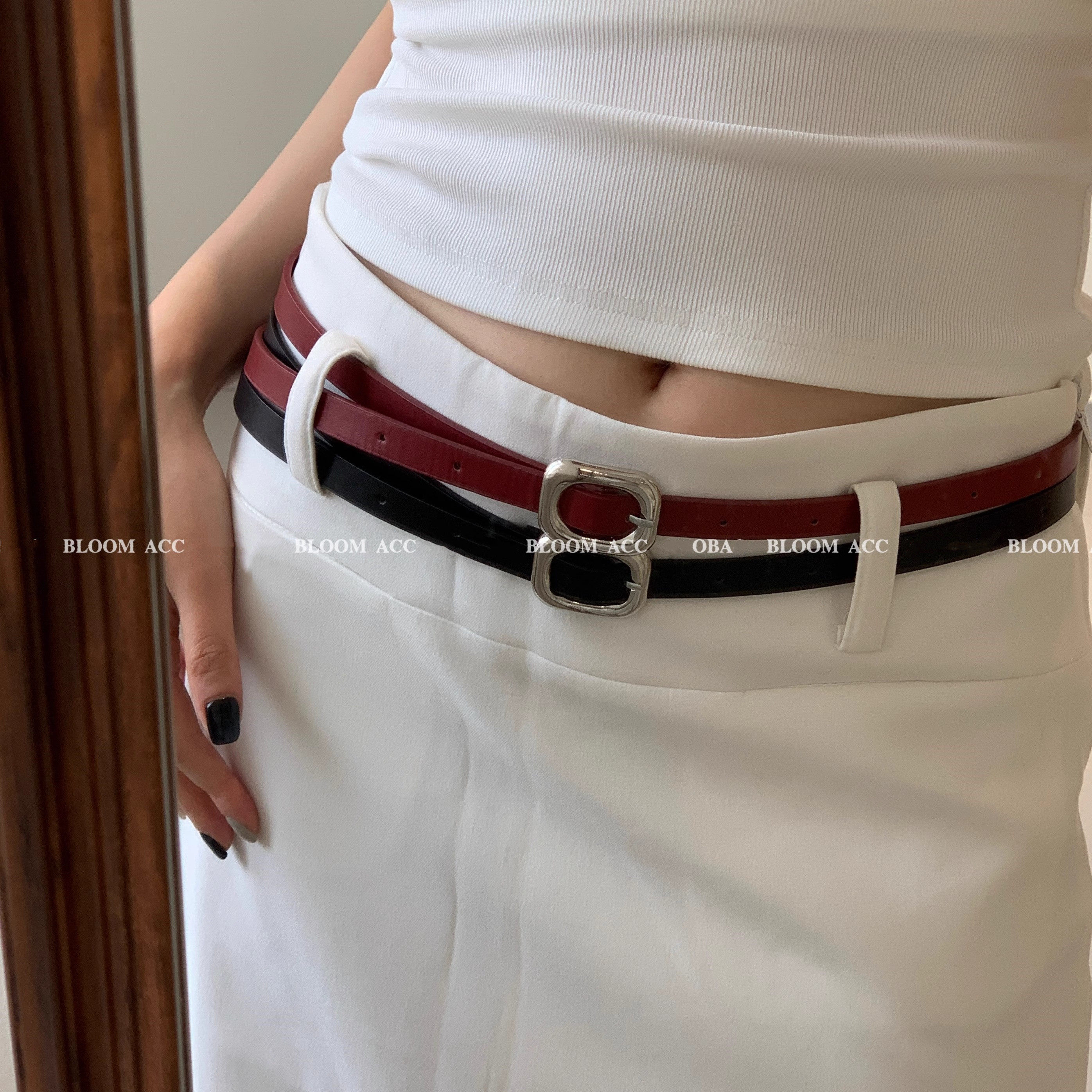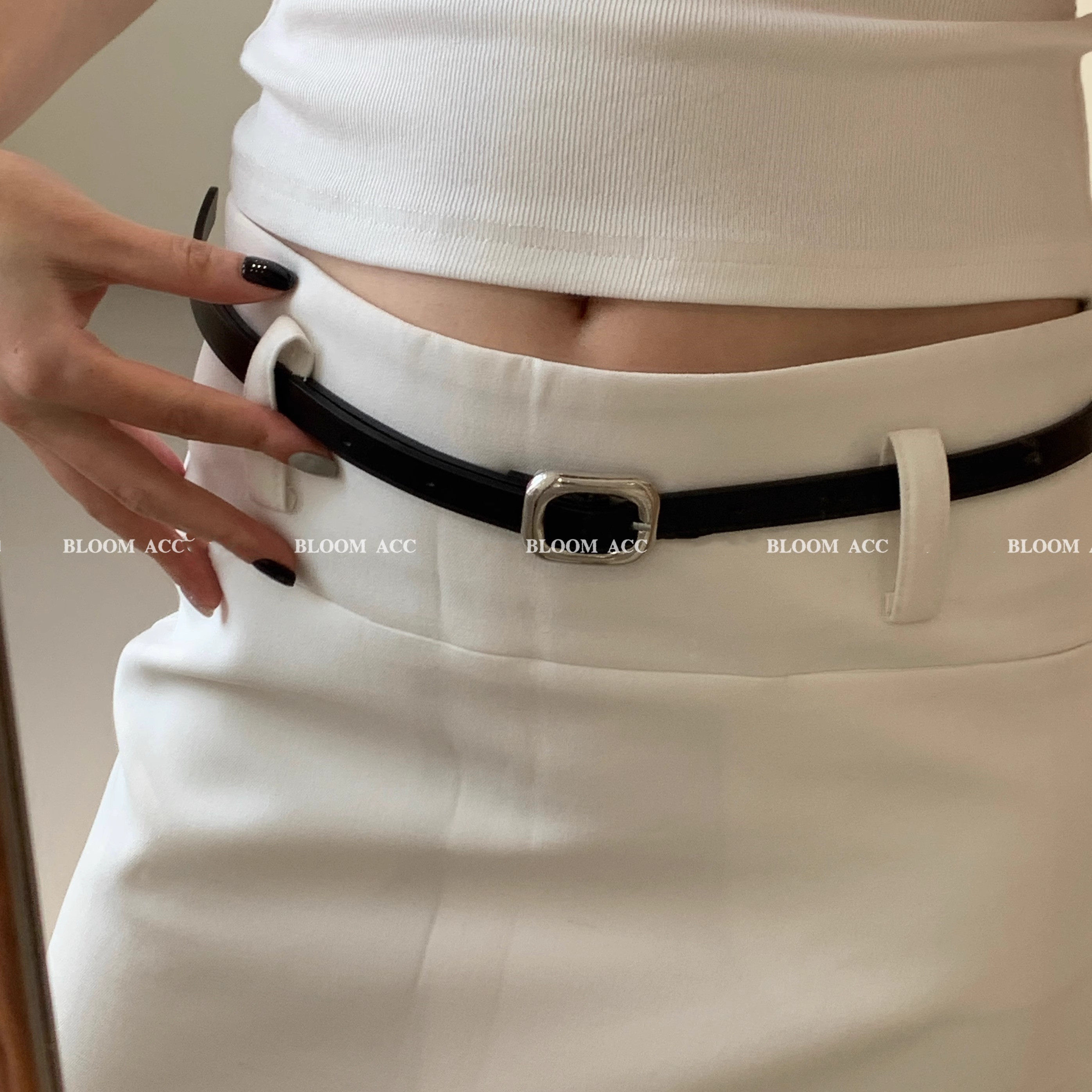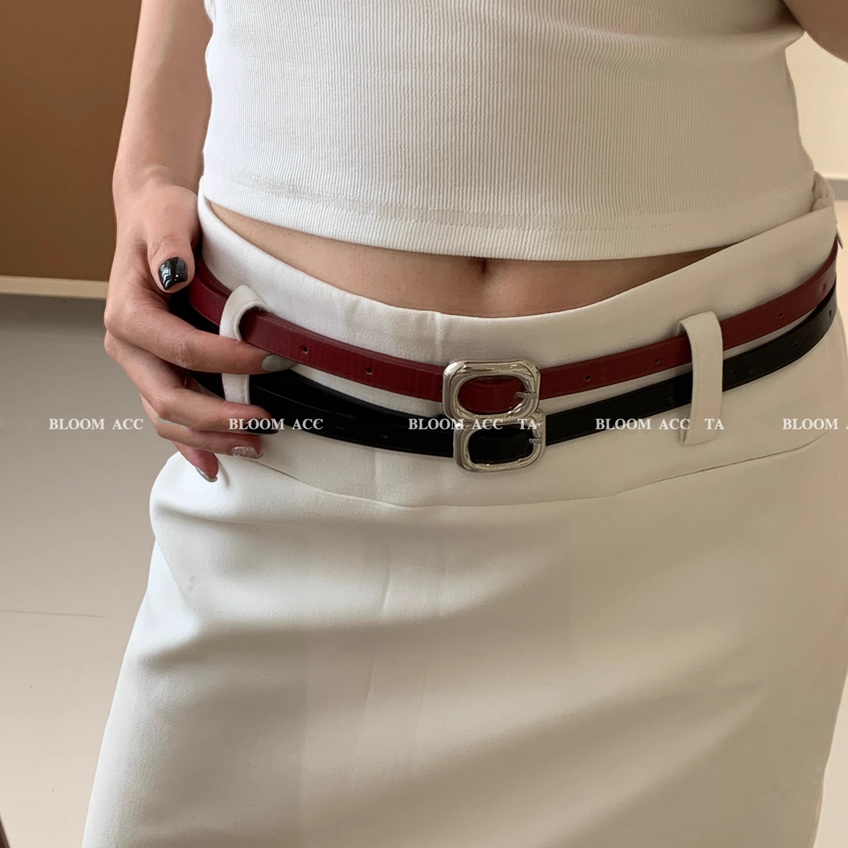 精致细腰带简约复古方形针小皮带百搭高级搭配西装针女士腰带