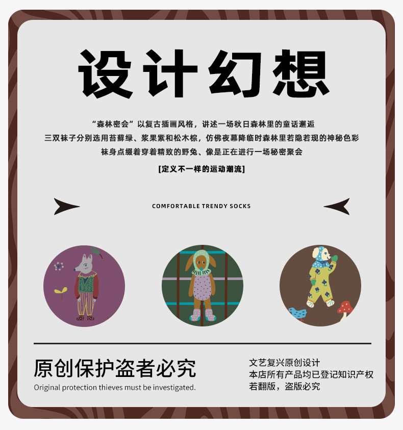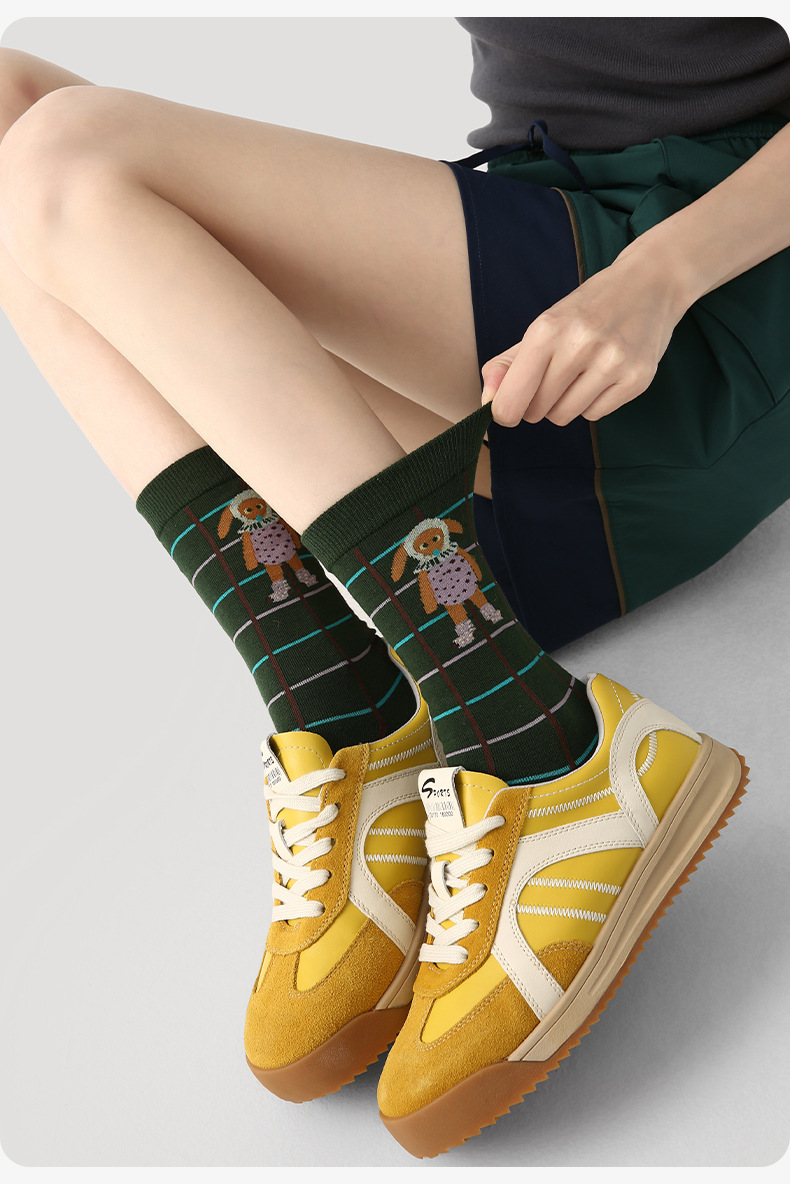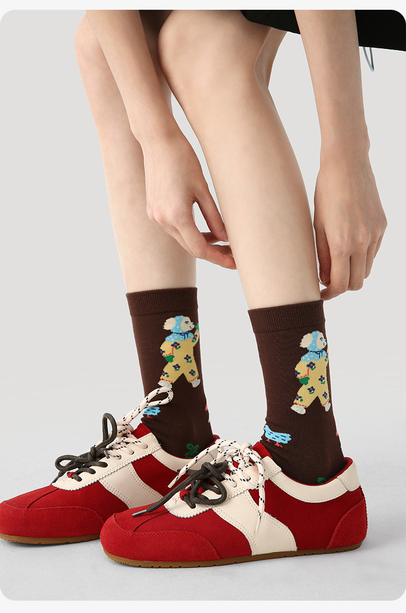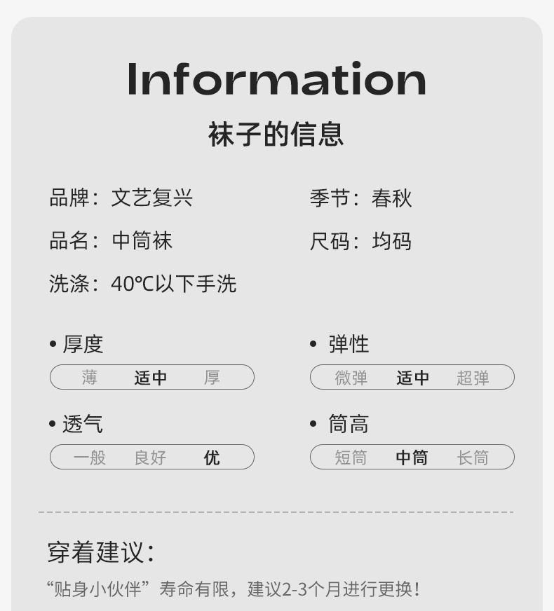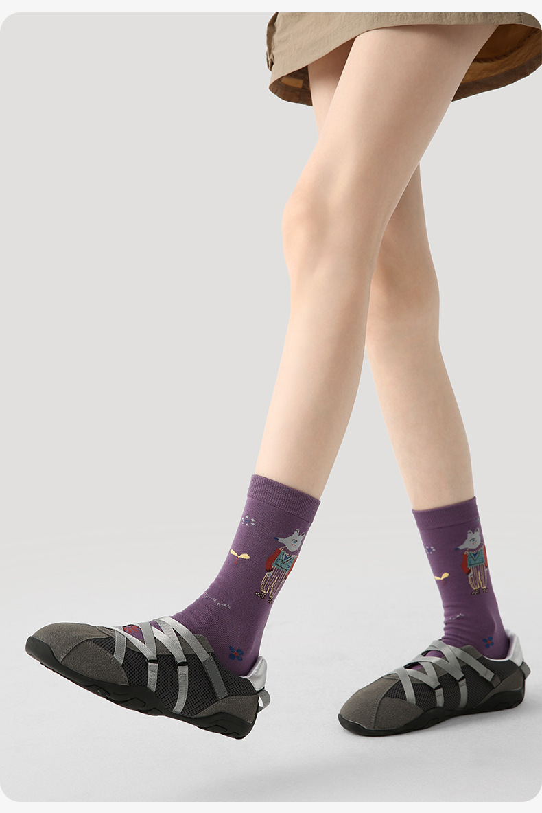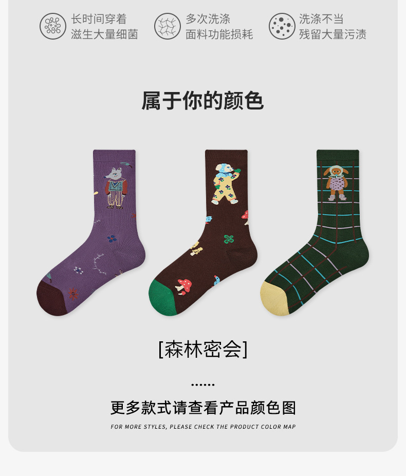 Renaissance袜子女ins潮秋冬新款精梳棉卡通动物条纹无骨中筒女袜