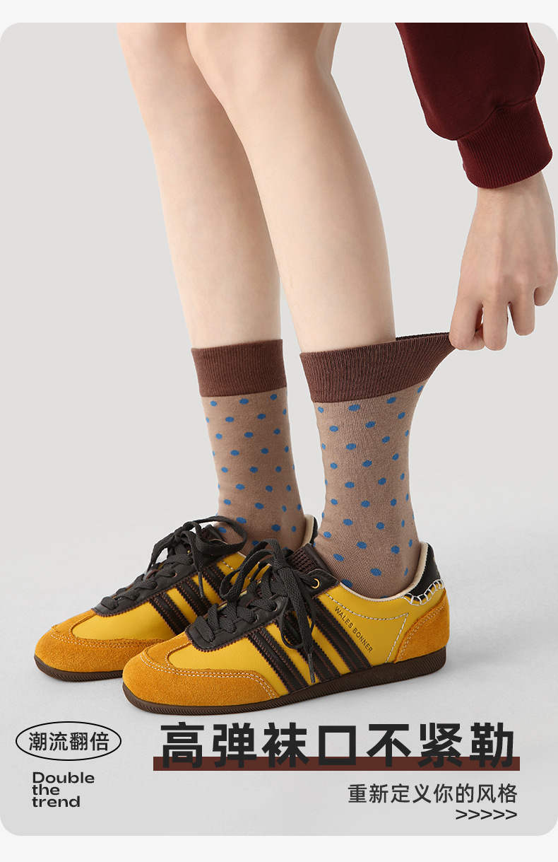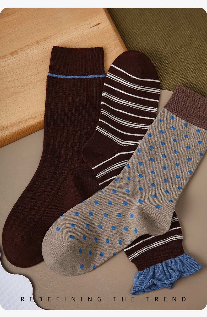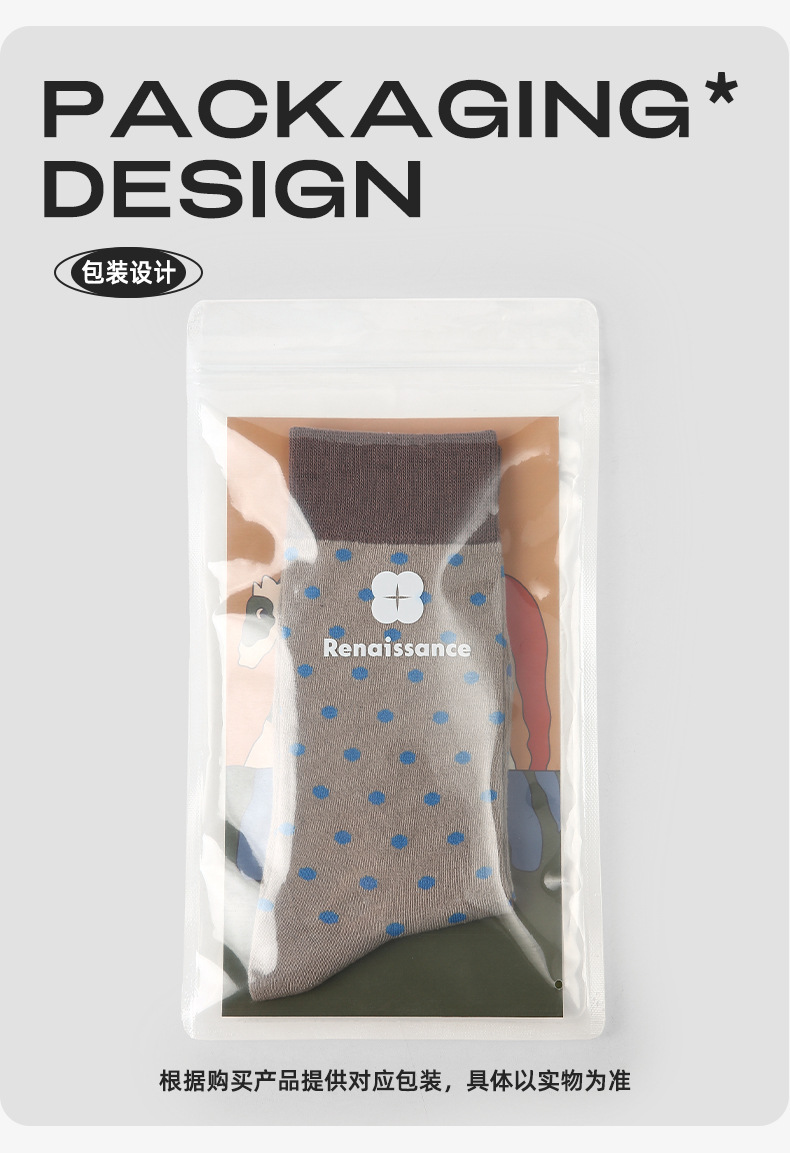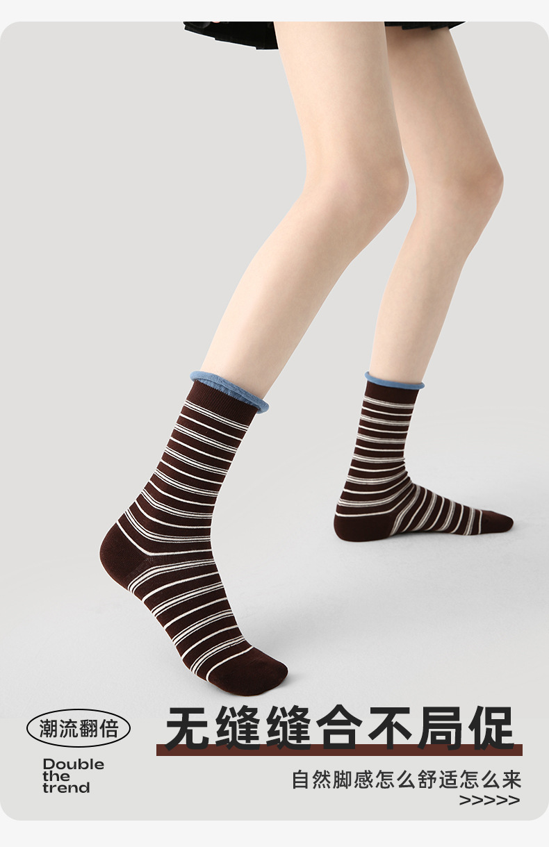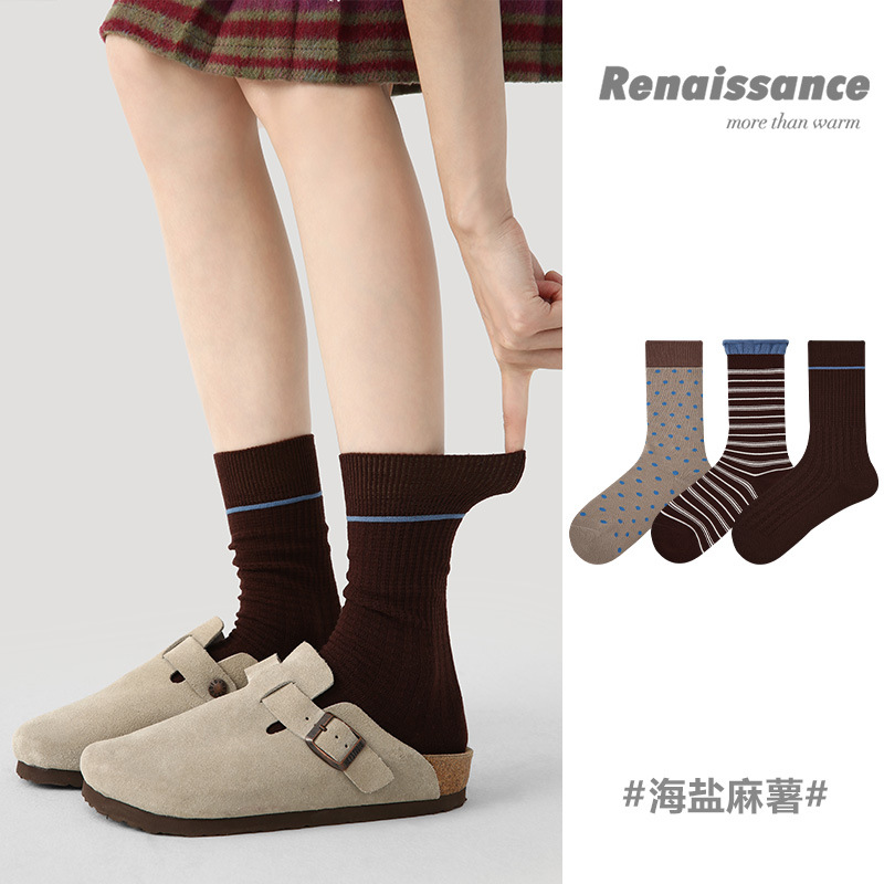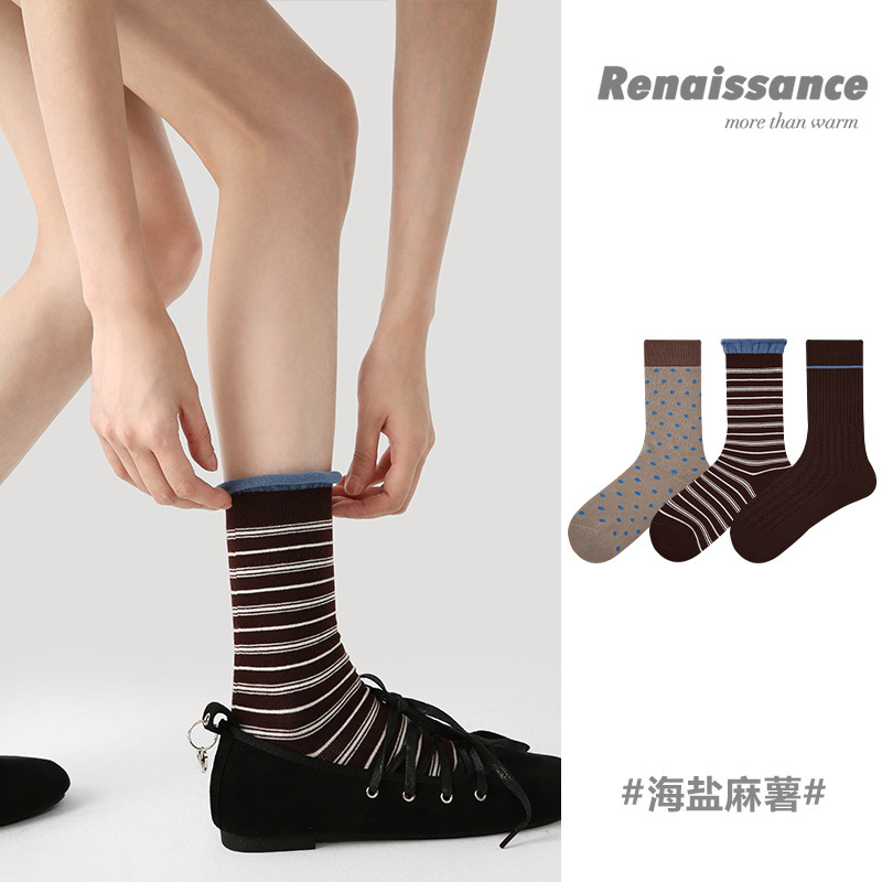 Renaissance原创女袜秋冬新款拼色条纹花边公主袜波点中筒袜子女