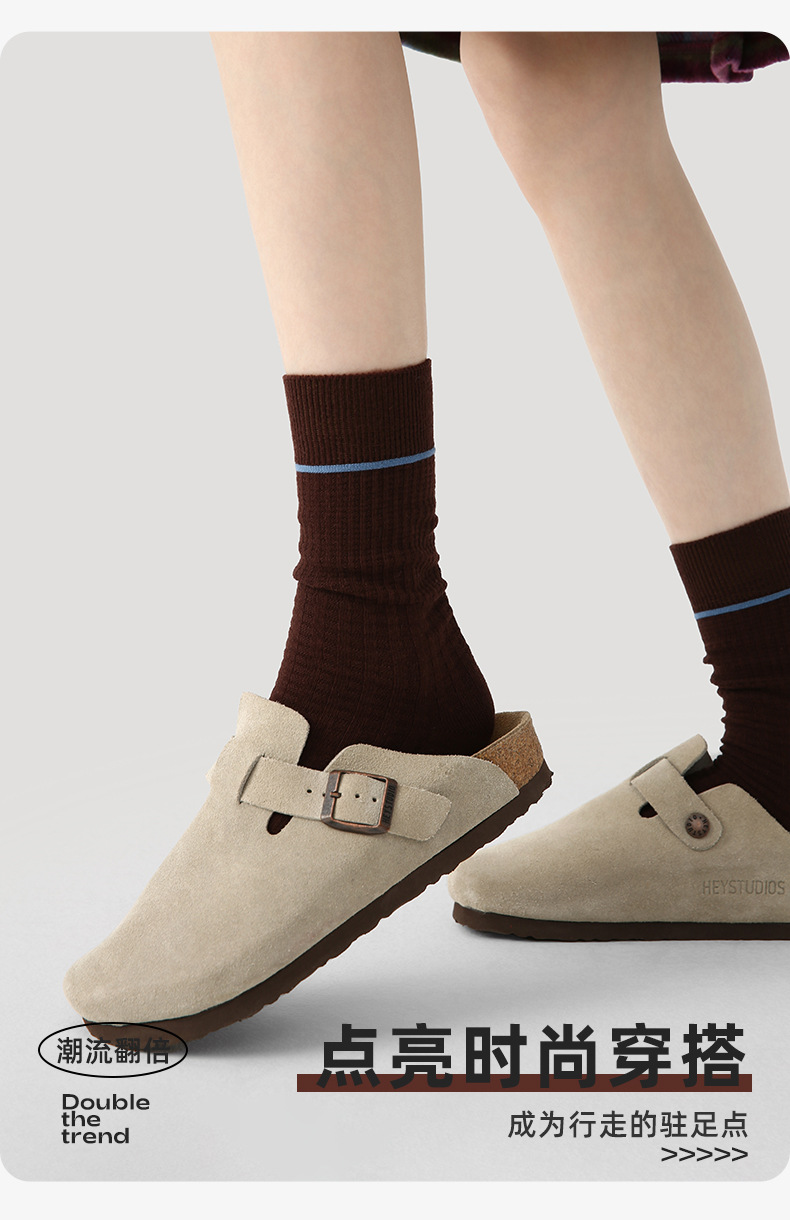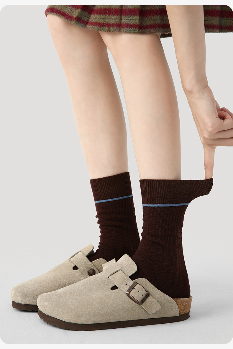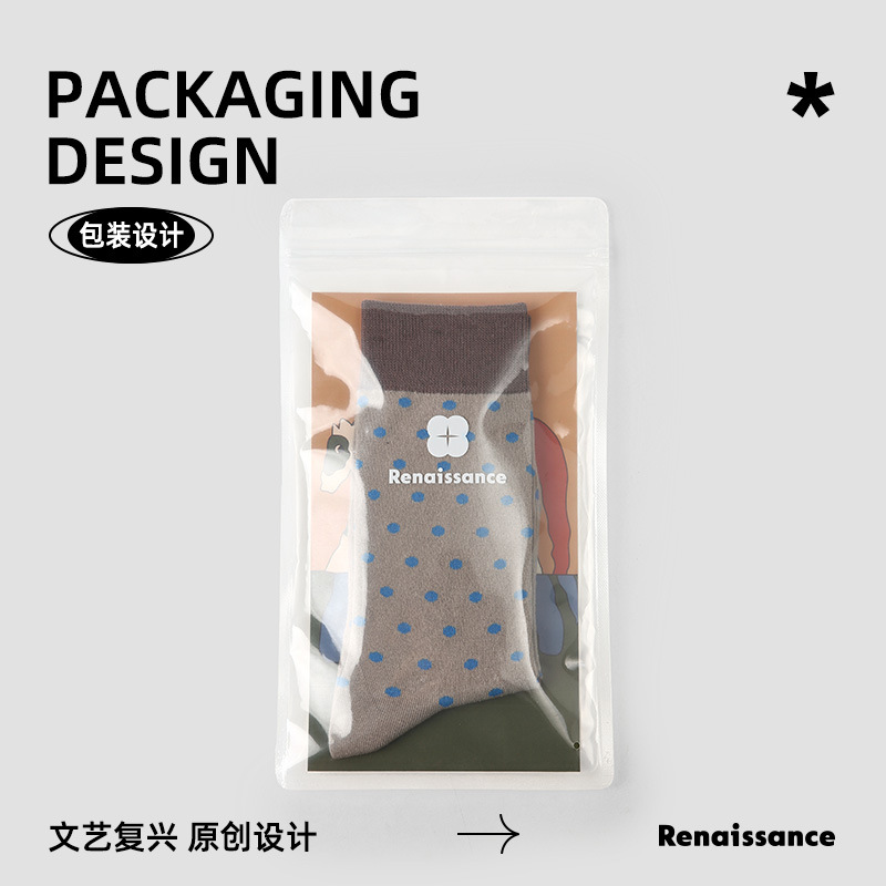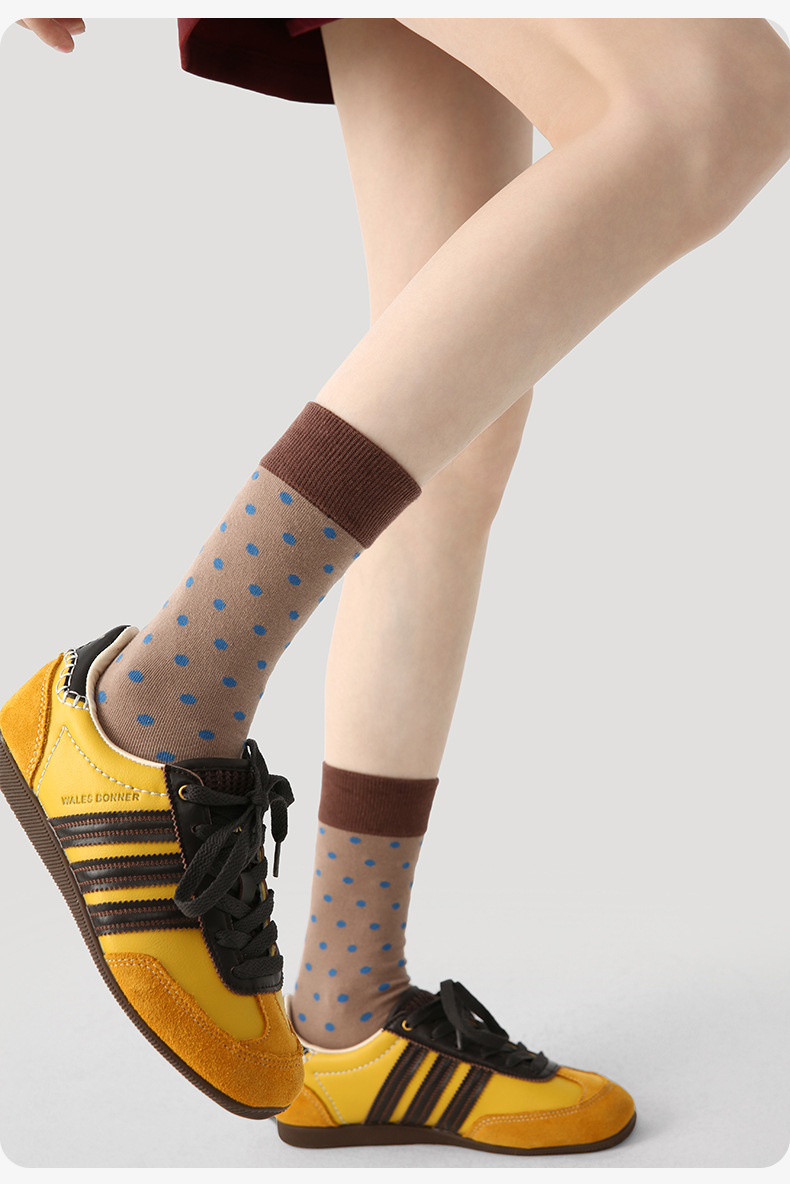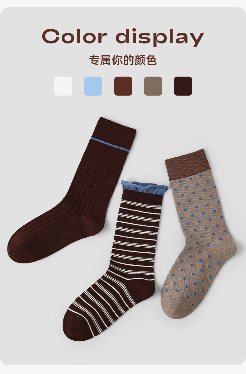 Renaissance原创女袜秋冬新款拼色条纹花边公主袜波点中筒袜子女