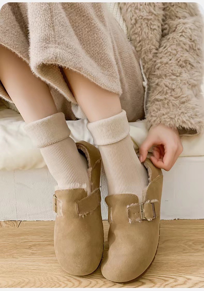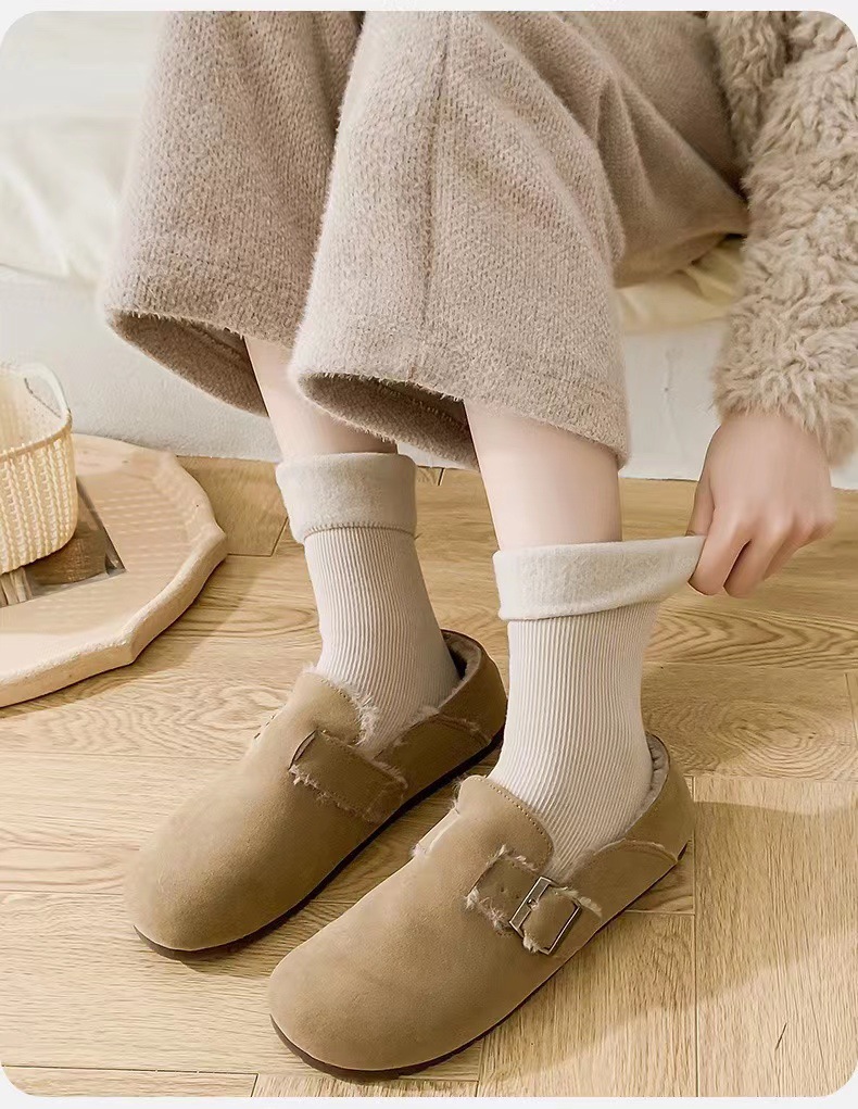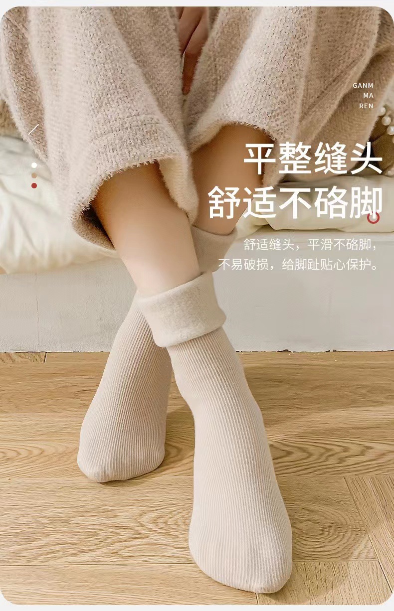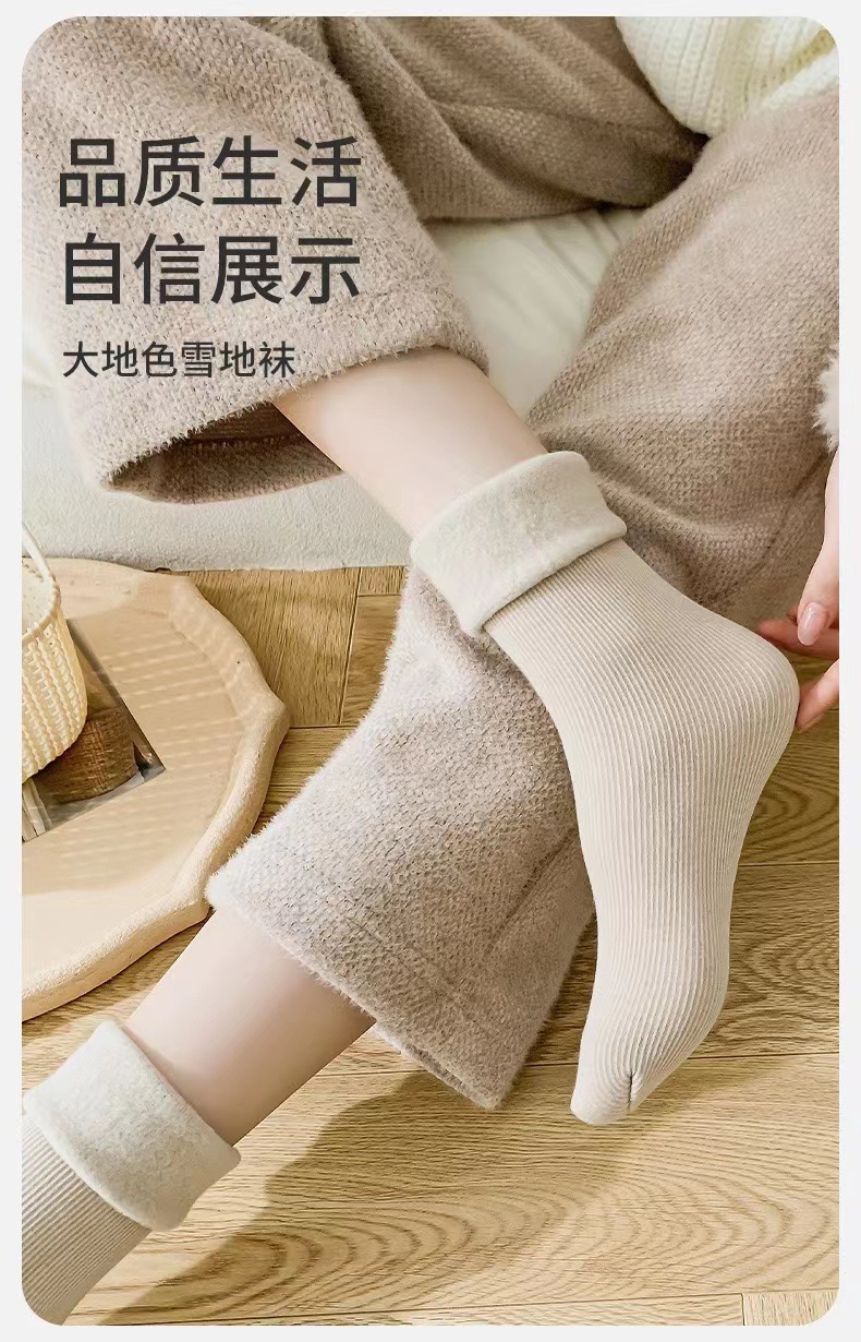 袜子女冬季中筒袜加绒加厚款直筒袜保暖月子袜居家地板袜雪地袜女