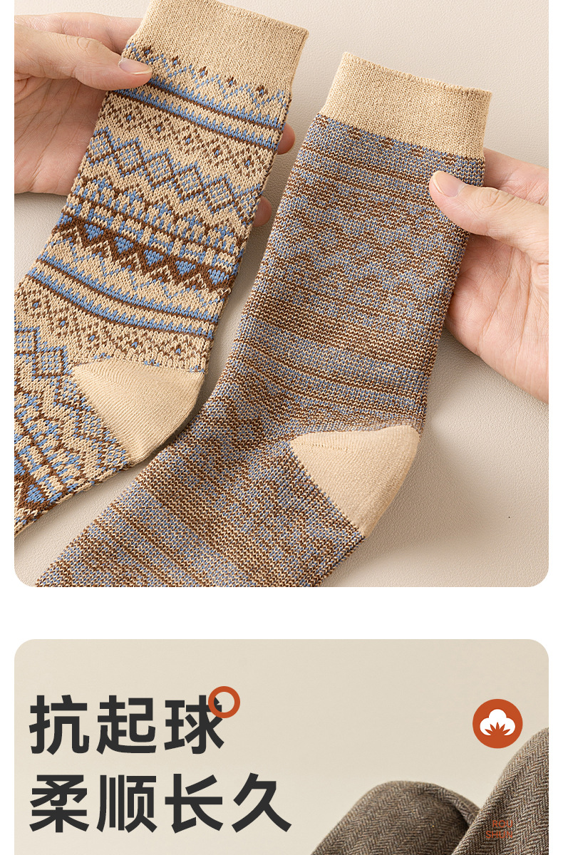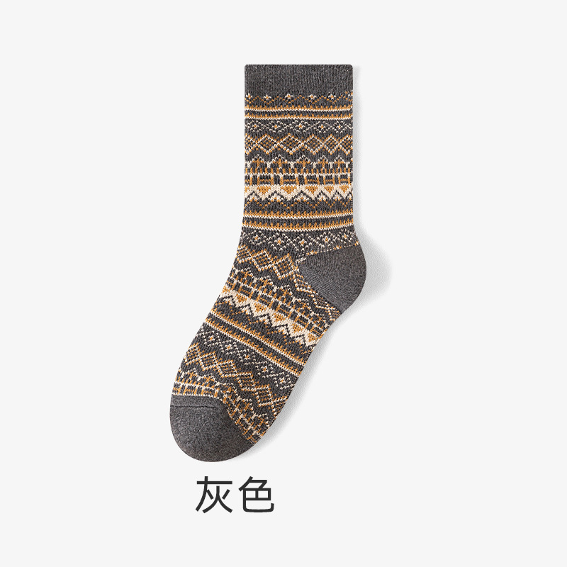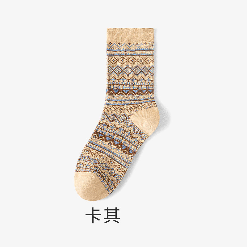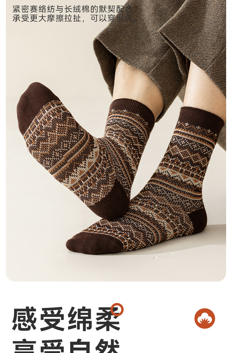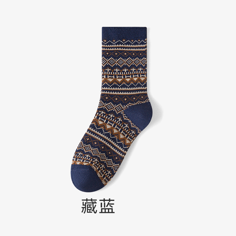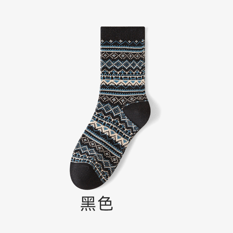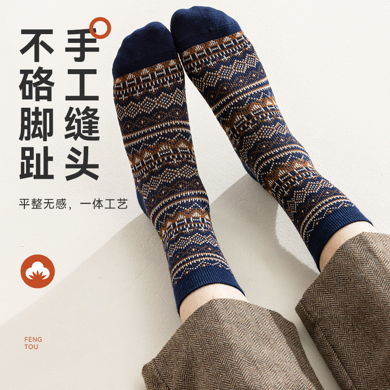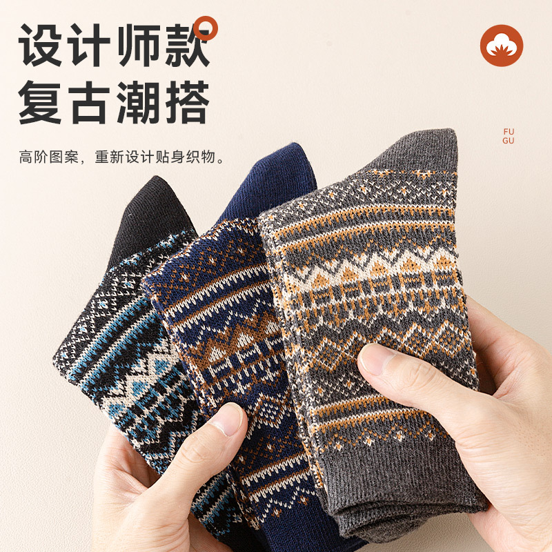复古民族风袜子男款秋冬吸汗中筒袜日系潮流双针双路长绒棉袜批发