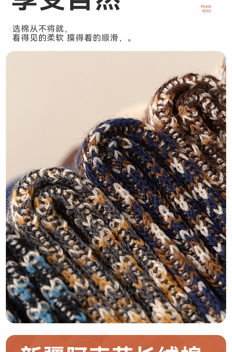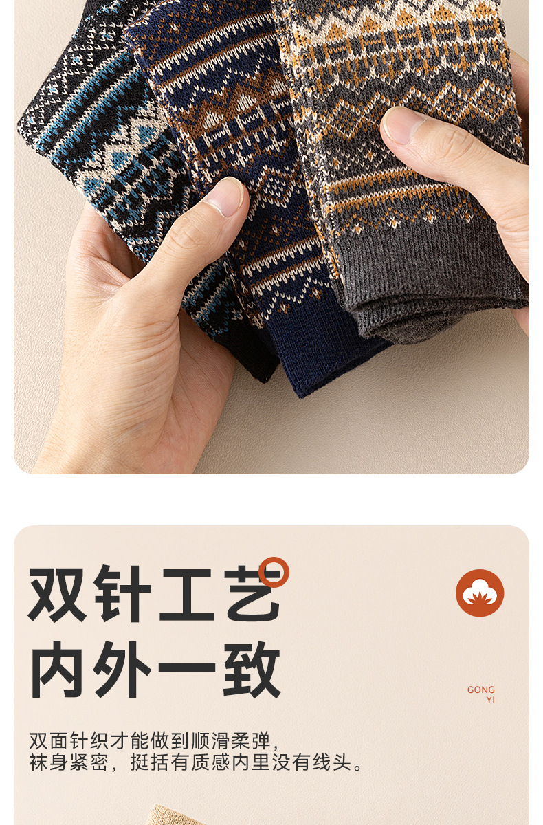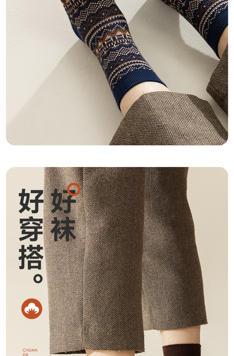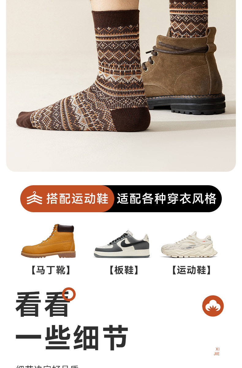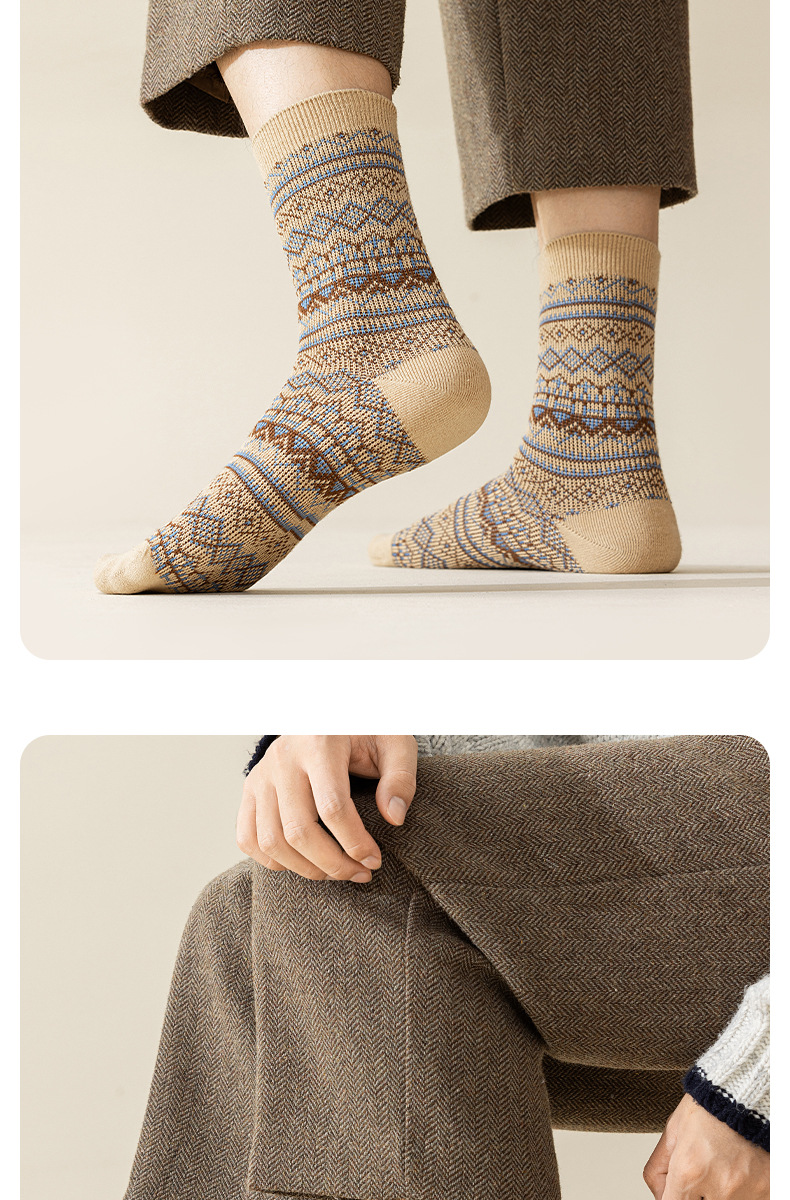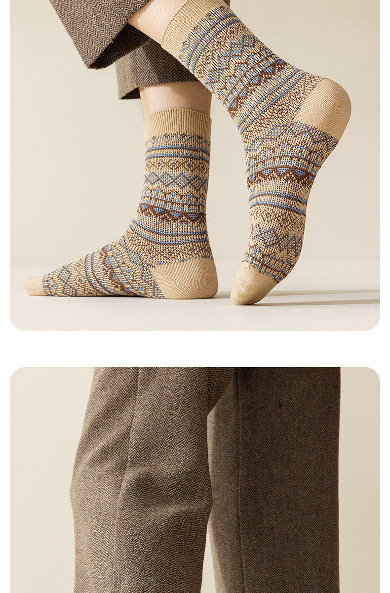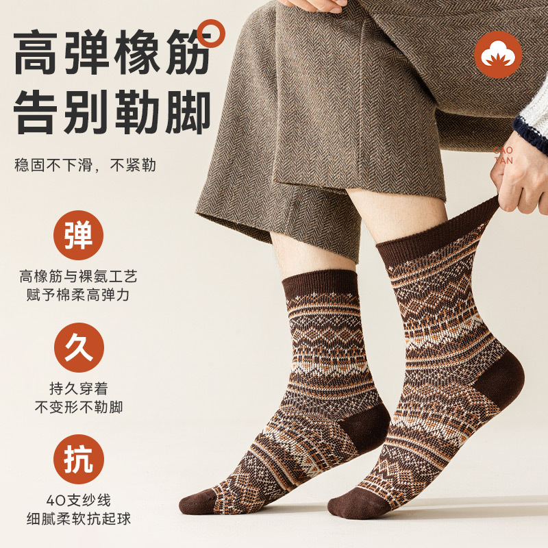 复古民族风袜子男款秋冬吸汗中筒袜日系潮流双针双路长绒棉袜批发