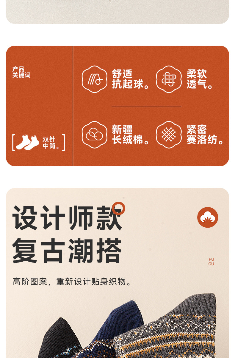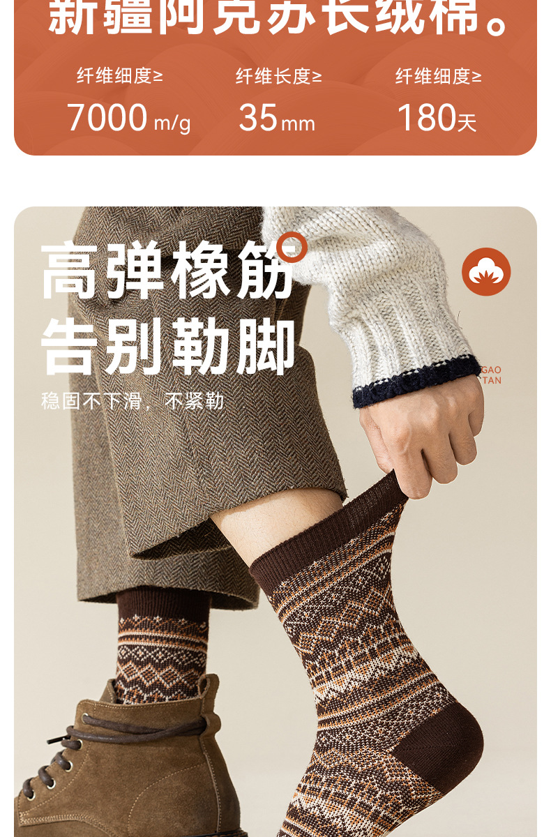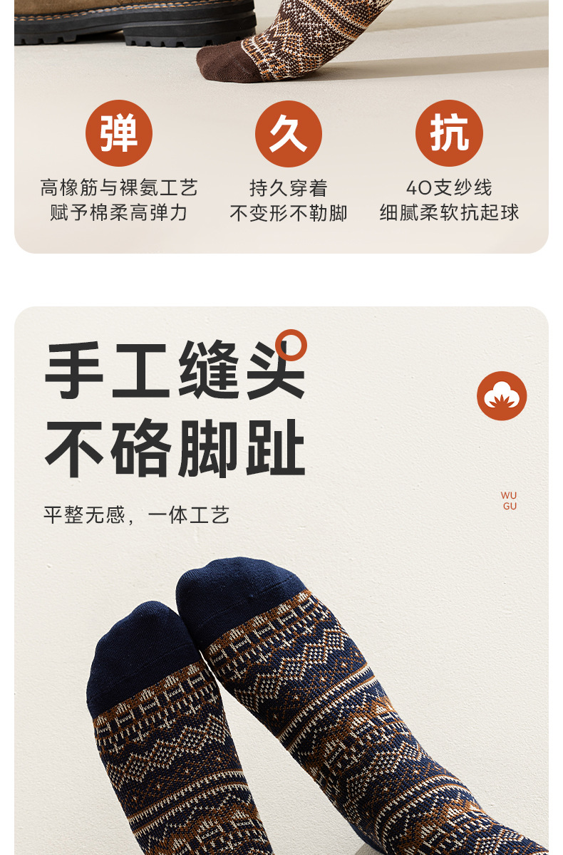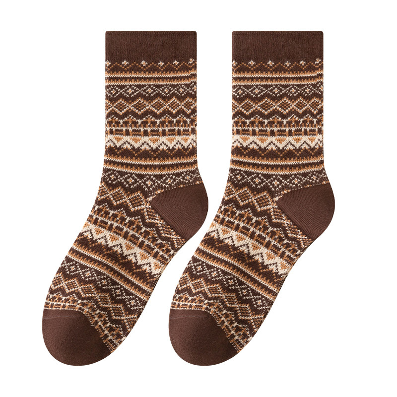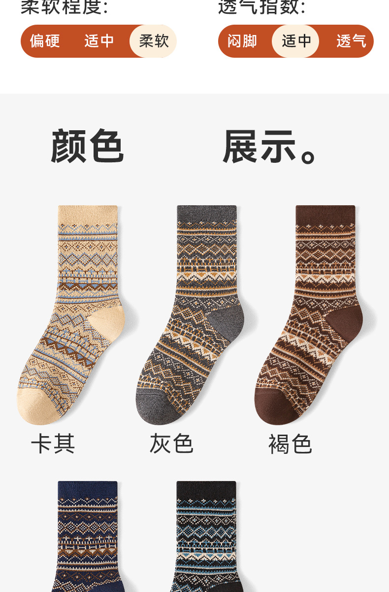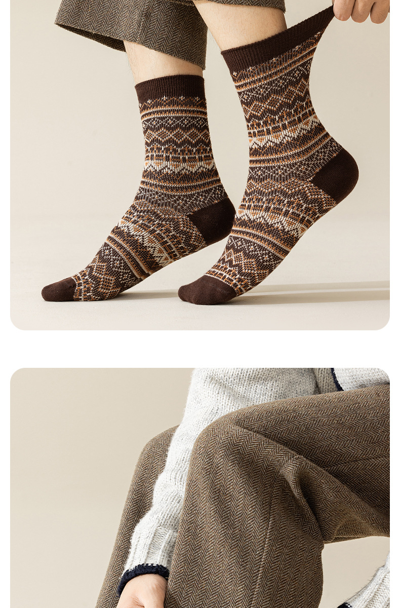 复古民族风袜子男款秋冬吸汗中筒袜日系潮流双针双路长绒棉袜批发