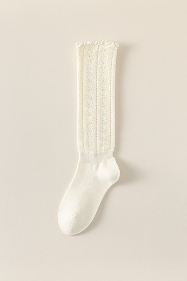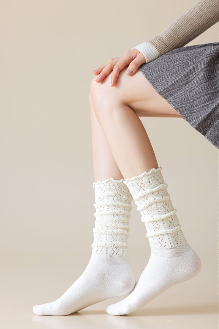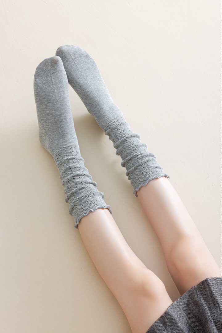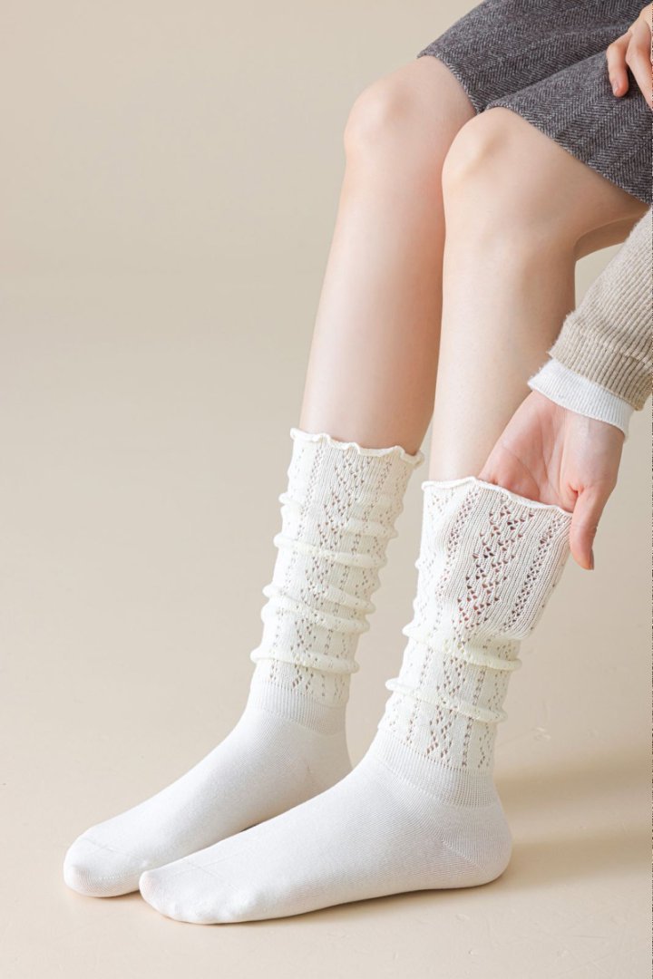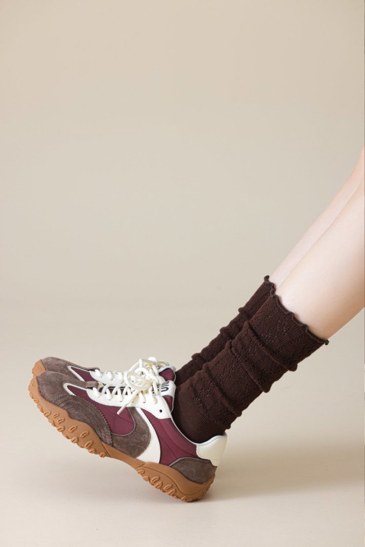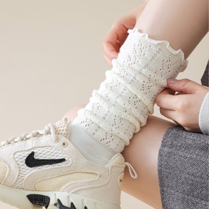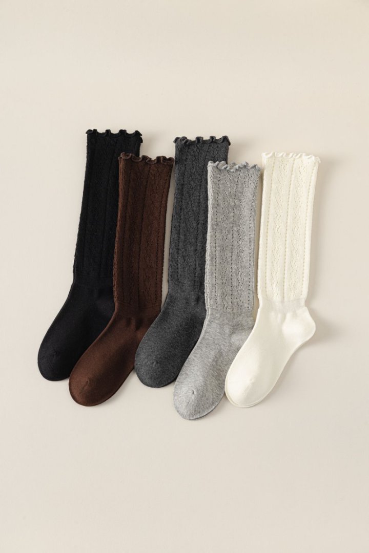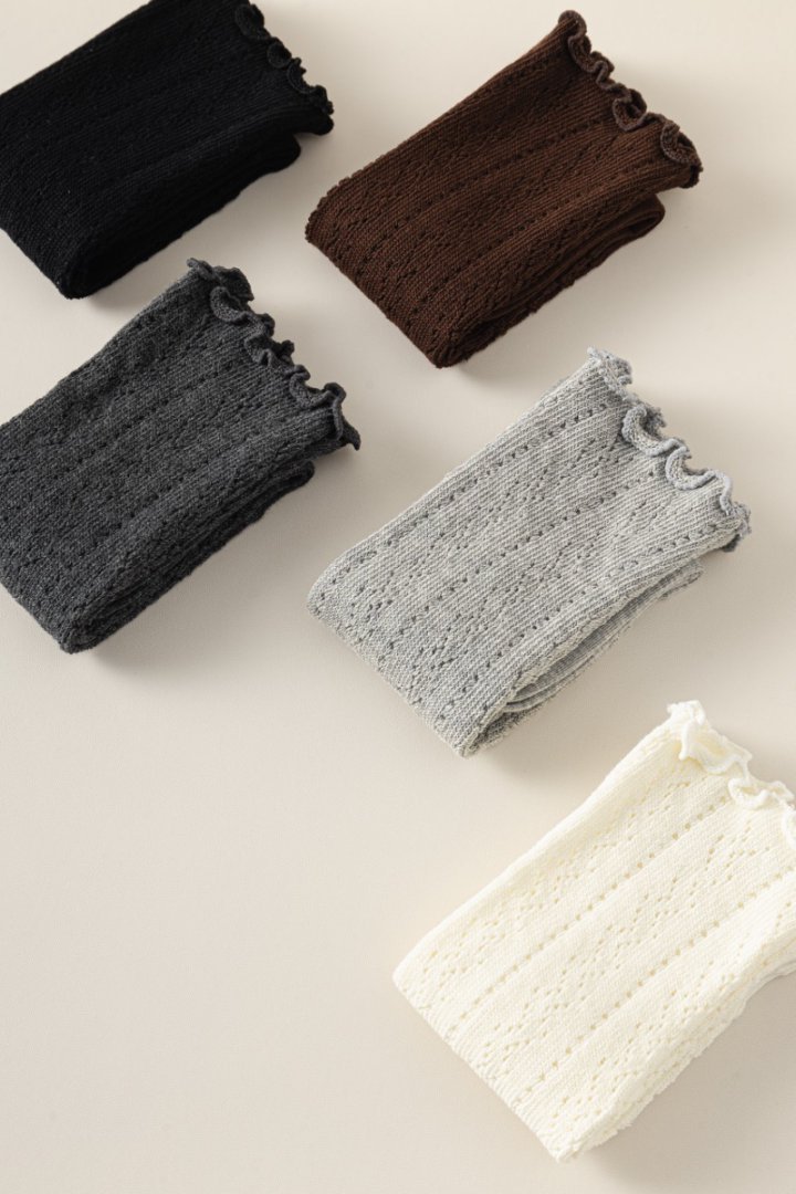 堆堆袜子女秋冬木耳边镂空长筒袜镂空小腿袜配阿甘鞋日系咖色长袜