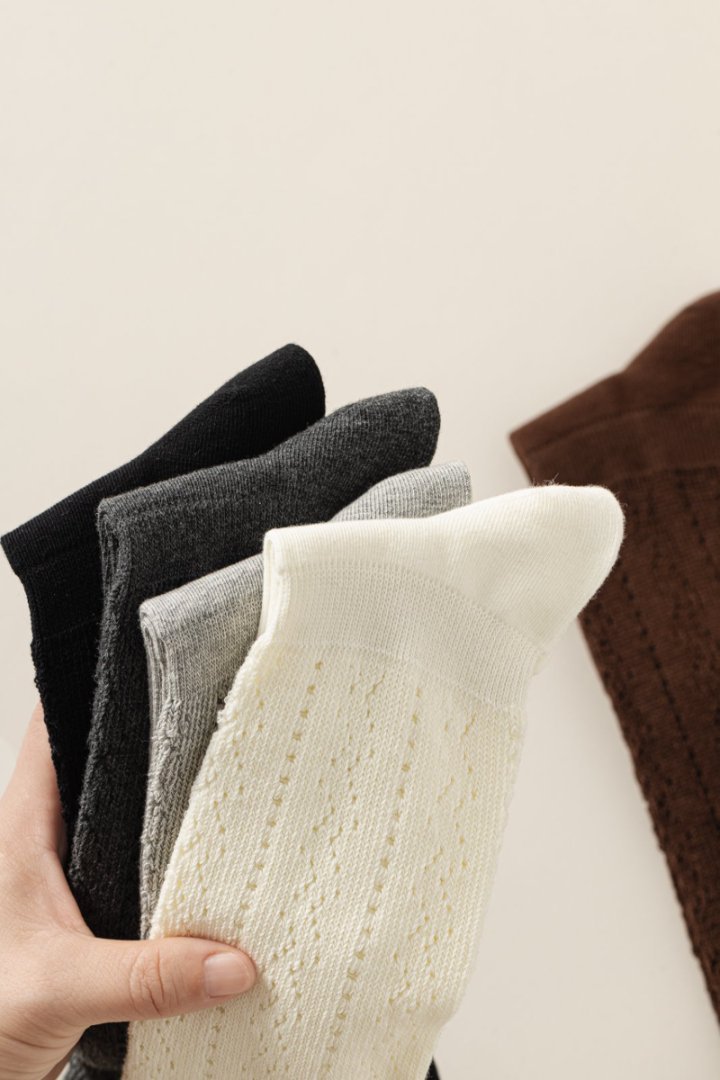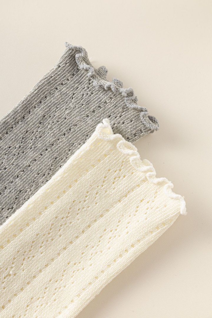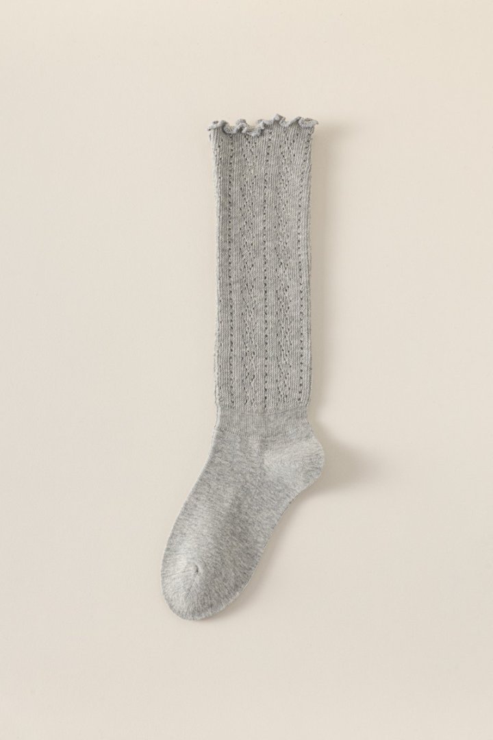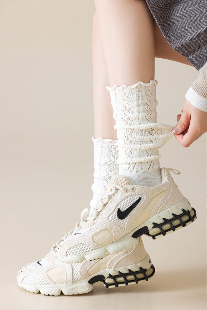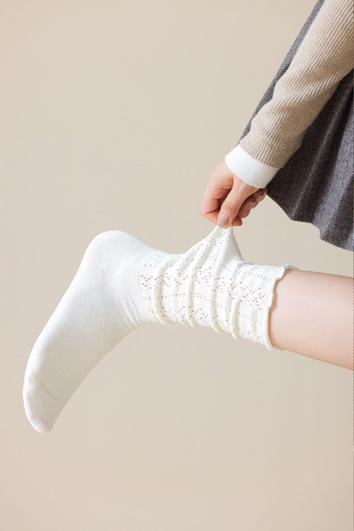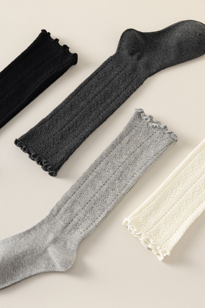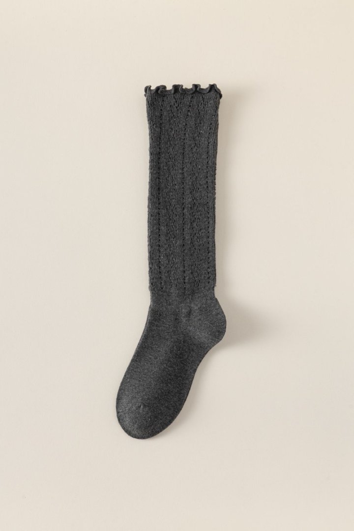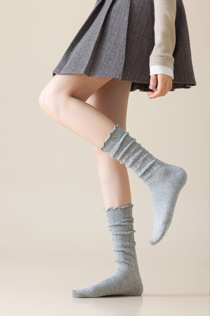 堆堆袜子女秋冬木耳边镂空长筒袜镂空小腿袜配阿甘鞋日系咖色长袜