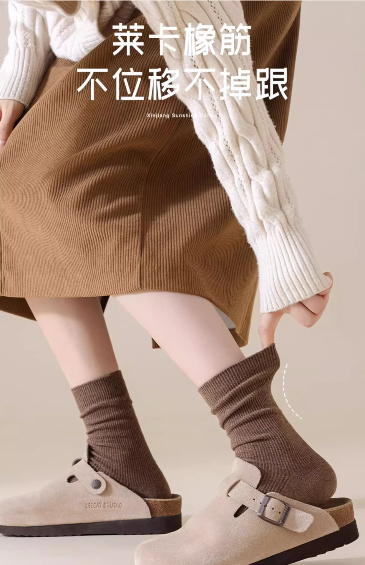 堆堆袜子女纯棉秋冬款中筒美拉德色系双针勃肯鞋长袜诸暨袜业批发
