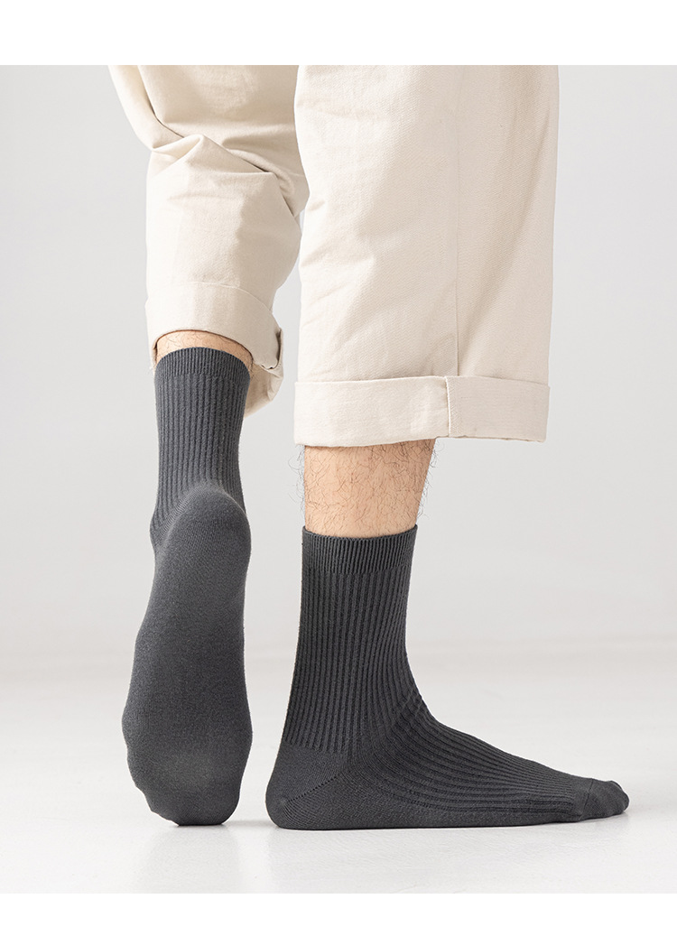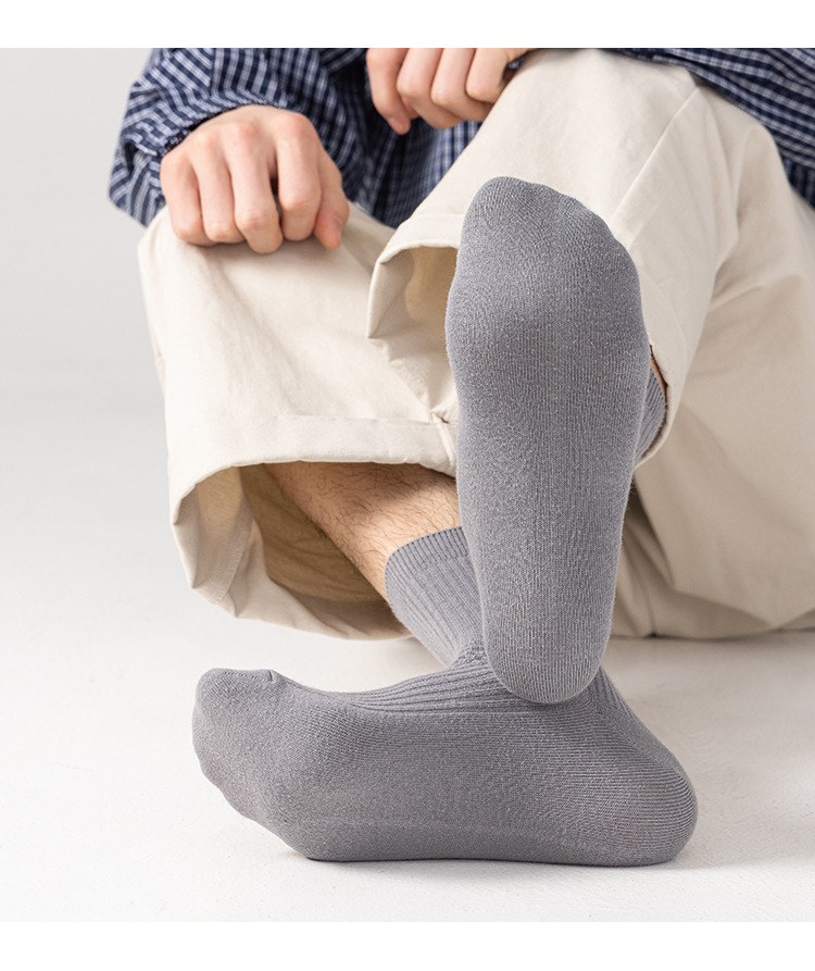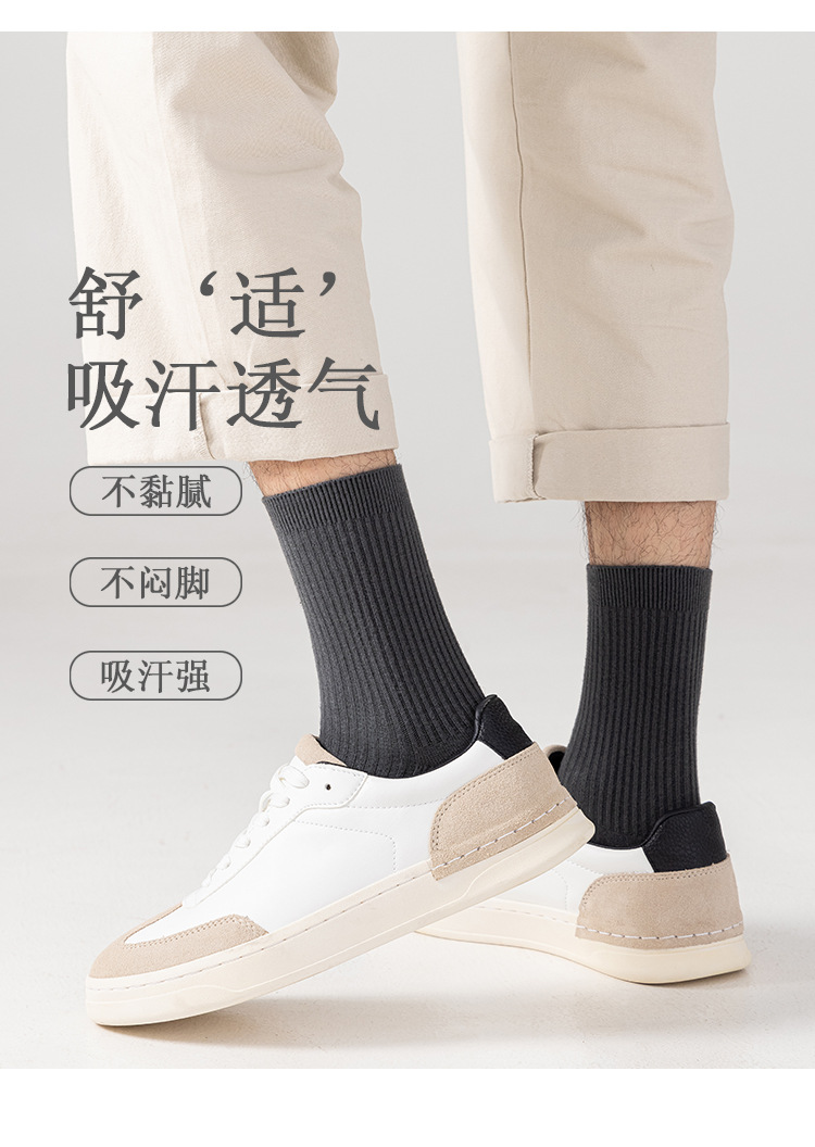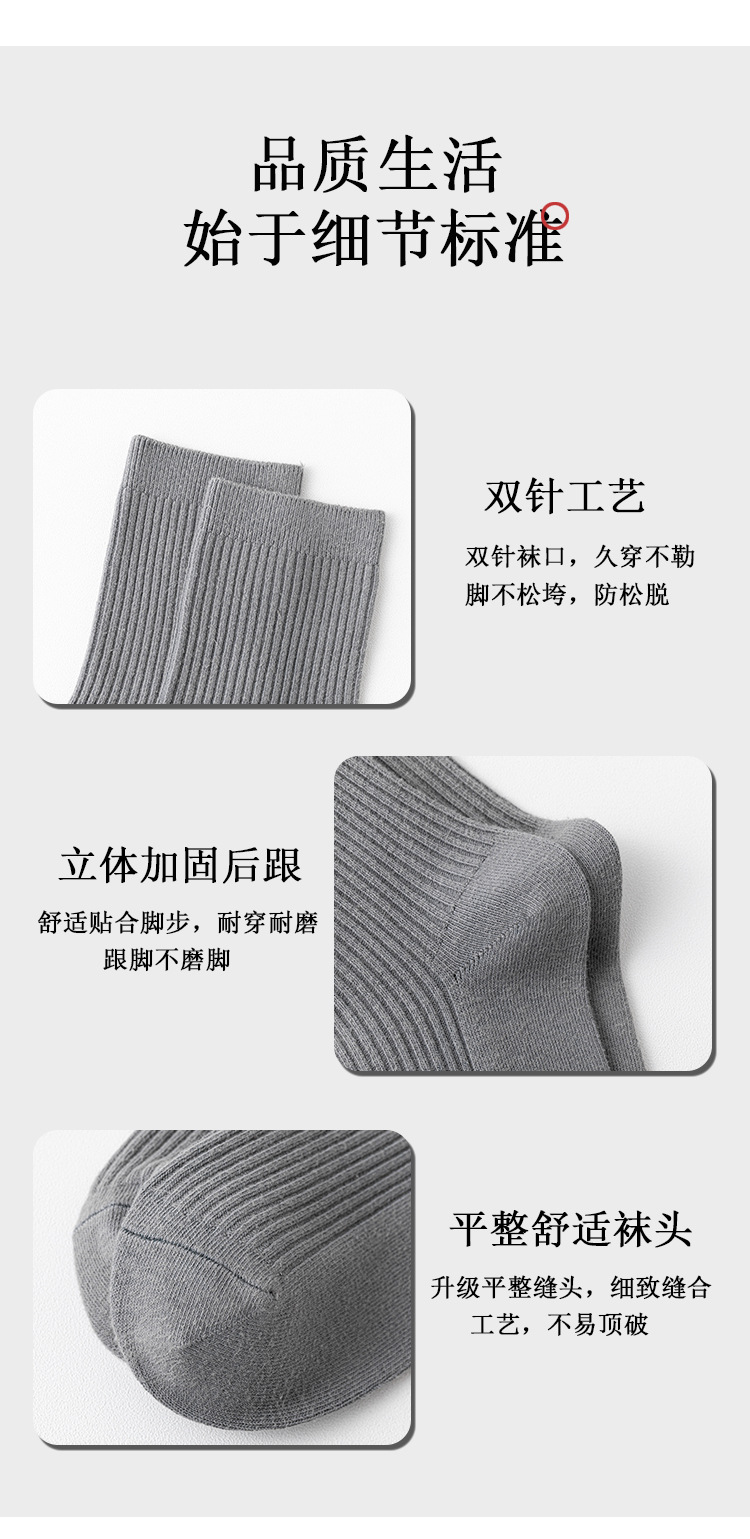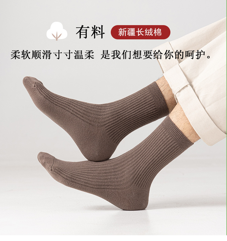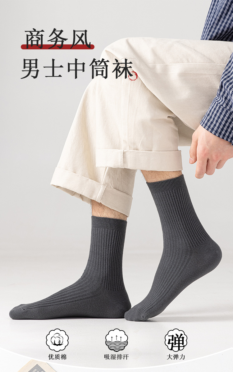 纯棉袜子男士中筒袜春秋双针全棉男袜诸暨棉袜批发袜子男防臭吸汗
