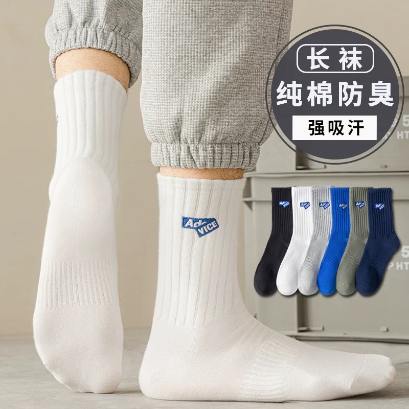 袜子男秋冬长筒袜大码加厚防臭吸汗中筒袜加肥加大棉袜运动袜长筒
