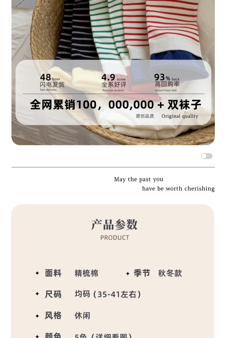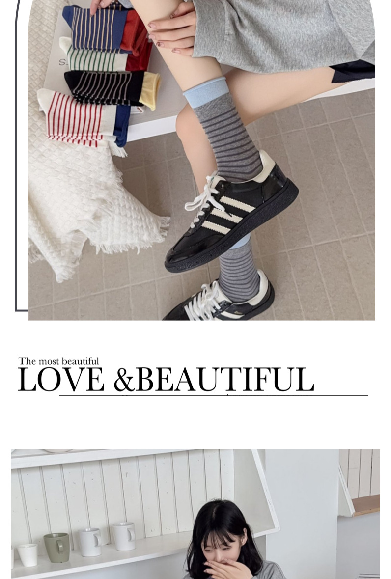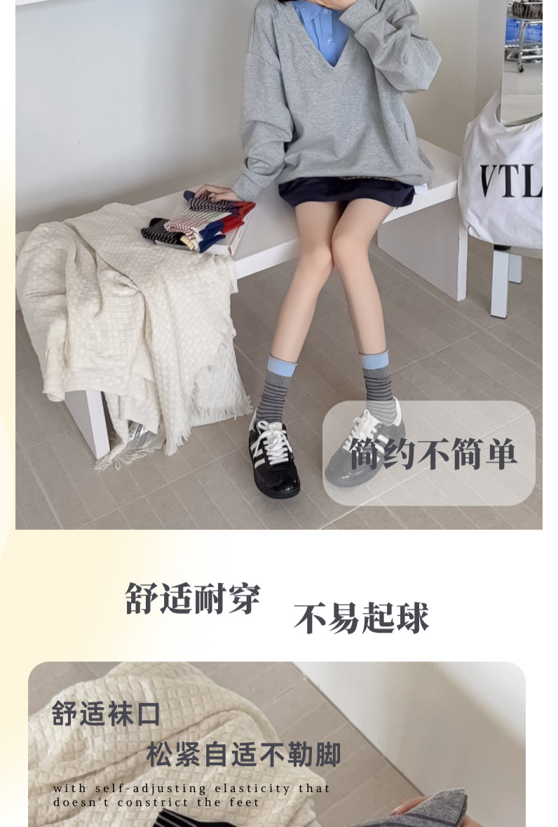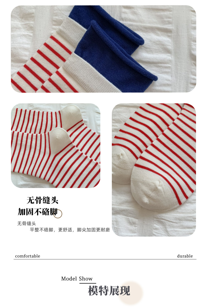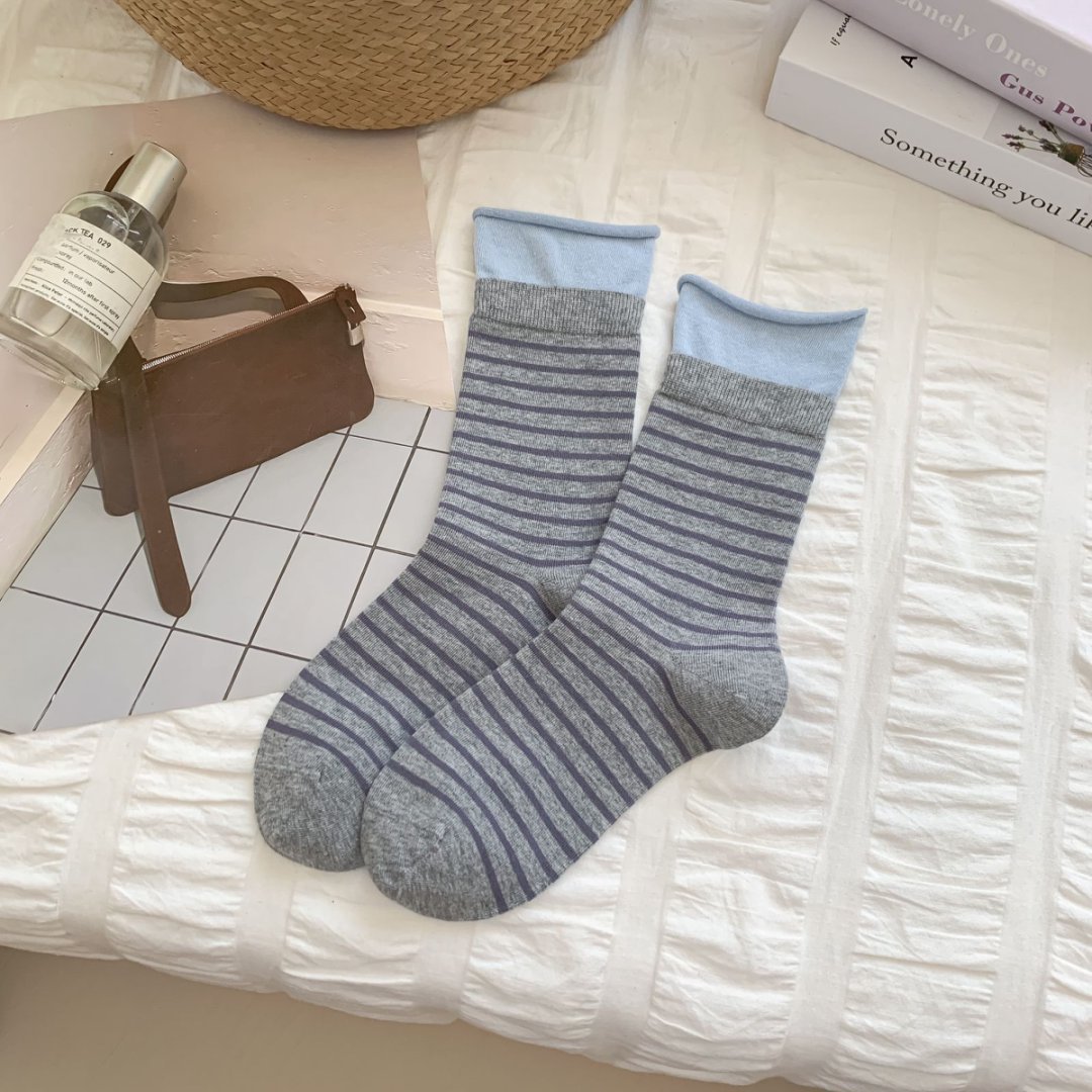 Mekki秋季新款潮流袜双罗口条纹撞色女袜透气精梳棉中筒诸暨袜子