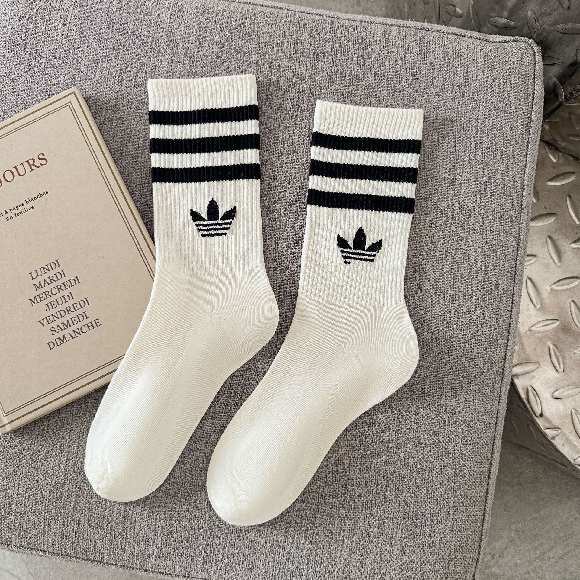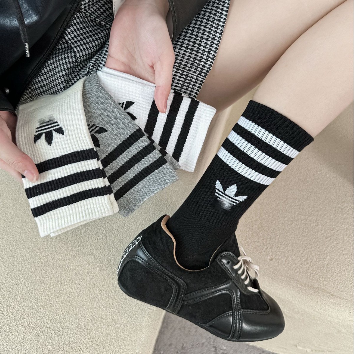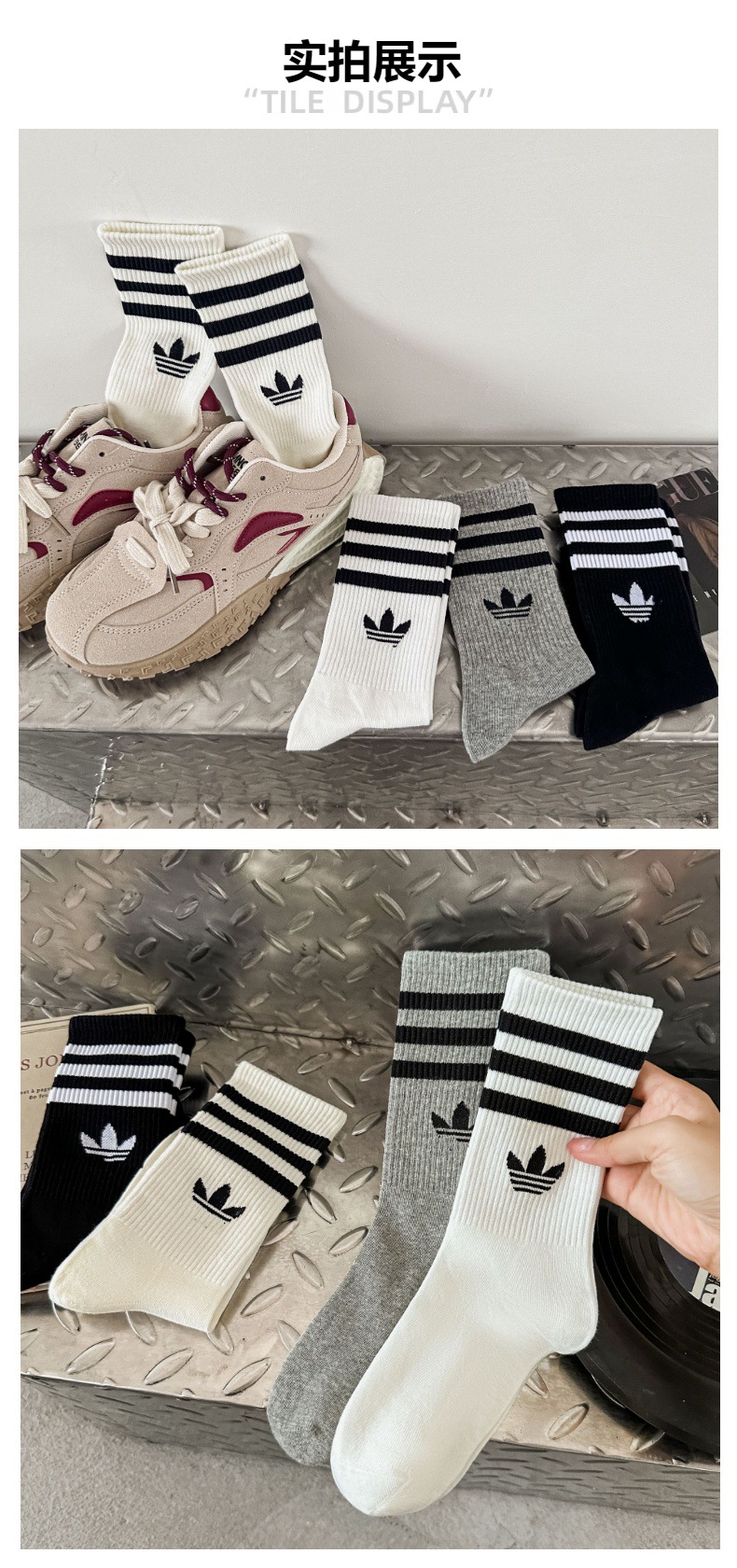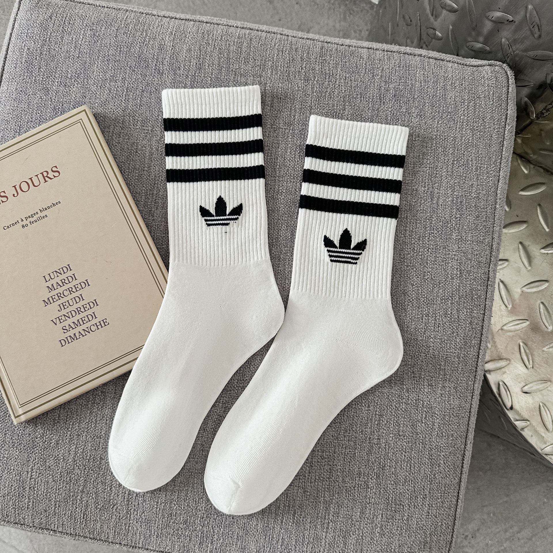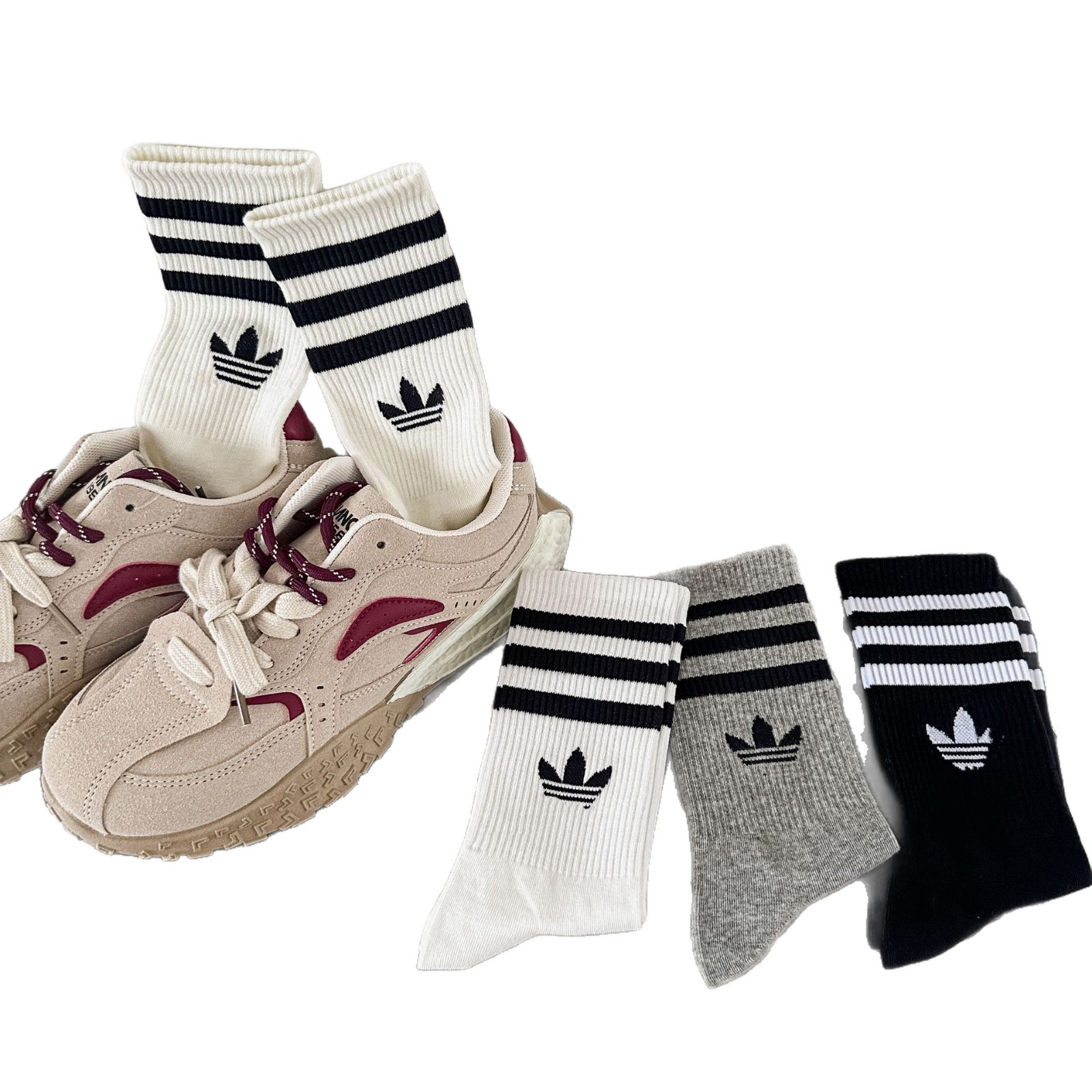 运动袜子男袜女袜秋冬款黑色三道杠中筒潮袜情侣款高筒袜白色棉袜