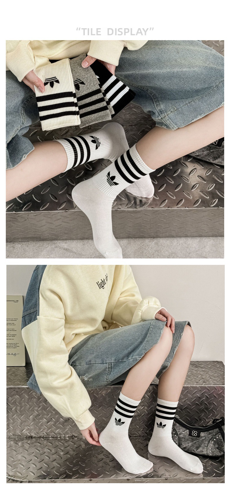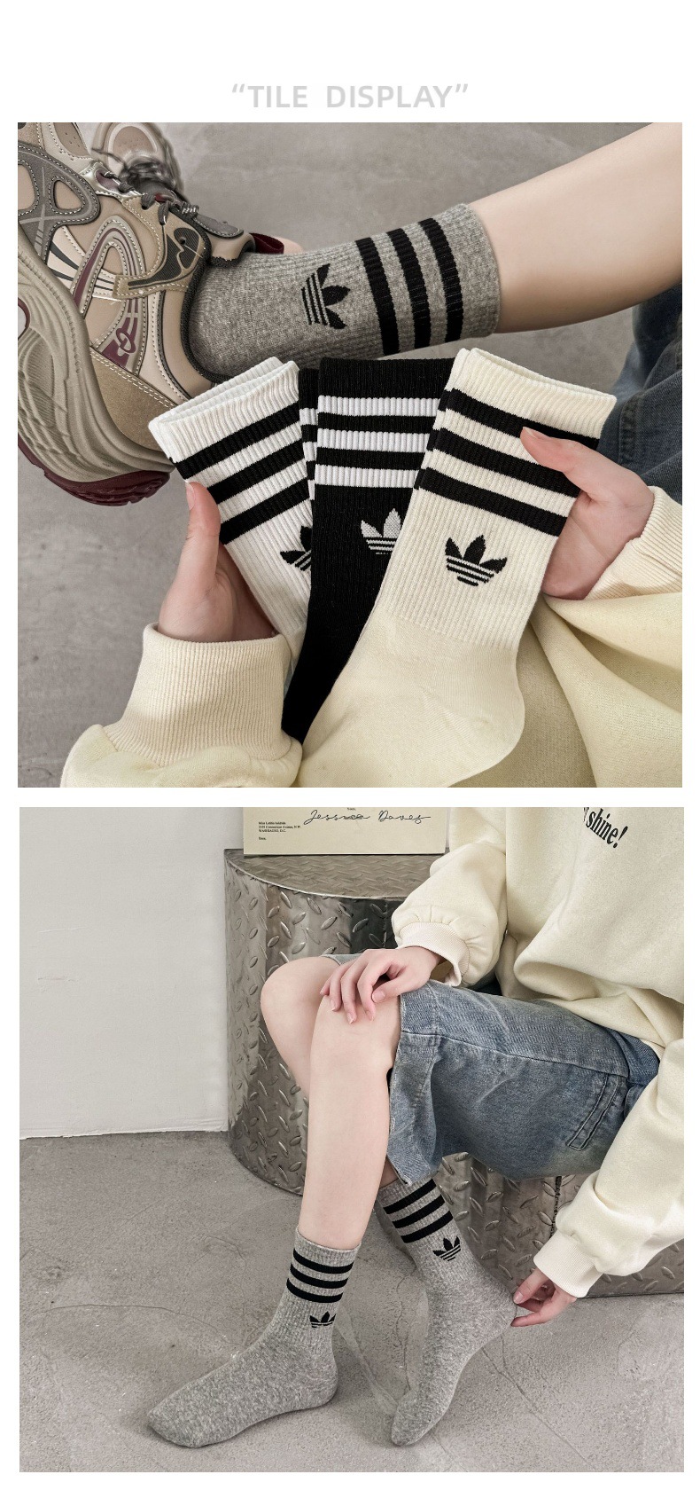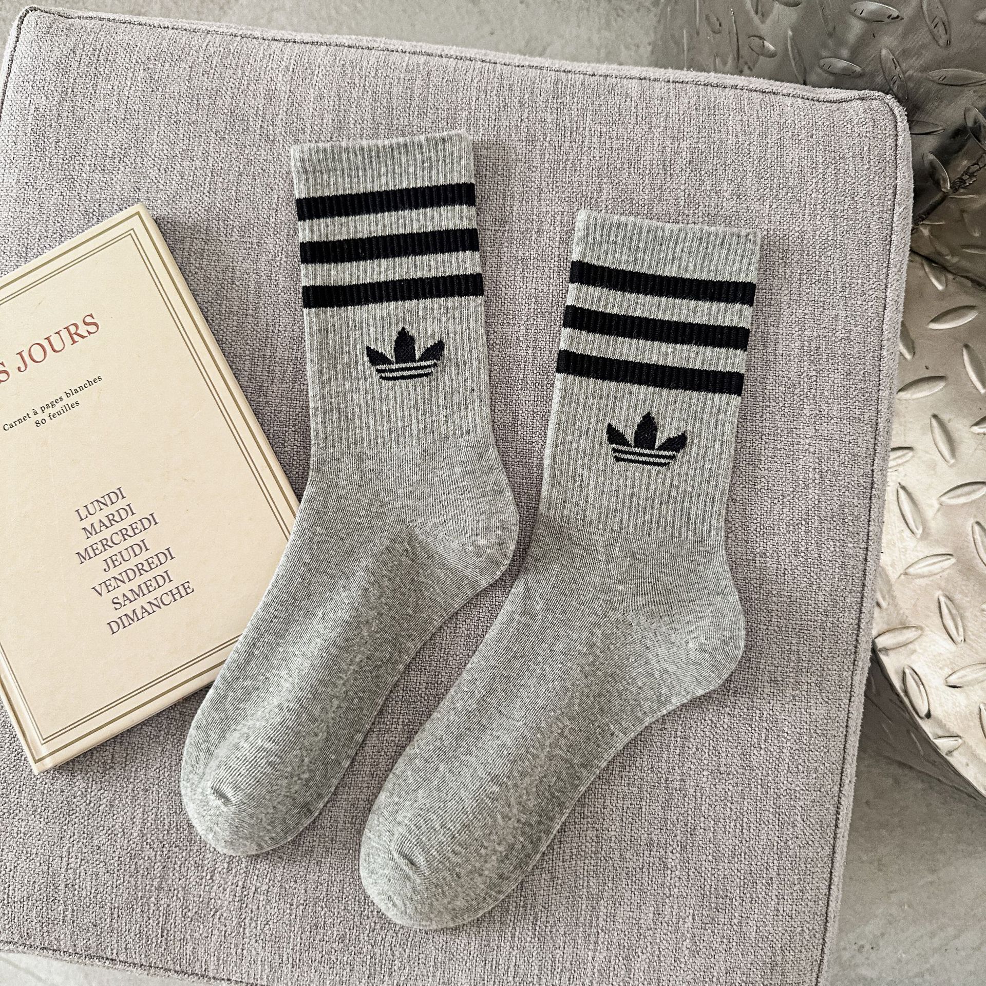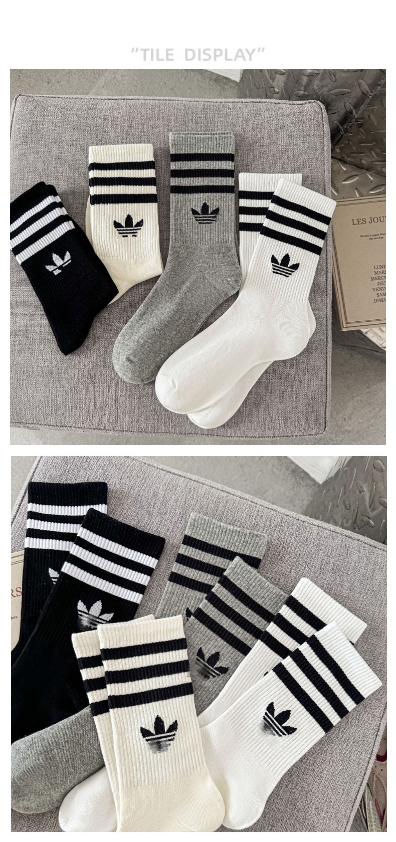 运动袜子男袜女袜秋冬款黑色三道杠中筒潮袜情侣款高筒袜白色棉袜