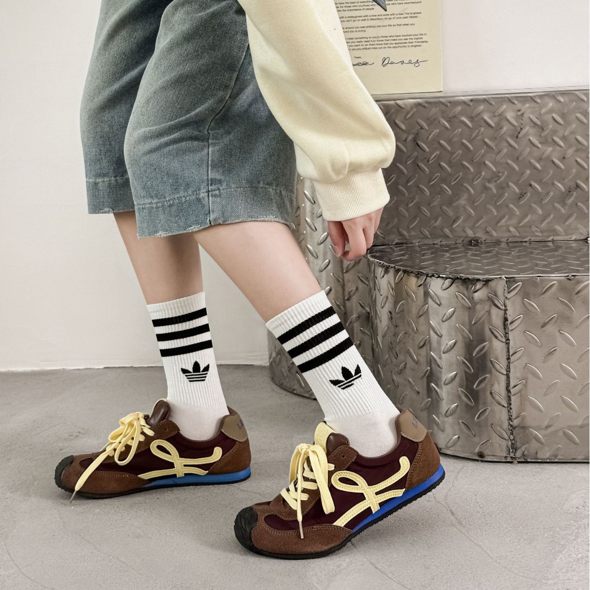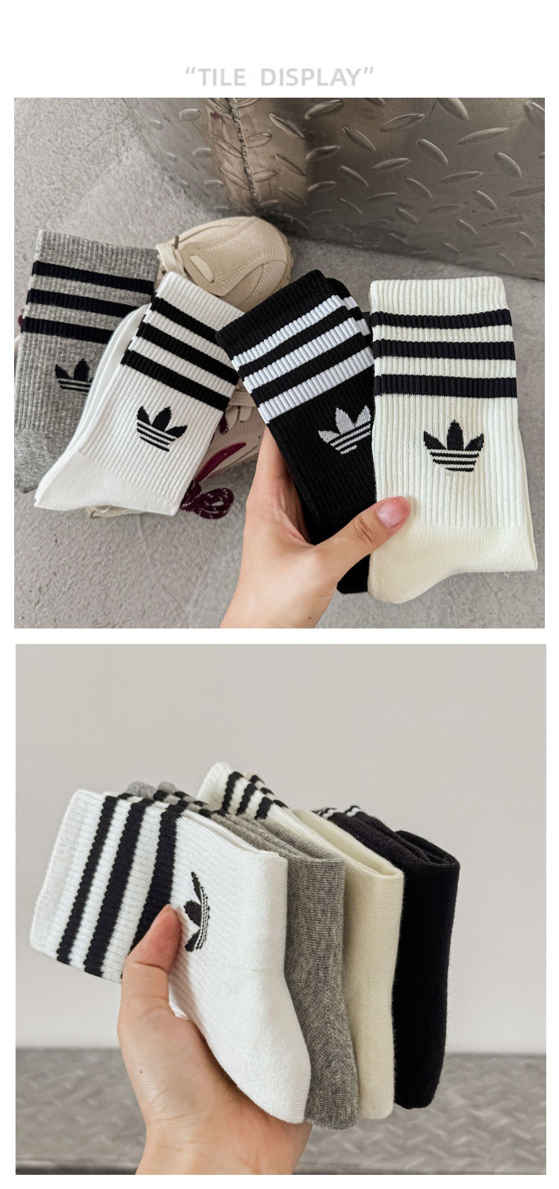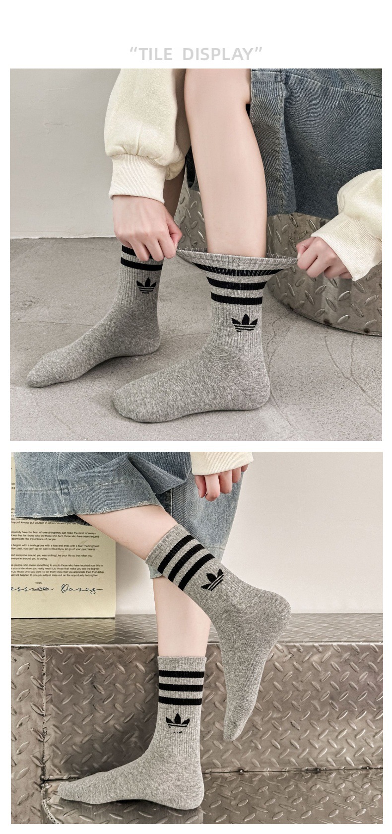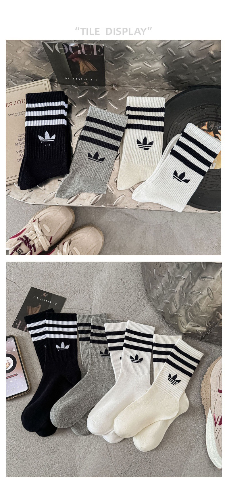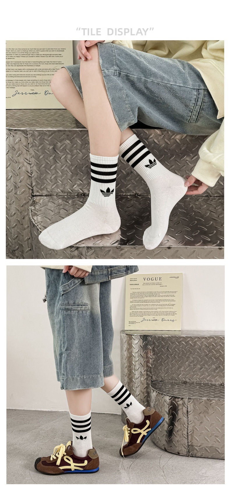 运动袜子男袜女袜秋冬款黑色三道杠中筒潮袜情侣款高筒袜白色棉袜
